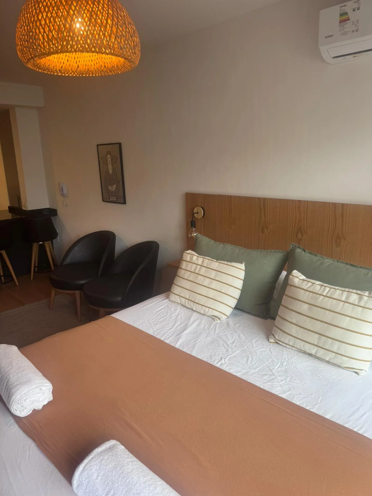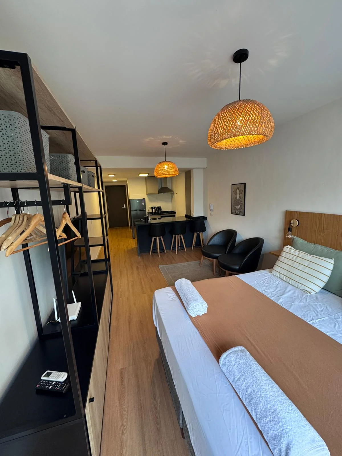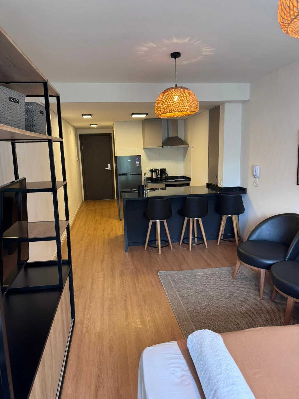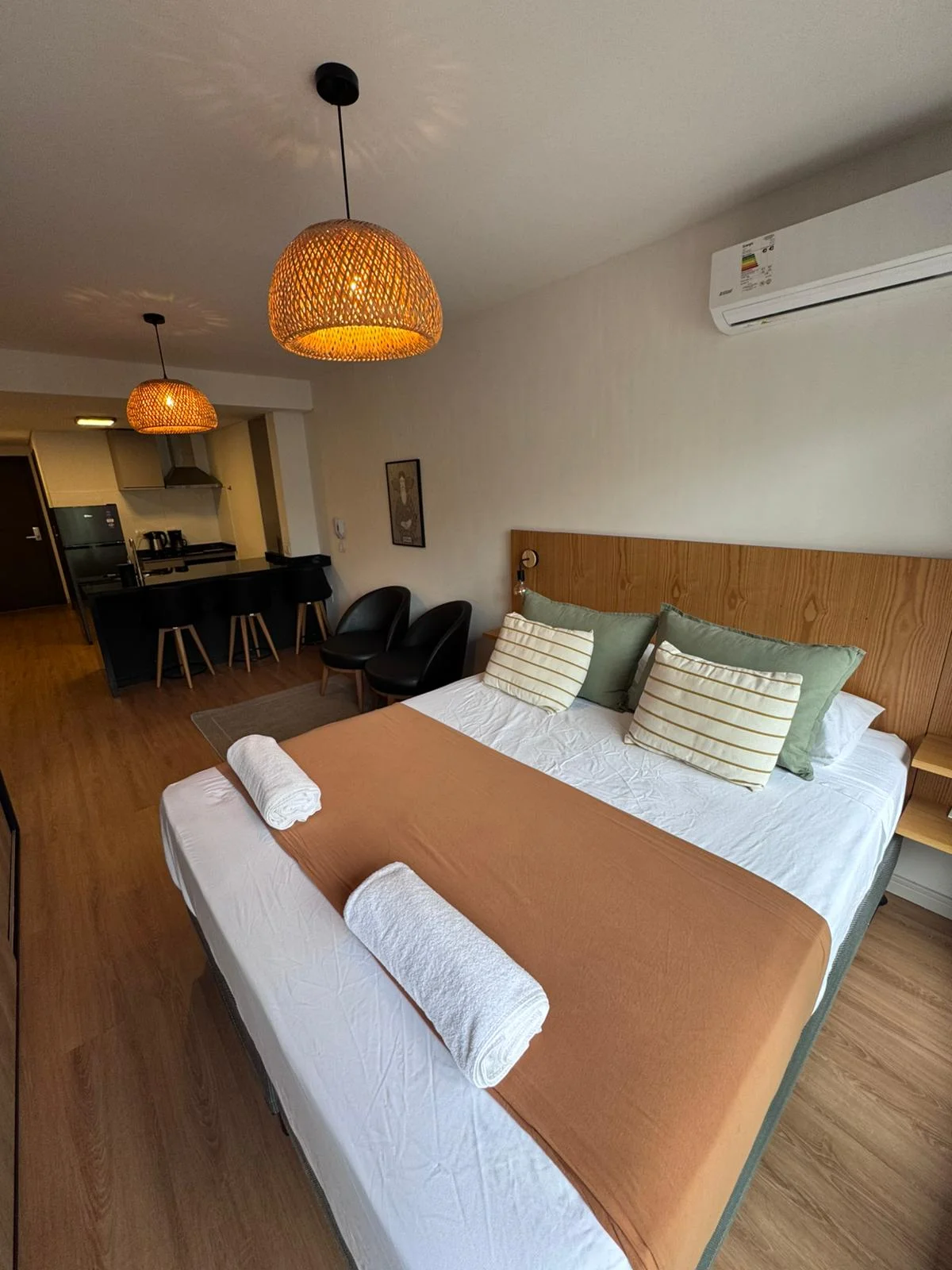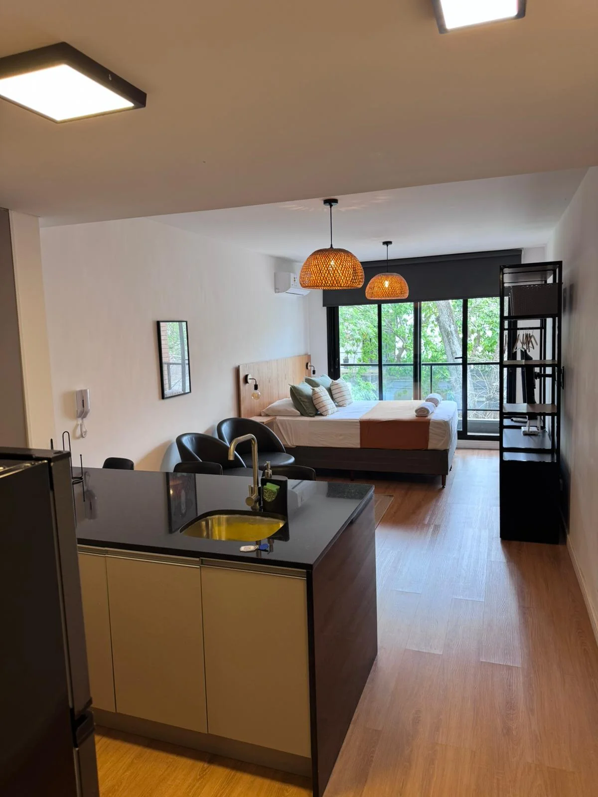 La unidad es un monoambiente orientado al este y cuenta con un ambiente integrado que incluye área de dormitorio, espacio de estar y cocina.