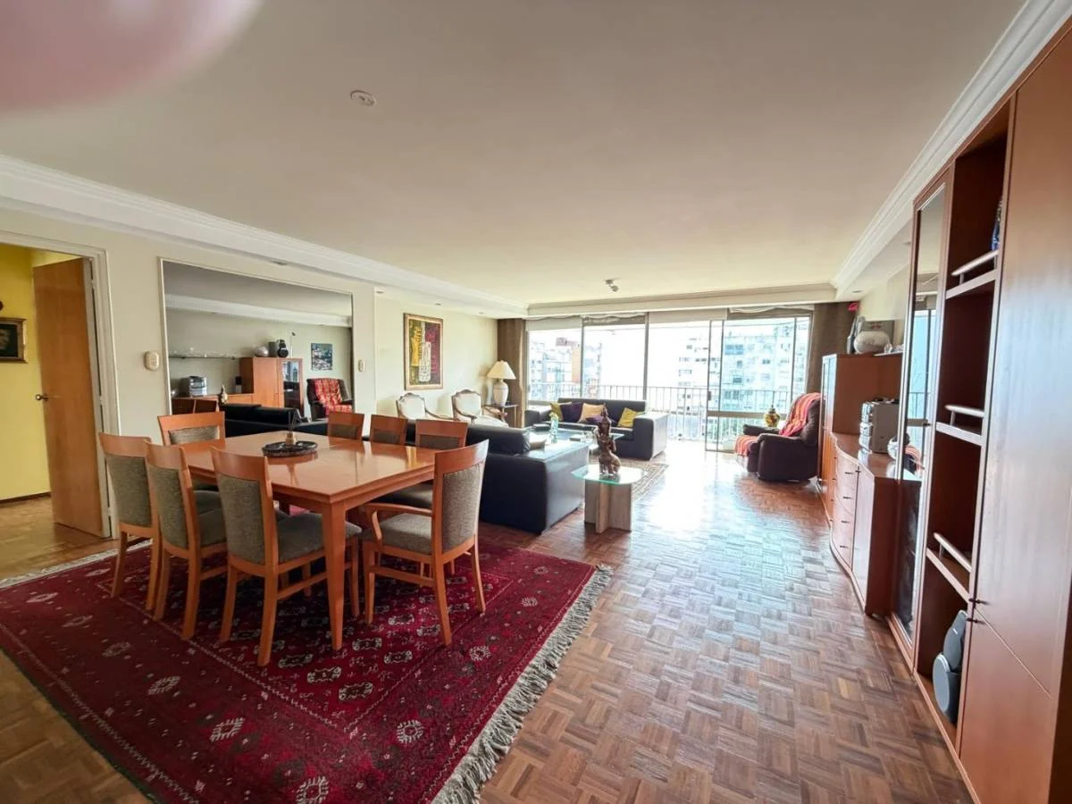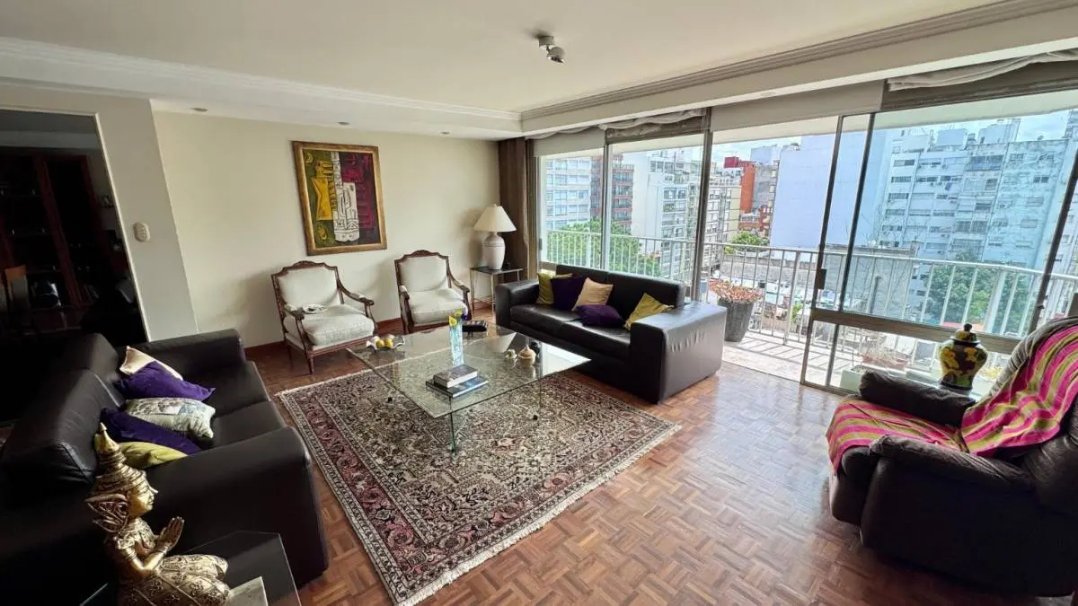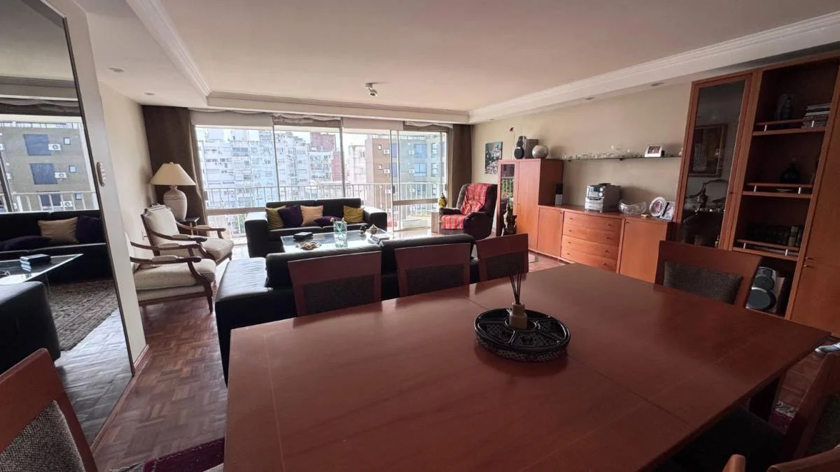 El living comedor es amplio y muy luminoso, con pisos de parquet en excelente estado y salida directa a la terraza. Desde el dormitorio principal también se accede a la terraza, generando un espacio íntimo y disfrutable con vista abierta.