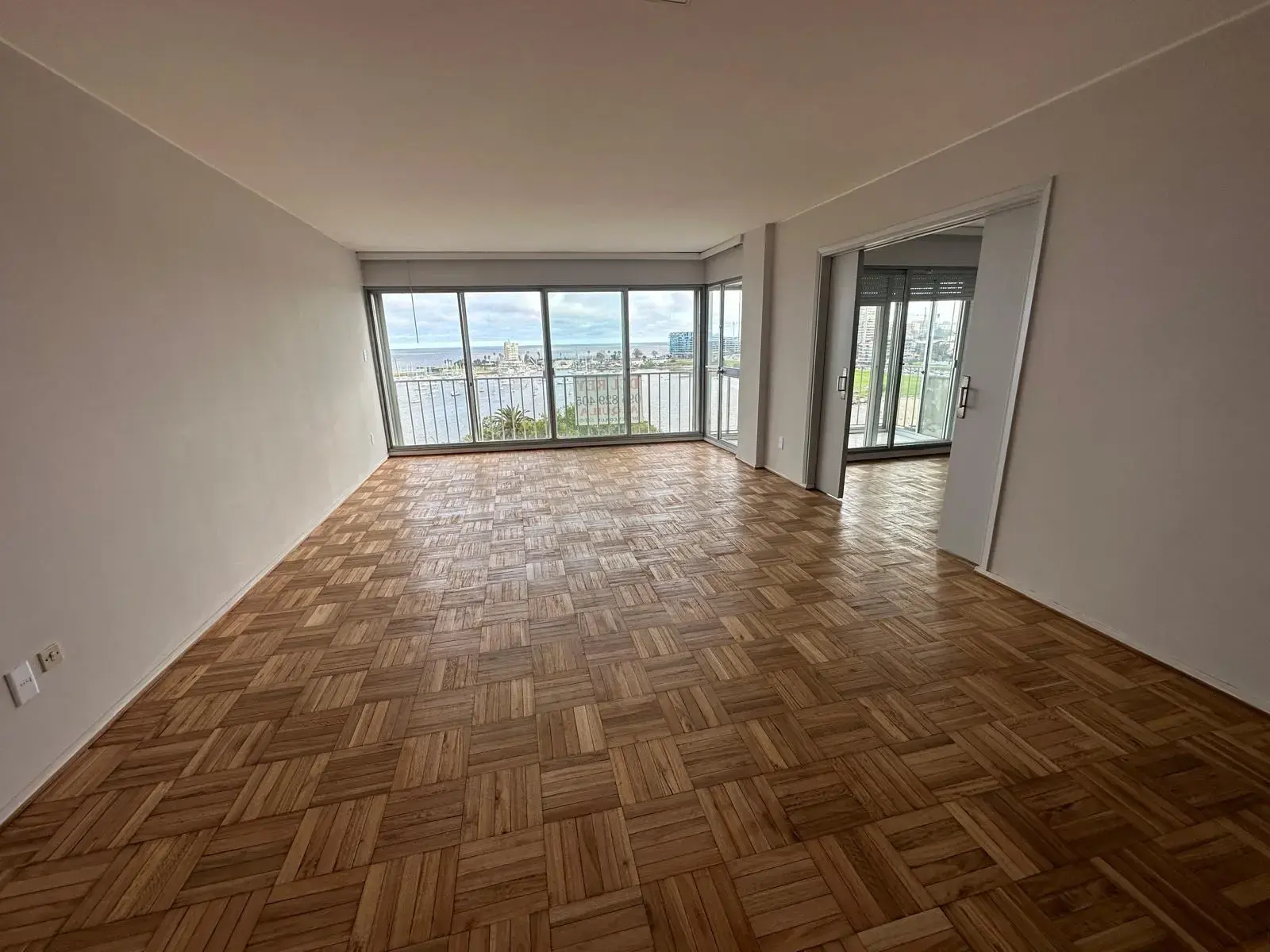 Frente a Rambla y puertito Buceo . Panorámico. Impecable. Living con amplia terraza: 3 dormitorios con placares, o 2 dorm. y estar o escritorio. Servicio completo: cocina definida con lavadero y entrada independiente; calefacción central losa radiante; vigilancia presencial 24 horas; garaje fijo en subsuelo.