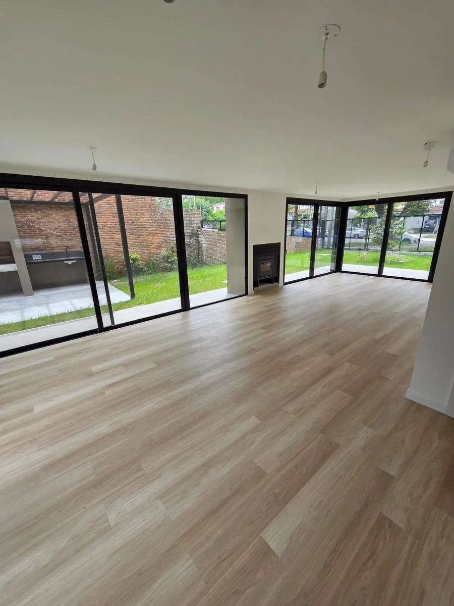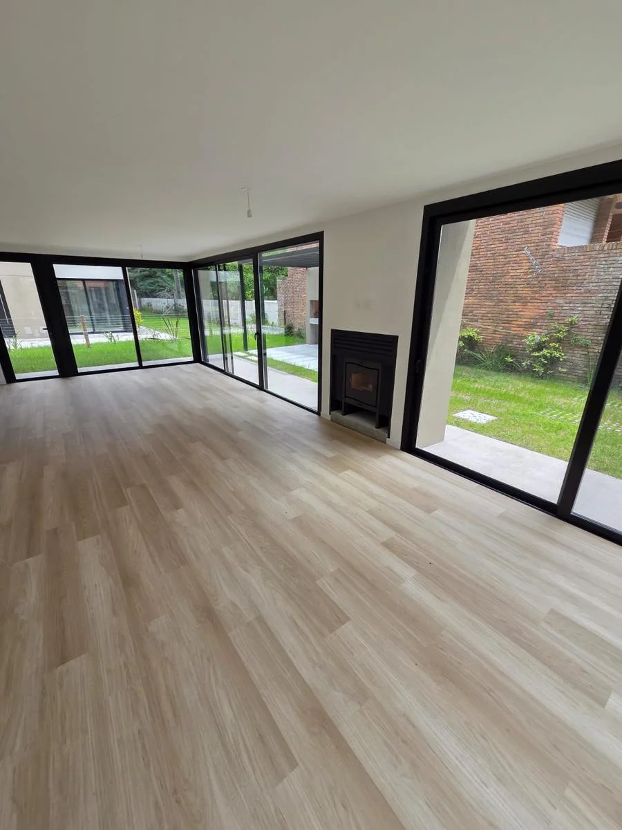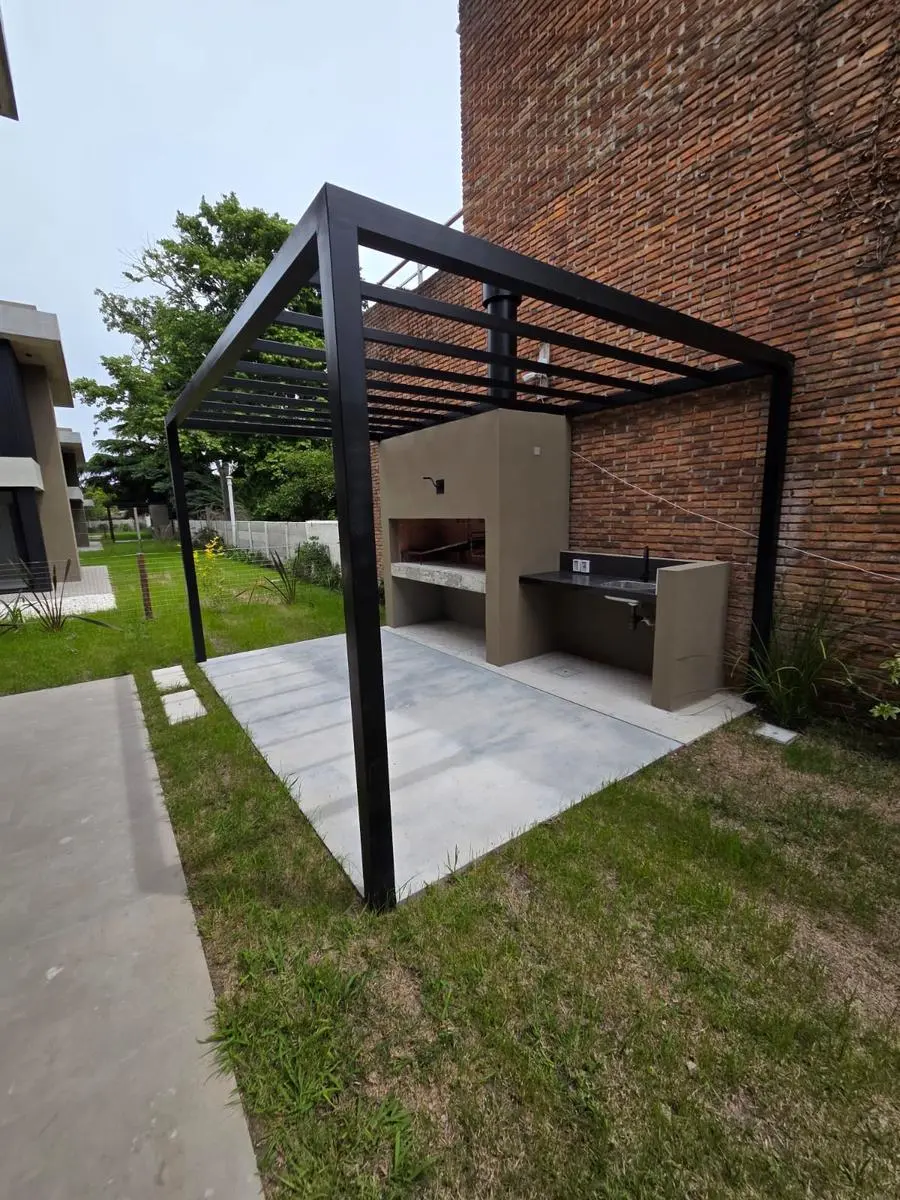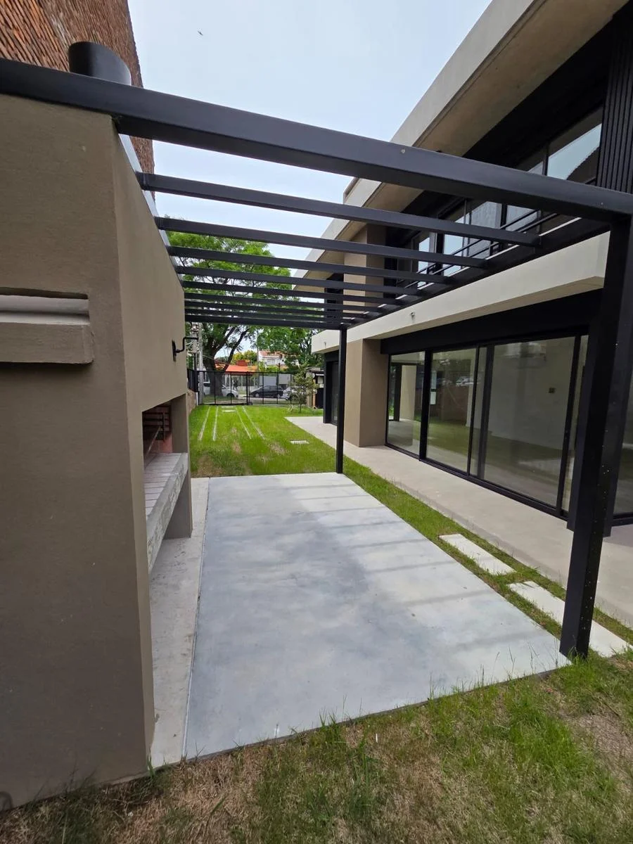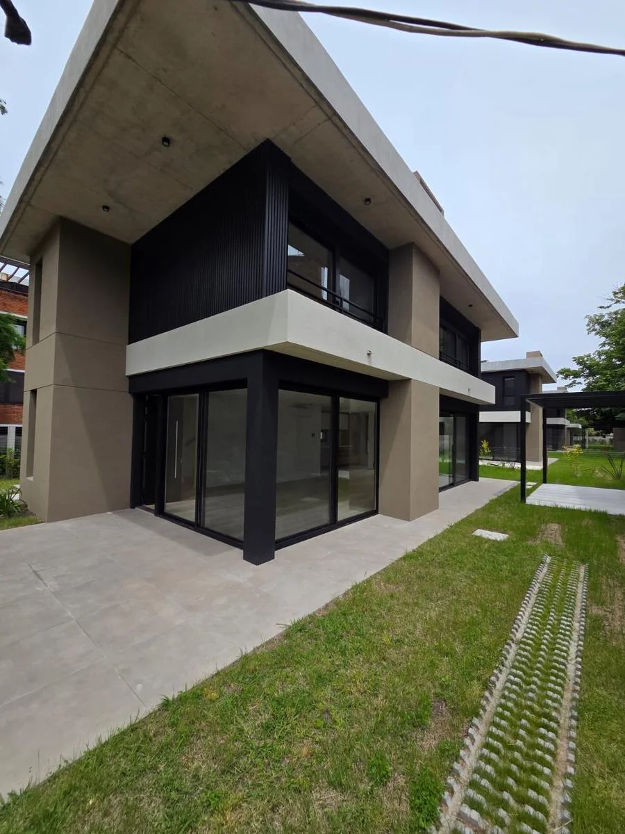 Casa a estrenar en propiedad horizontal.Son dos casas. Tiene cerco perimetral. La casa tiene planta baja con living y cocina integrada, baño de visitas, lugar para lavarropas, planta alta con 3 dormitorios, 2 baños, uno en suite. Tiene cochera para un auto, jardín y pergola con parrillero. Aire acondicionado en todos los ambientes, ventanas con doble vidrio y camara de aire.