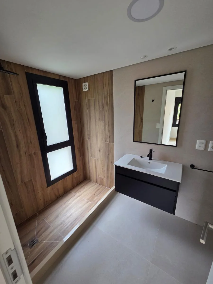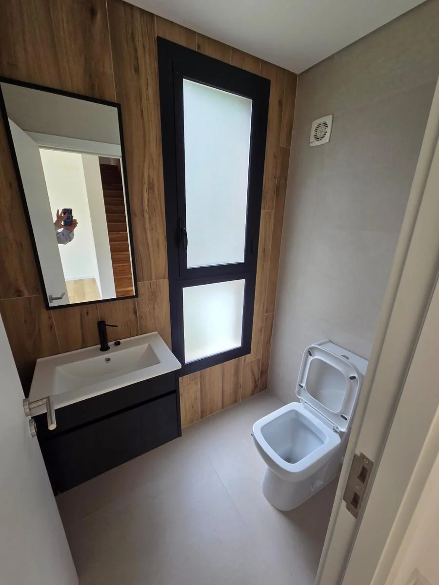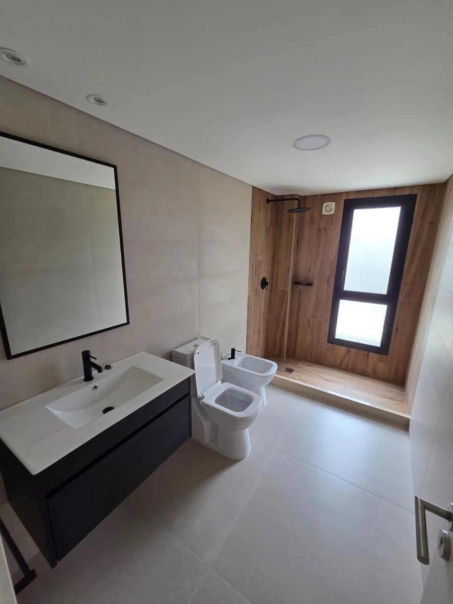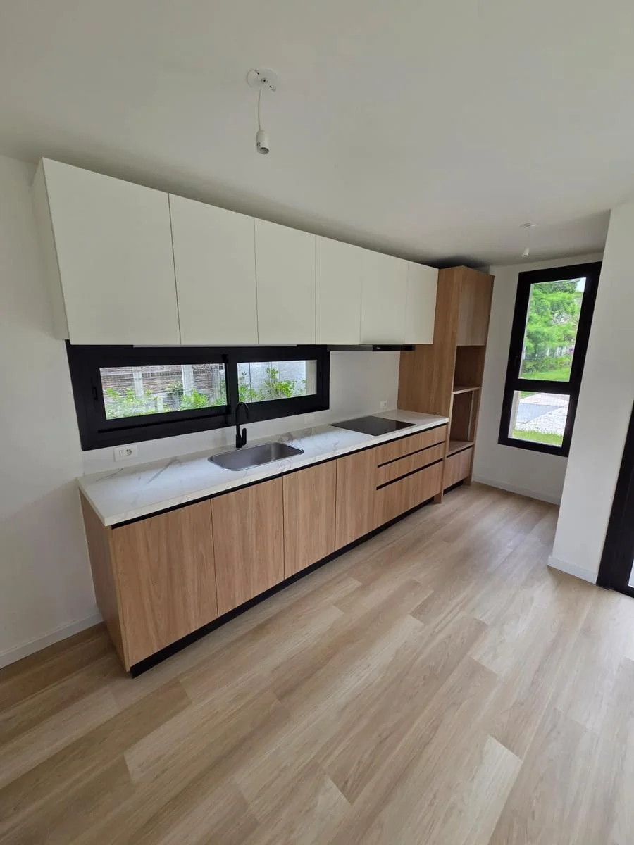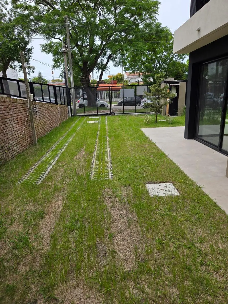 Casa a estrenar en propiedad horizontal.Son dos casas. Tiene cerco perimetral. La casa tiene planta baja con living y cocina integrada, baño de visitas, lugar para lavarropas, planta alta con 3 dormitorios, 2 baños, uno en suite. Tiene cochera para un auto, jardín y pergola con parrillero. Aire acondicionado en todos los ambientes, ventanas con doble vidrio y camara de aire.