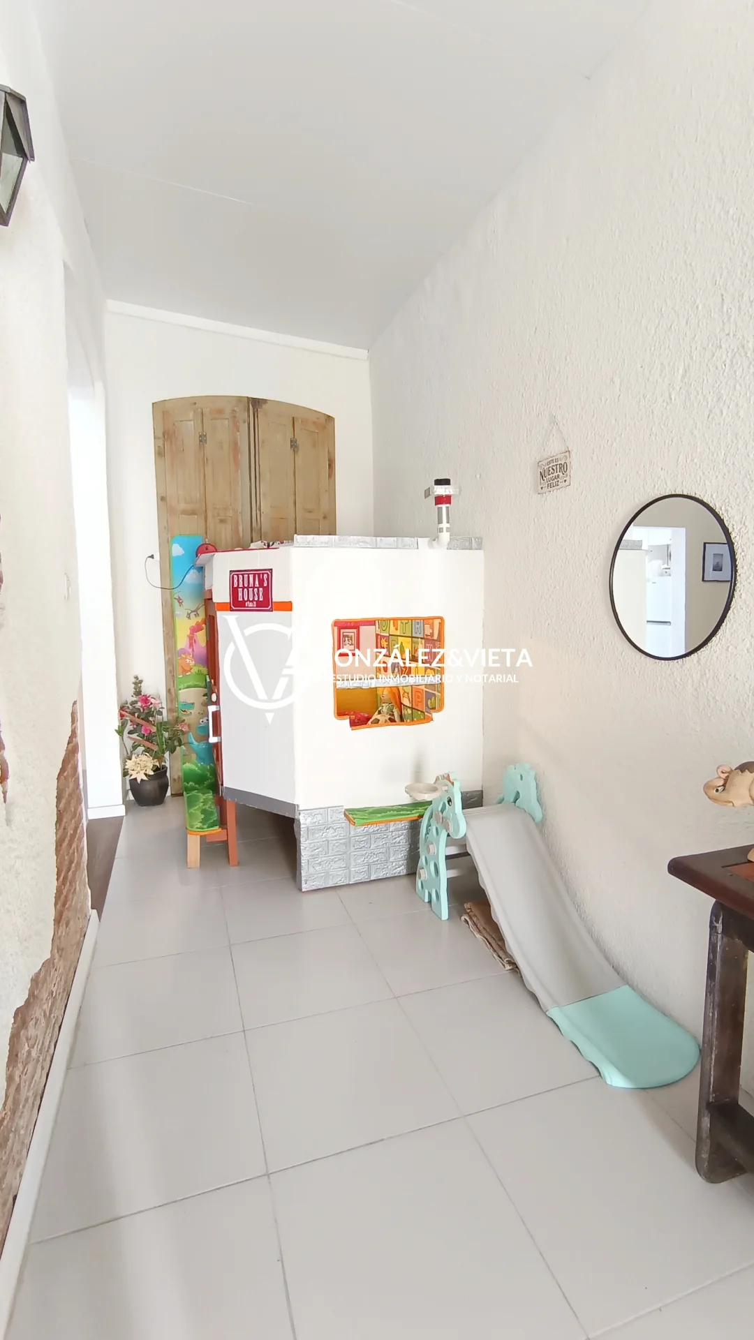 Al ingresar, nos recibe un amplio corredor de 6,8 m x 1,7 m, muy luminoso, que aporta carácter y estilo a la vivienda y conecta los distintos ambientes de la casa. En este espacio también encontramos un sector pensado para los más pequeños del hogar, ideal para colocar juegos de dispersión y entretenimiento, generando un rincón práctico y familiar dentro de la casa.