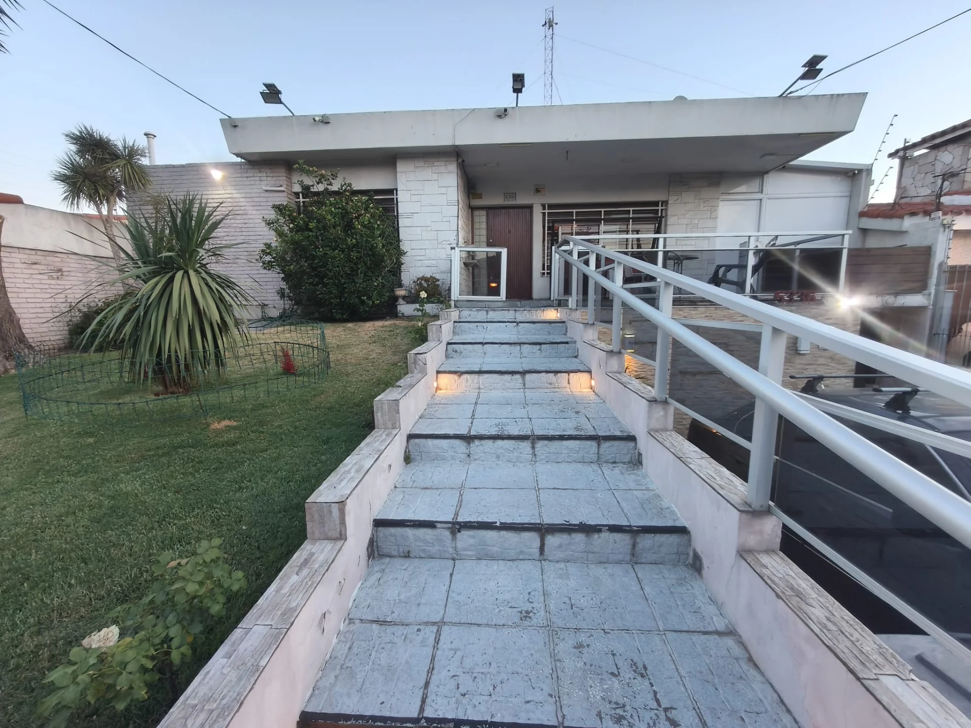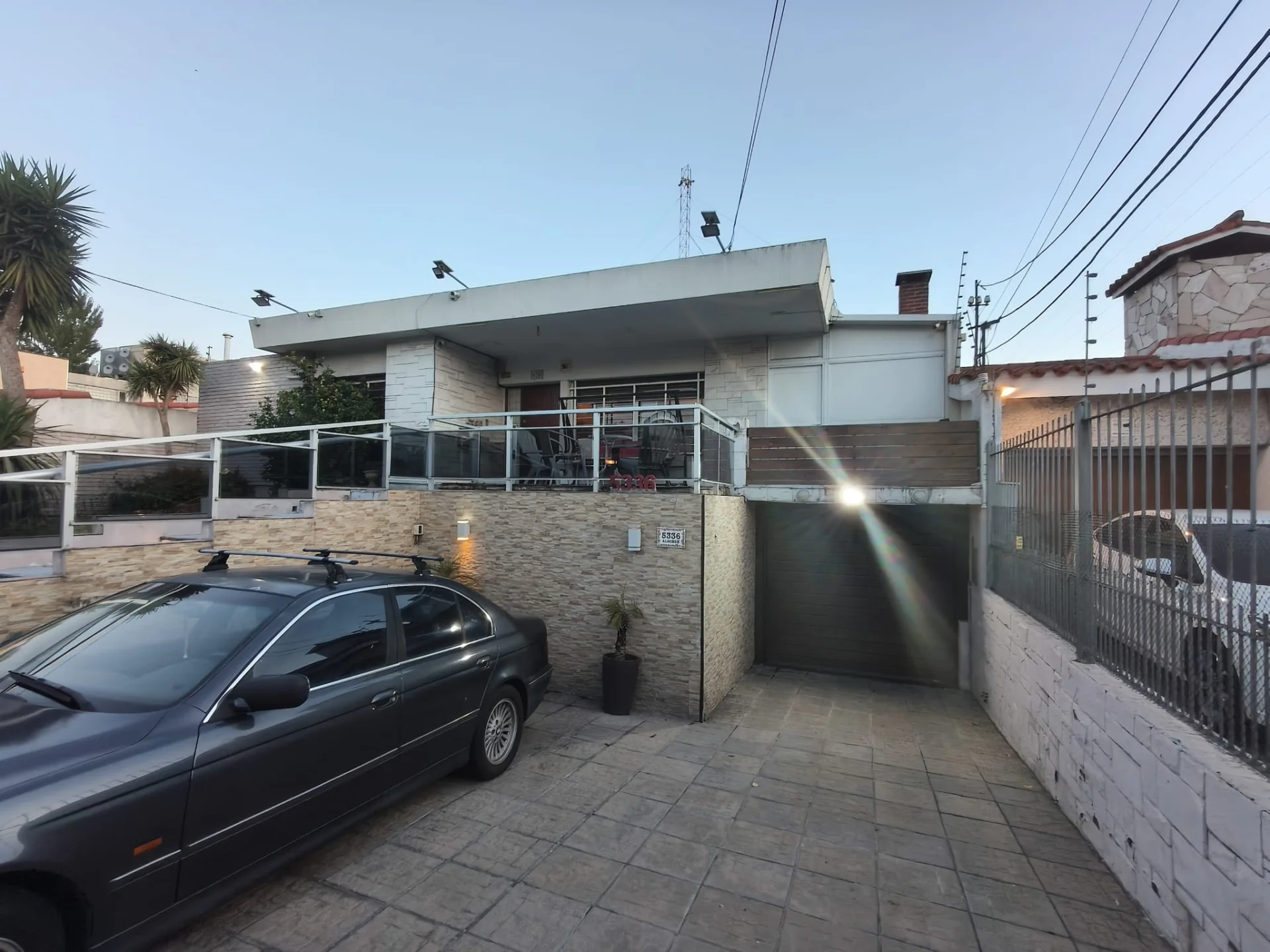 Casa de amplia superficie ubicada en un entorno residencial,en Malvín Sur, con una extensión total de 900 m² y un área privada de 400 m². El acceso principal destaca por una rampa y escalinata con barandas, acompañadas de iluminación exterior y áreas ajardinadas que rodean la vivienda. La fachada presenta detalles en piedra y cuenta con portón automático para acceso vehicular, facilitando la entrada a estacionamiento cubierto.