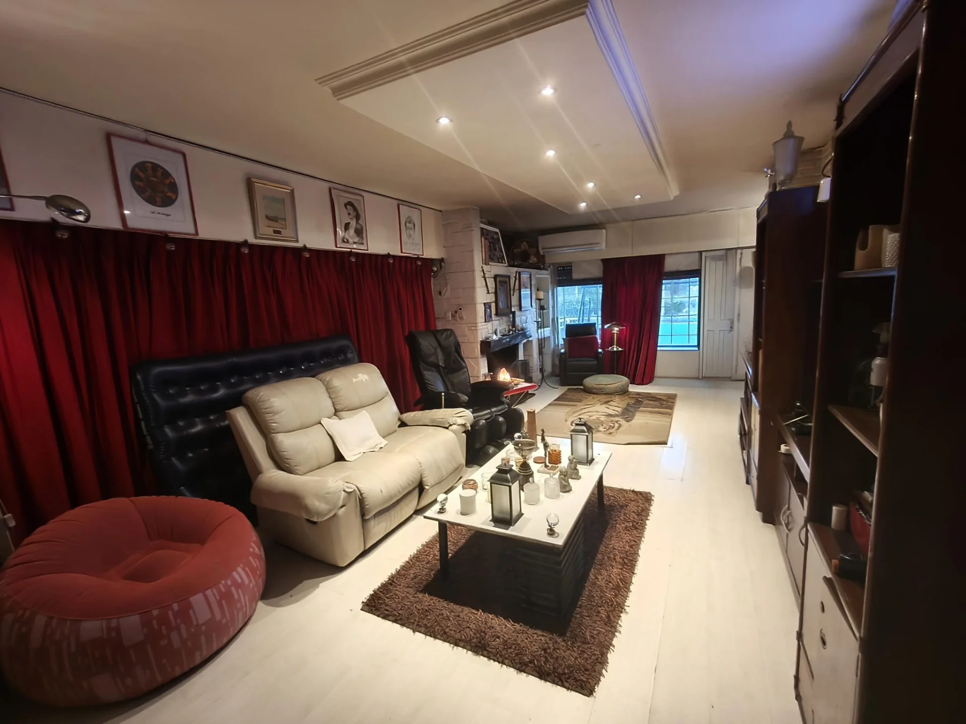 El interior dispone de cinco dormitorios distribuidos en ambientes espaciosos, acompañados de tres baños completos, algunos con equipamiento de jacuzzi y detalles en cerámica. El living, de generosas dimensiones, incluye una chimenea y ventanales que favorecen la integración con el exterior, así como un comedor independiente de gran capacidad. La casa cuenta con cocina cerrada, equipada con amplio espacio de almacenamiento y superficies de trabajo, además de una zona de lavandería acondicionada con ventilación natural.