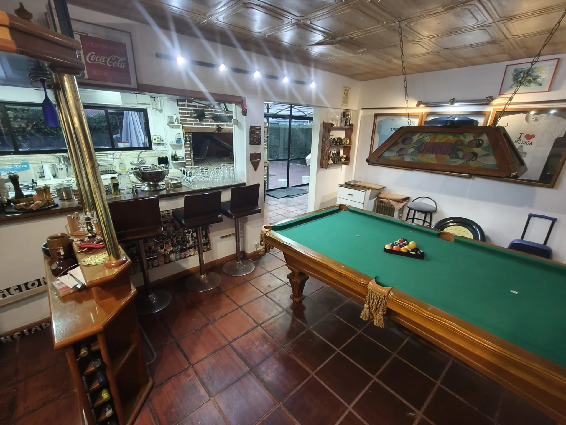 Entre las áreas de esparcimiento y complementarias, la casa ofrece una terraza techada, piscina al aire libre con áreas verdes y sector de quincho, además de una sala de juegos equipada con mesa de billar y barra. Se incorpora una cava de vinos con estanterías especializadas, reforzando las prestaciones orientadas al entretenimiento y relajación. Incluye también una bodega para almacenaje adicional.