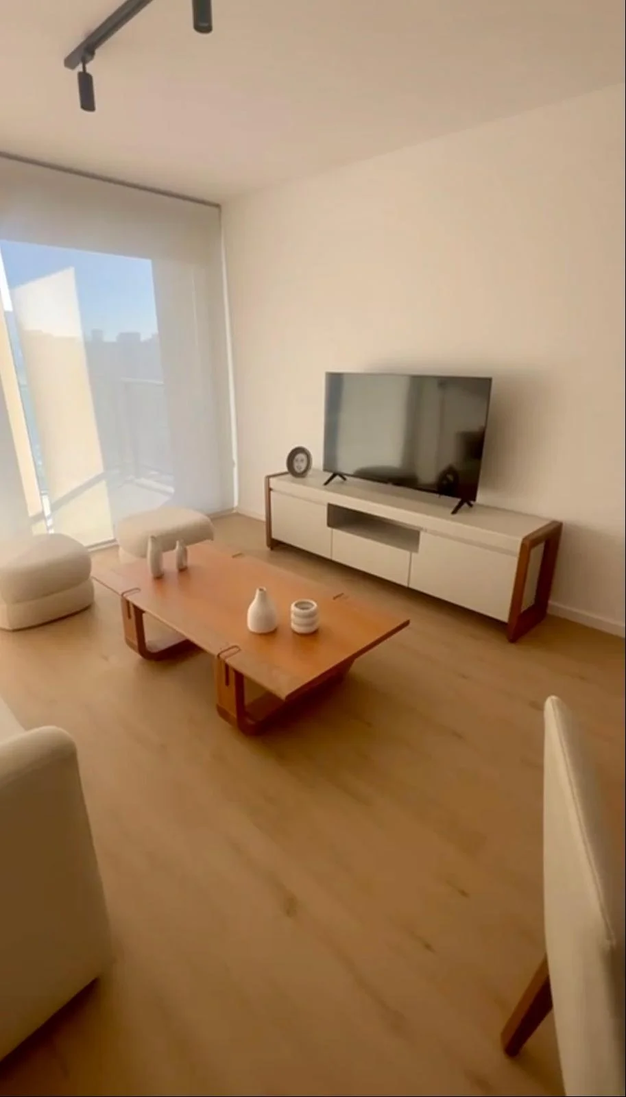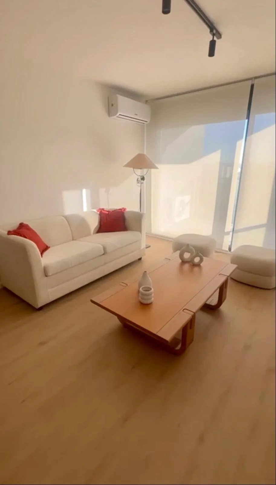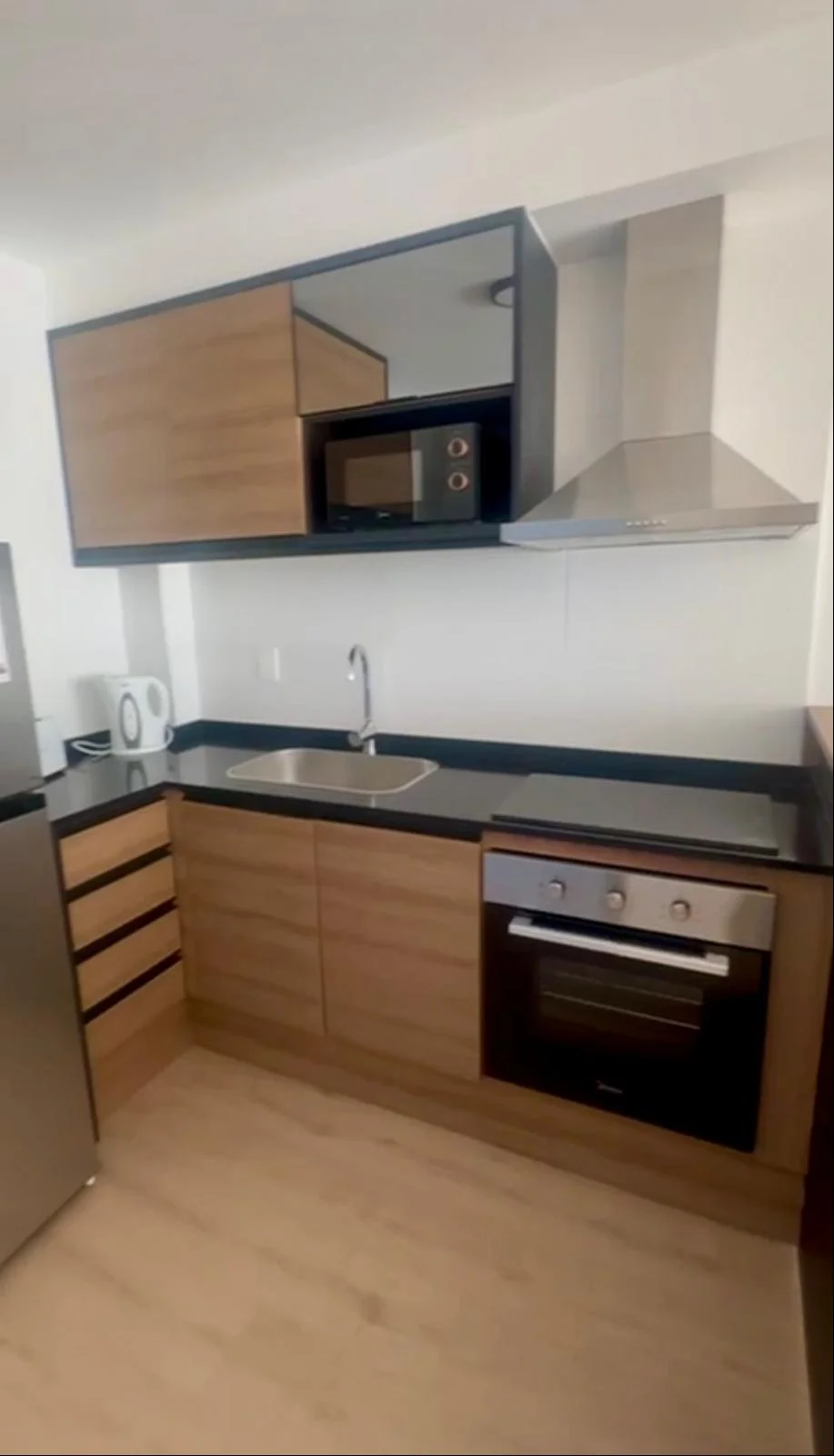 Living comedor con salida a amplio balcón, de cocina integrada totalmente equipada y un dormitorio muy luminoso con placar.