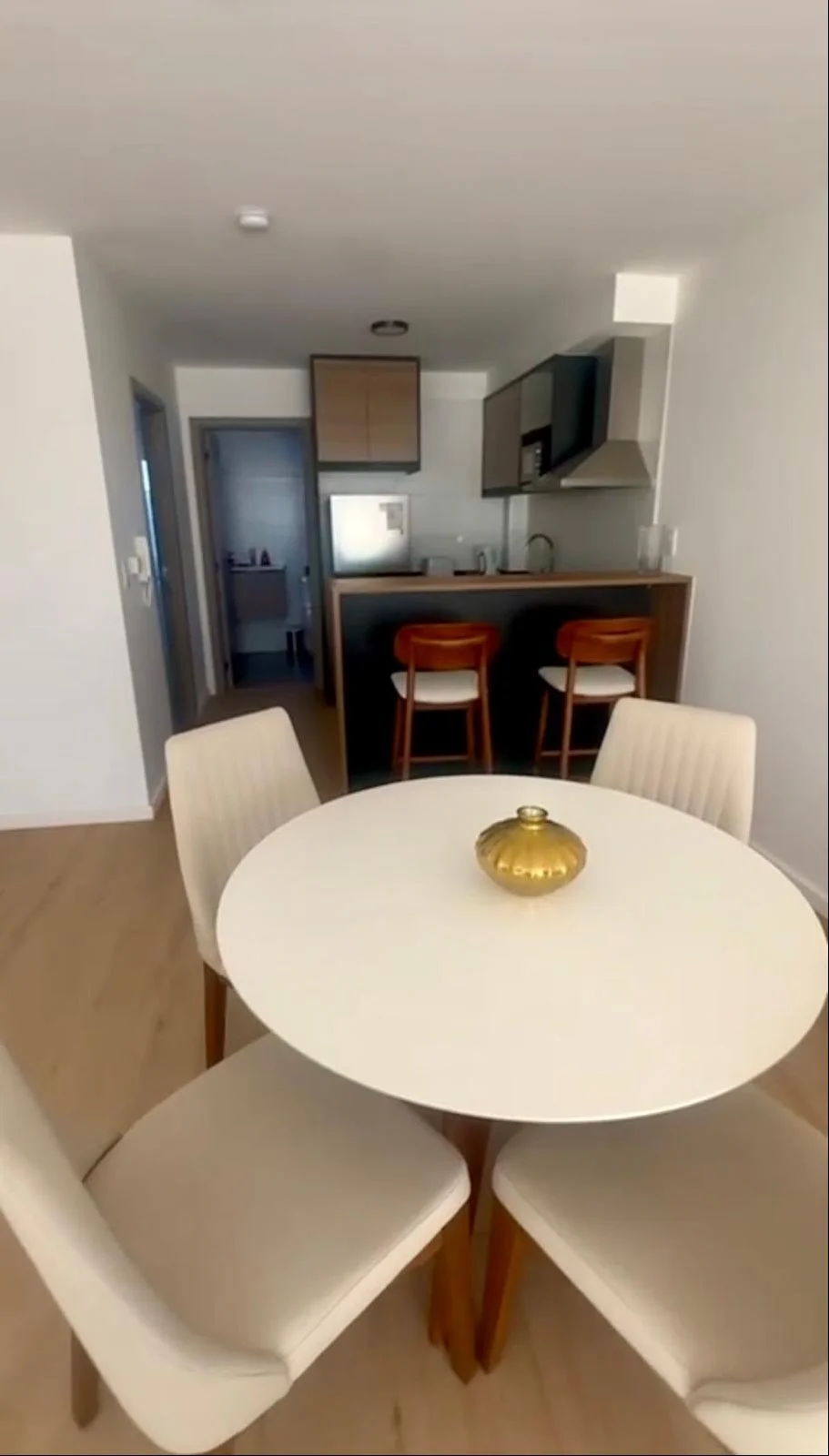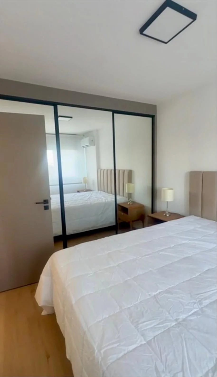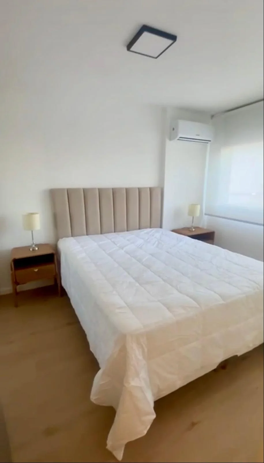 Living comedor con salida a amplio balcón, de cocina integrada totalmente equipada y un dormitorio muy luminoso con placar.