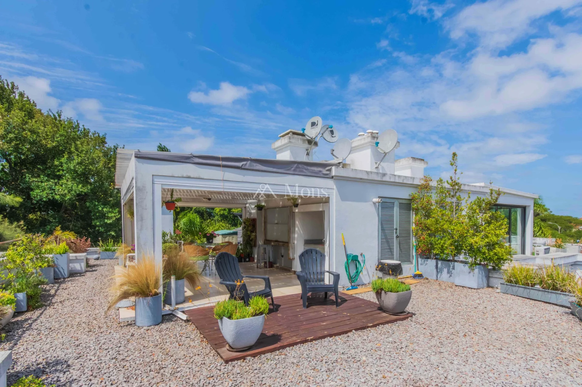 Saliendo del apartamento, se accede por escalera con puerta con llave a la terraza de uso exclusivo. Terraza de más de 100 m2 con gran parrillero y pérgola. Ideal para celebrar, disfrutar con amigos, usarlo como solárium, o jardinera.