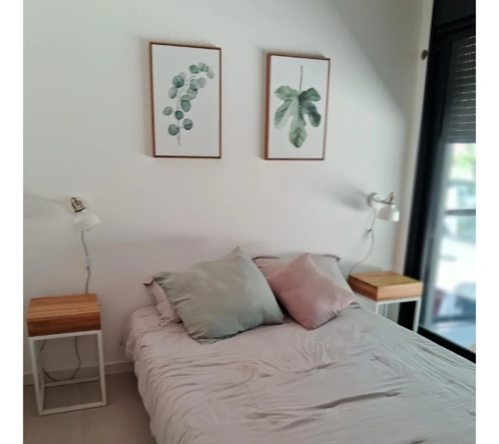 - De 1 dormitorio con placard, cama y mesas de luz.