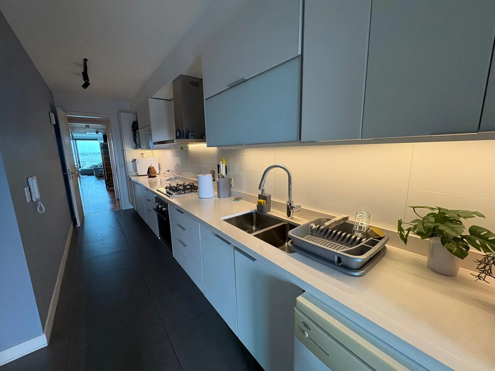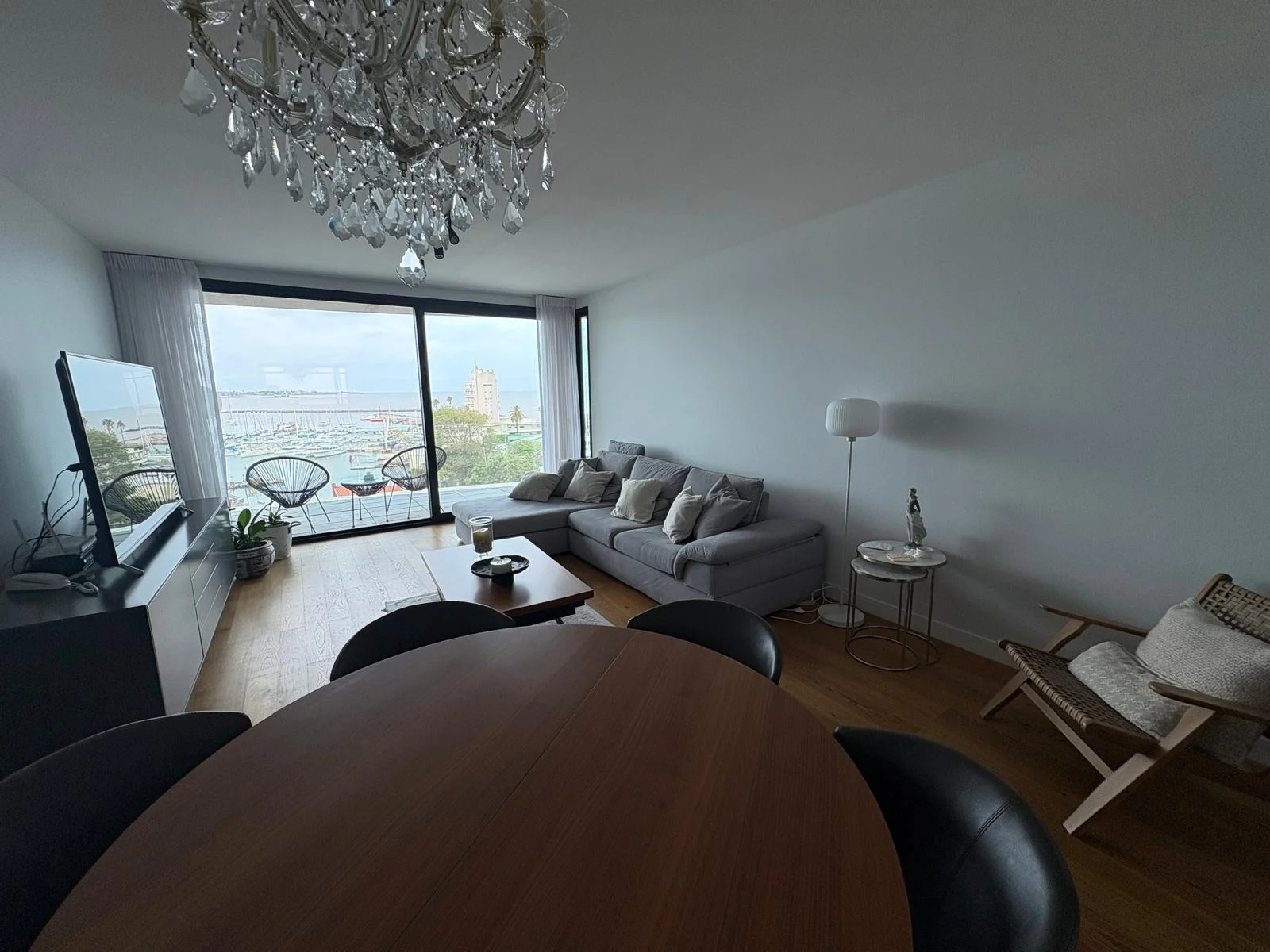 APARTAMENTO DE 200m2 - DOBLE ORIENTACIÓN - la mejor tipología del edificio,Living comedor con finas terminaciones y baño social.Salida a amplia terraza con vistas al Puerto.2 dormitorios con BAÑO EN SUITE, vestidor y salida a terraza.Cocina definida con acceso de servicio - equipada con anafe, campana y horno. Incluye lavadero.Comedor diario con salida a terraza CON PARRILLERO PRIVADO.Dormitorio de servicio con baño (ideal escritorio o 3er dormitorio).Caldereta a gas para agua y calefacción.Aire acondicionado en todos los ambientes.