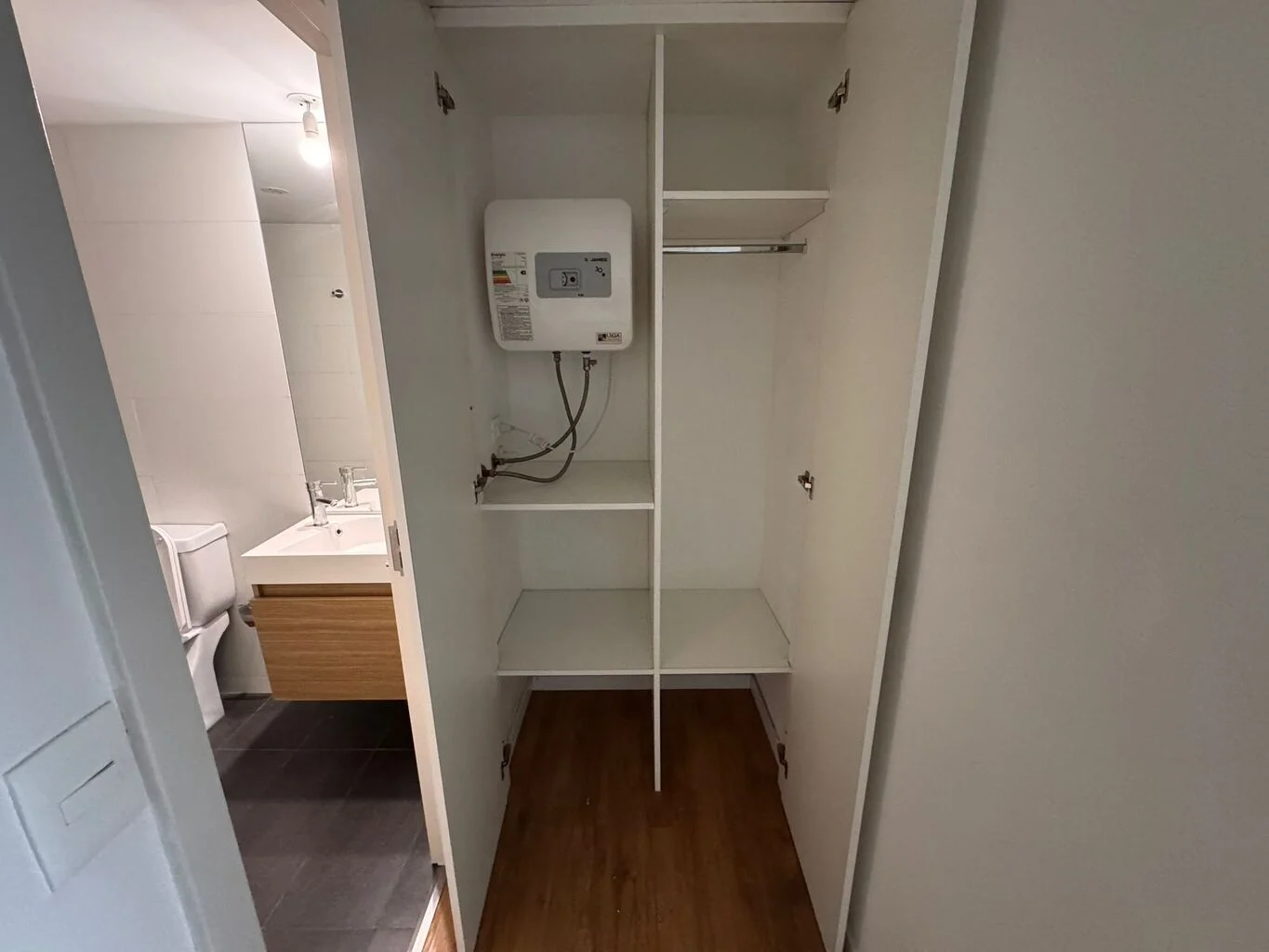 Sala de estar diario integrada a la cocina y al dormitorio con cama ya instalada en el lugar. Balcón con vista verde despejada. Aire acondicionado y calefon.