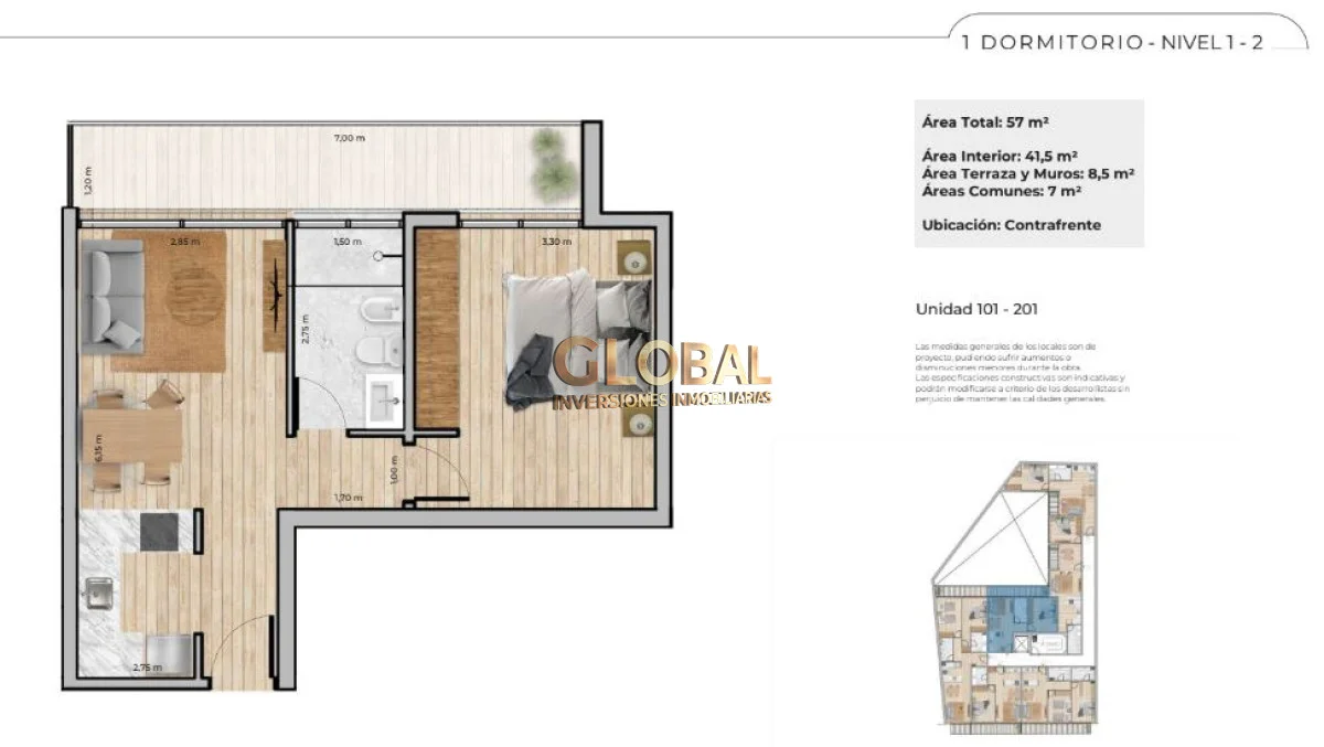 1 dormitorio, ideal para quienes priorizan luz natural, vistas abiertas y mayor privacidad. Perfecto para: profesionales, estudiantes avanzados, renta tradicional, inversión patrimonial