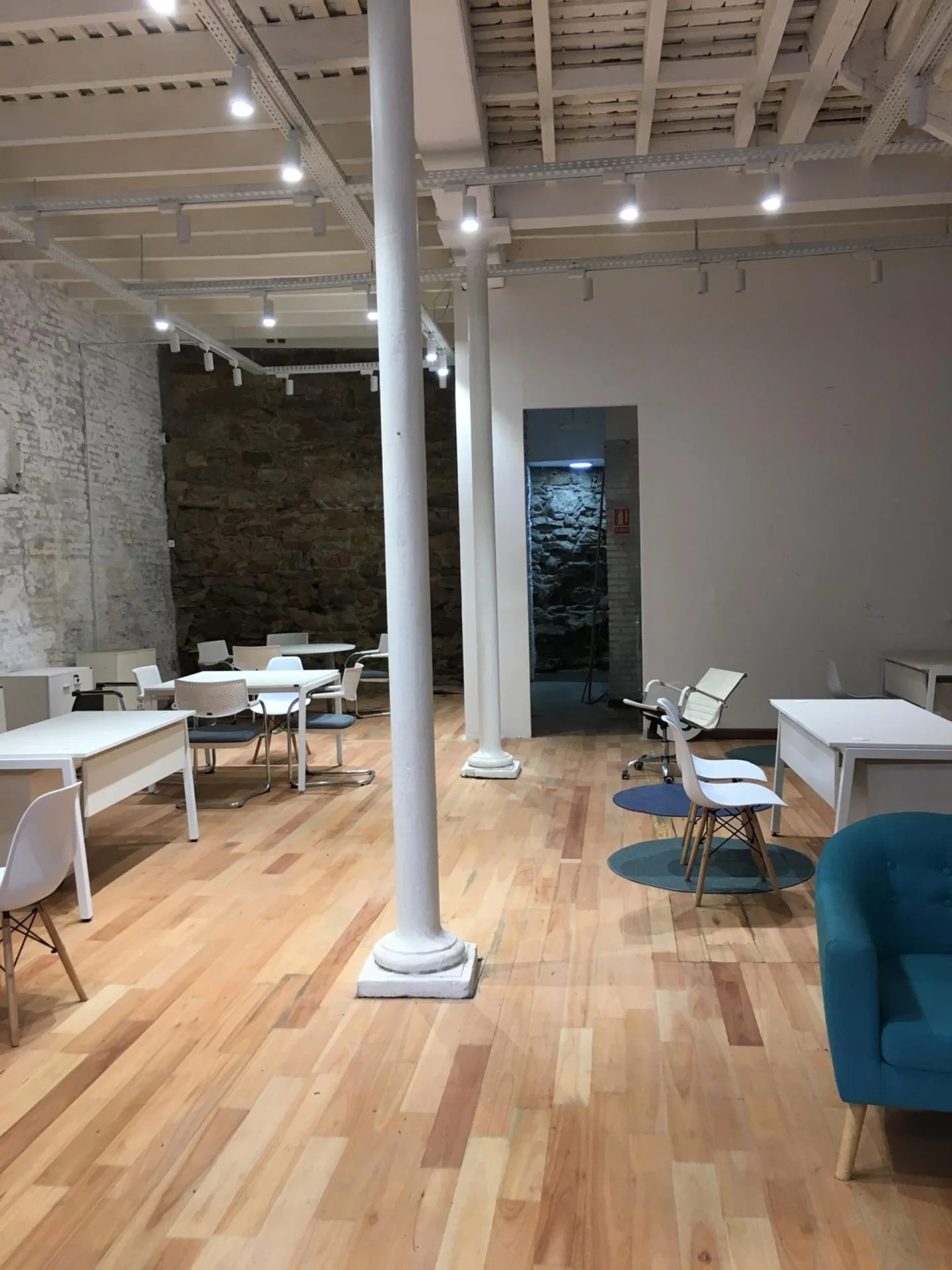 Se trata de un local al frente, amplio y con gran iluminación natural, que combina historia y estilo: fue construido con las piedras de la antigua muralla de Ciudad Vieja y cuenta con detalles en ladrillo a la vista que le dan un carácter único.