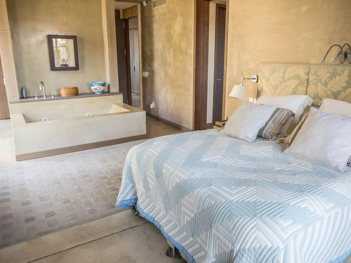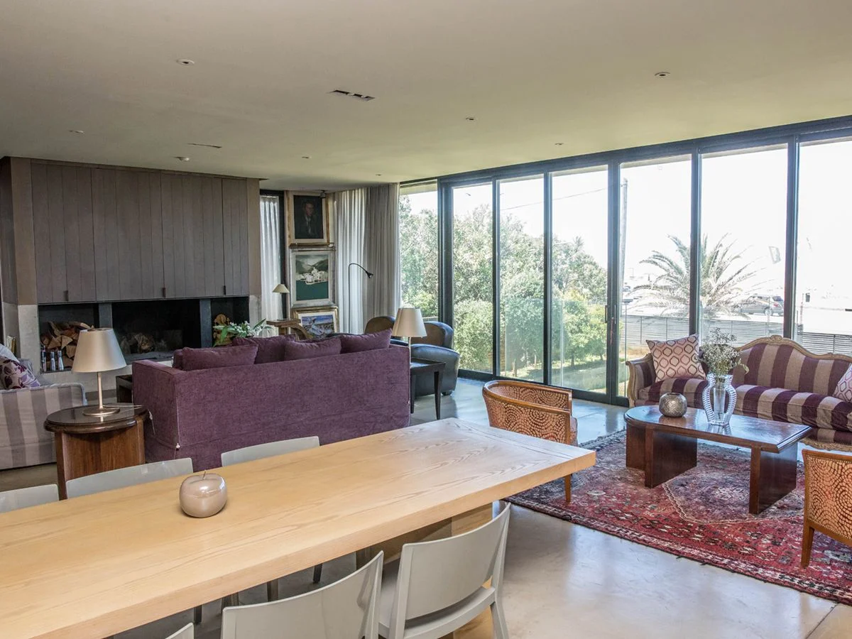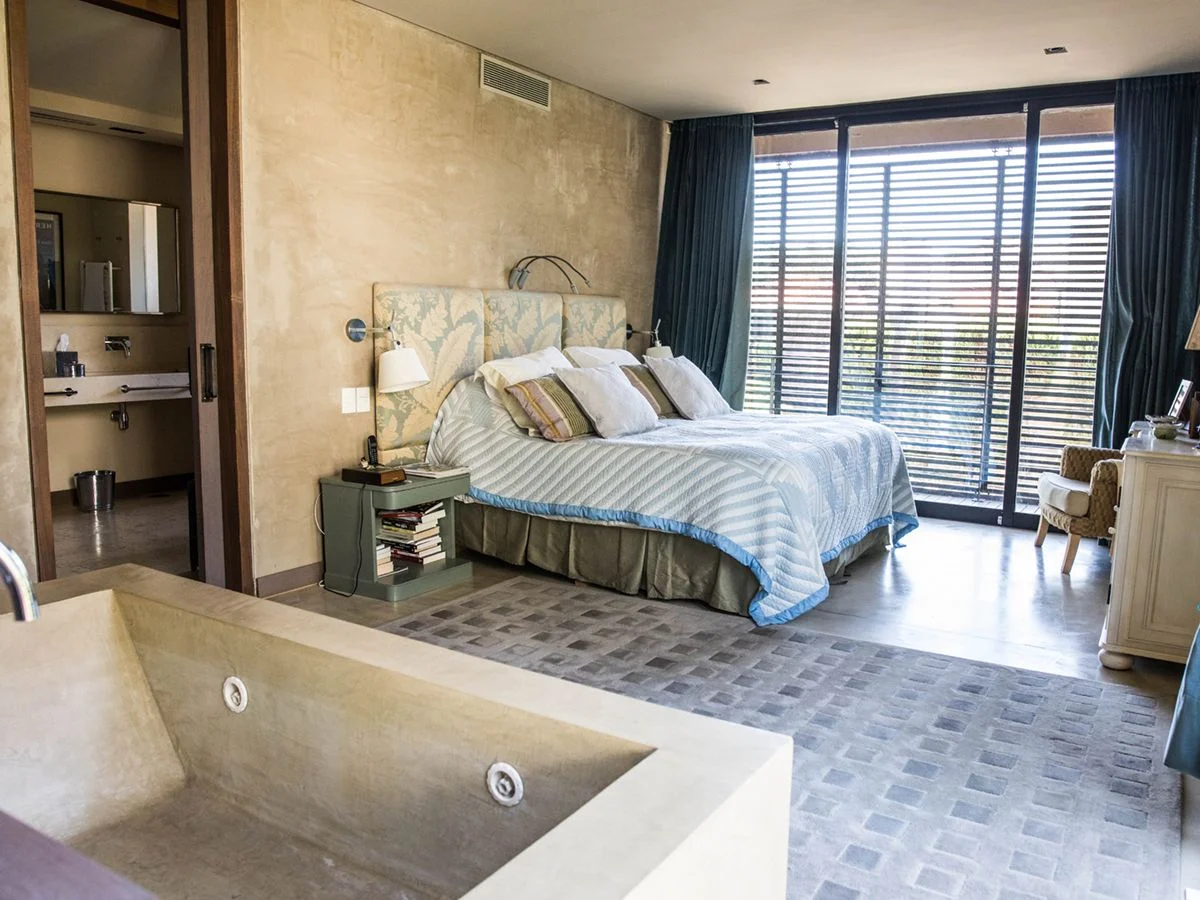 Amplio living con estufa a leña. Estar integrado. Toilette. Cocina con comedor diario semi integrada al living, equipada con lavavajillas, microondas, anafe, horno y campana. Despensa. 2 dormitorios en suite con salida a terraza, principal con vestidor y bañera con hidromasaje integrada al dormitorio. Múltiples placares. Pisos de cemento lustrado. Garaje con espacio para 3 autos.