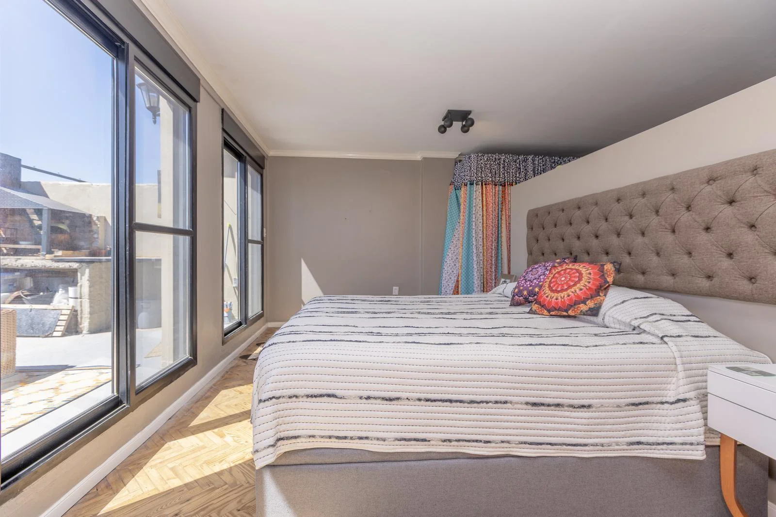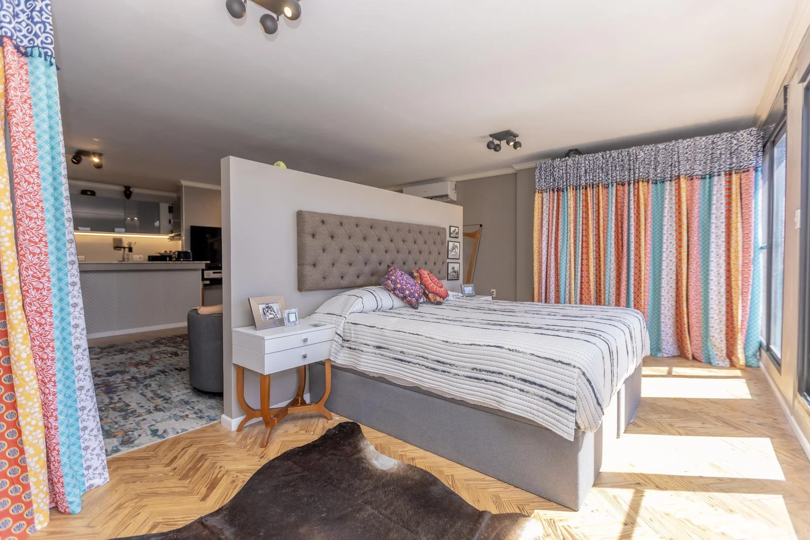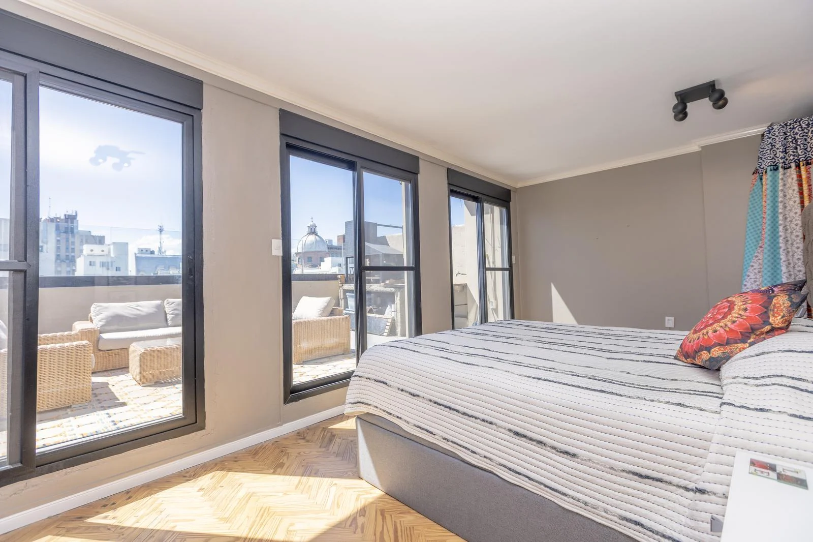 Un sector de dormitorio, con salida directa a la terraza, reforzando la conexión interior–exterior.