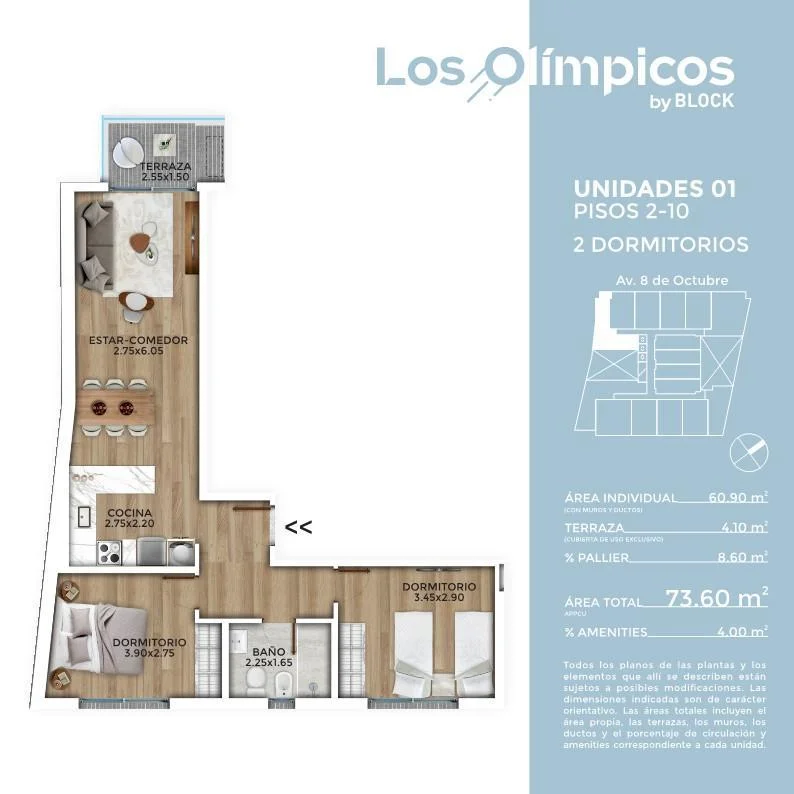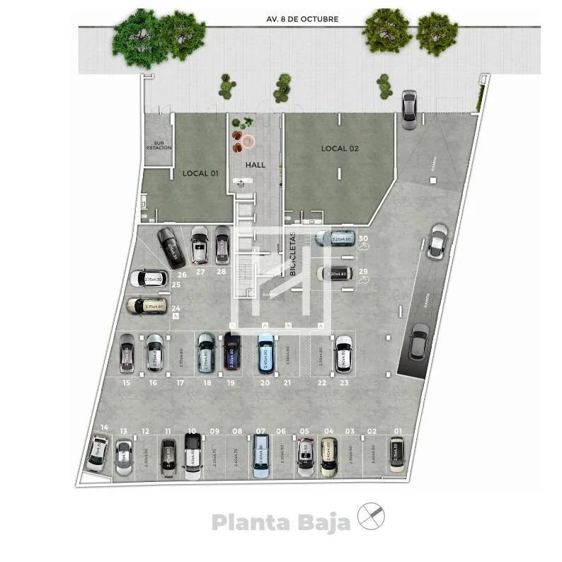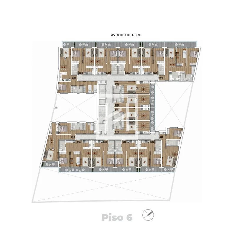 Apartamento ubicado al frente sobre Av. 8 de Octubre en piso 4 (401) con doble orientación (Norte/Sur), por ser pasante brindando mayor iluminación y ventilación natural.