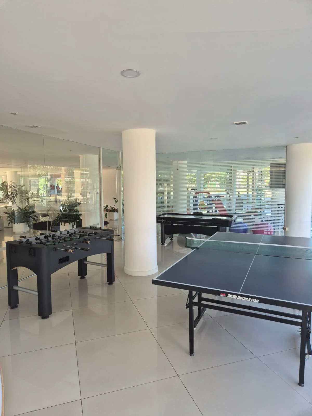 2 piscinas climatizadas en el último piso del edificio con 4 parrilleros , lavanderia con maquinas de lavar y secar, 2 salas de juegos para chicos y GYM completo.