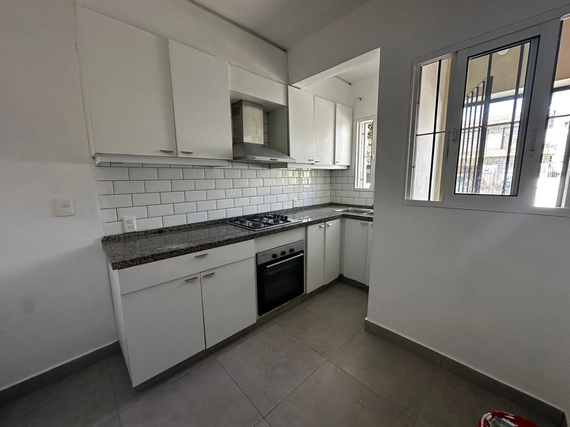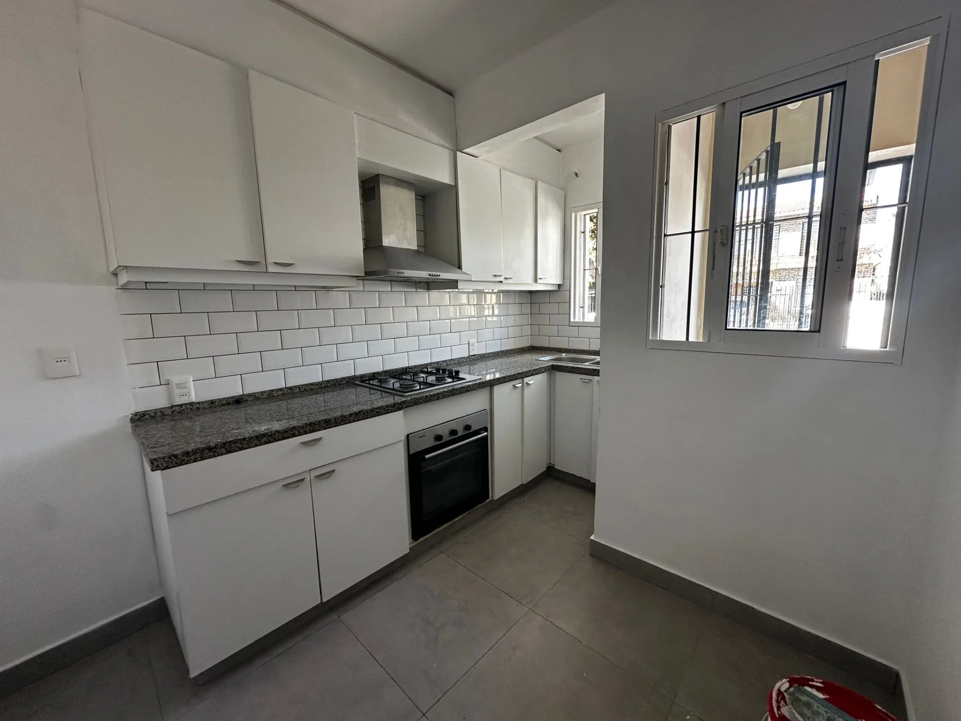 Planta Baja: living comedor con pisos plastificados, cocina definida equipada con anafe, horno empotrado y placares aéreos y bajo mesada. Baño social completo.