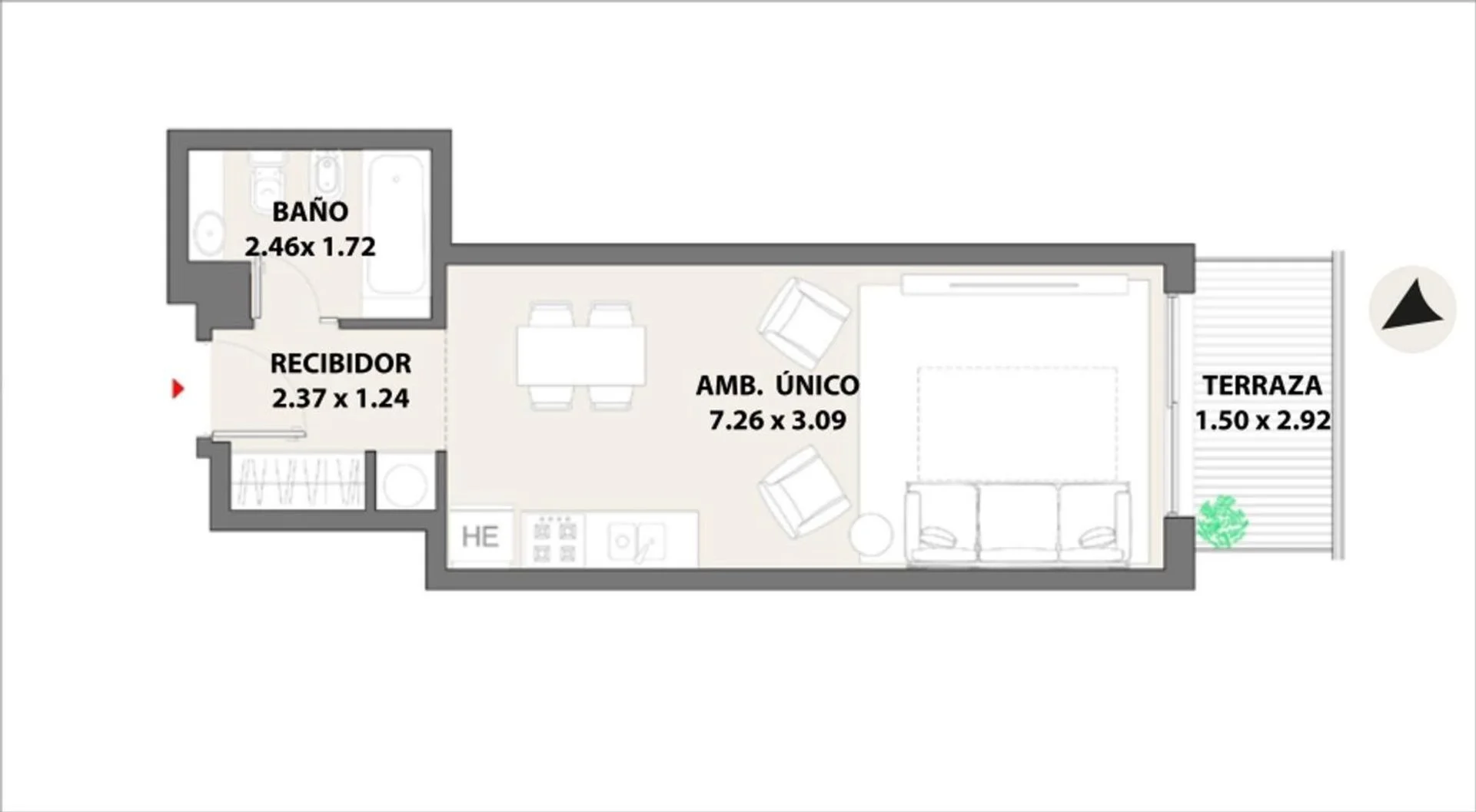 Alquiler Monoambiente en Villa Biarritz – Piso 2 con terraza al frente