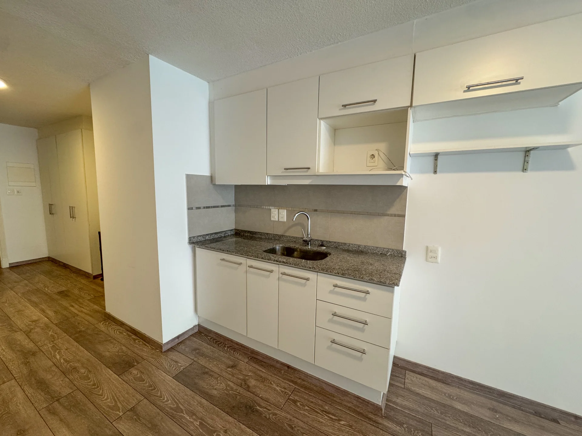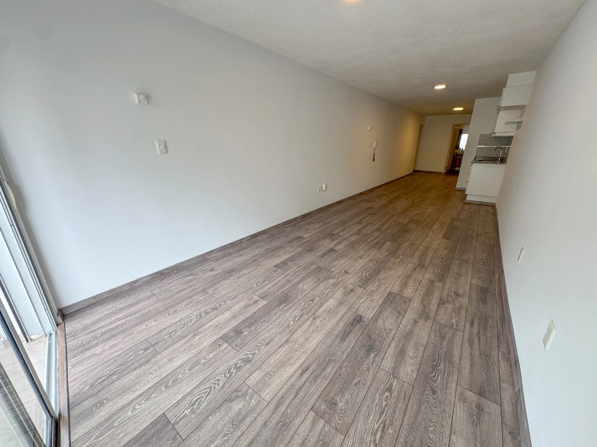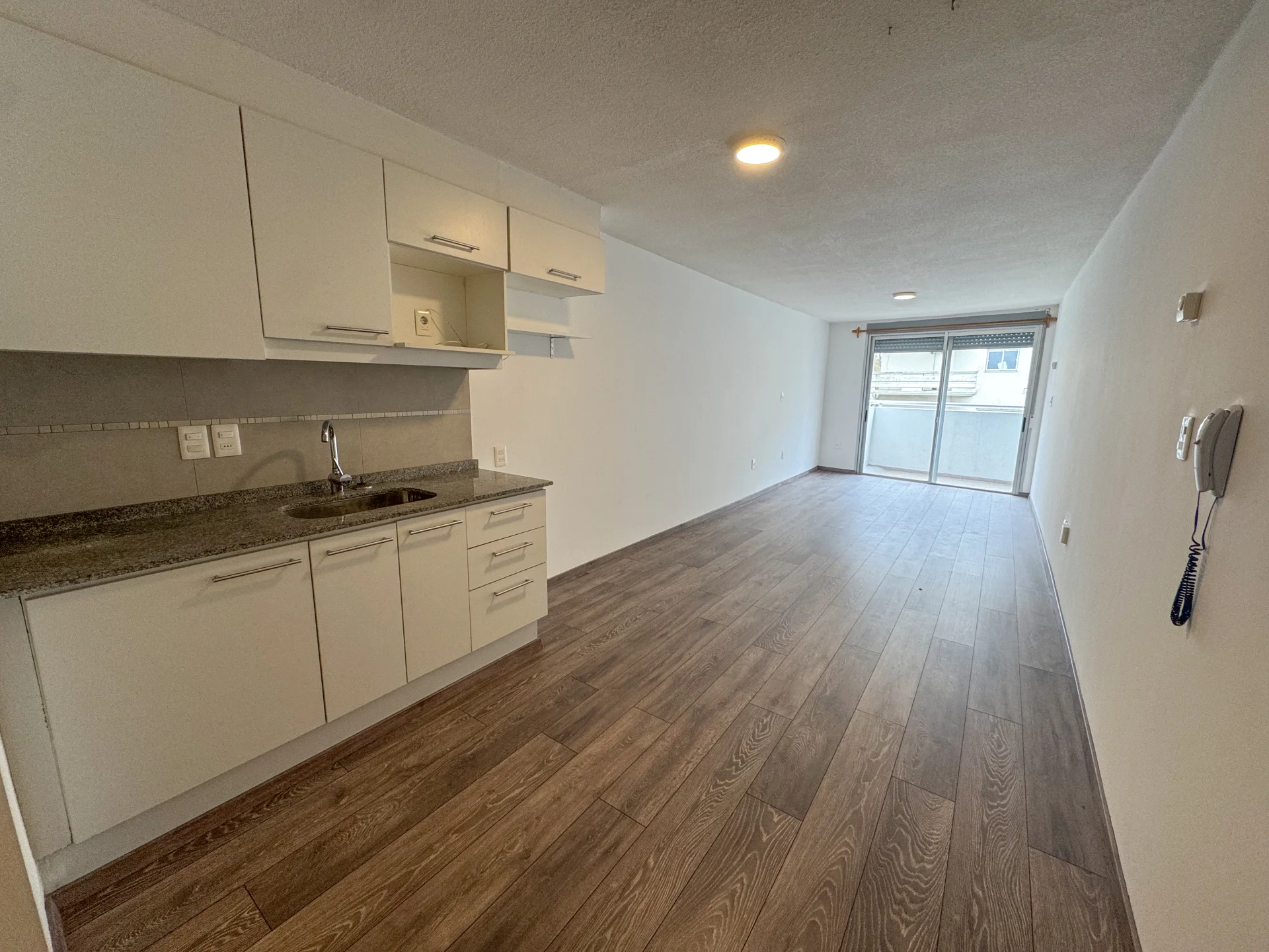 Gran ambiente con recibidor y placares empotrados, cocina integrada con placares de bajo y sobre mesada. Posibilidad de comedor, estar diario y cómodo dormitorio.