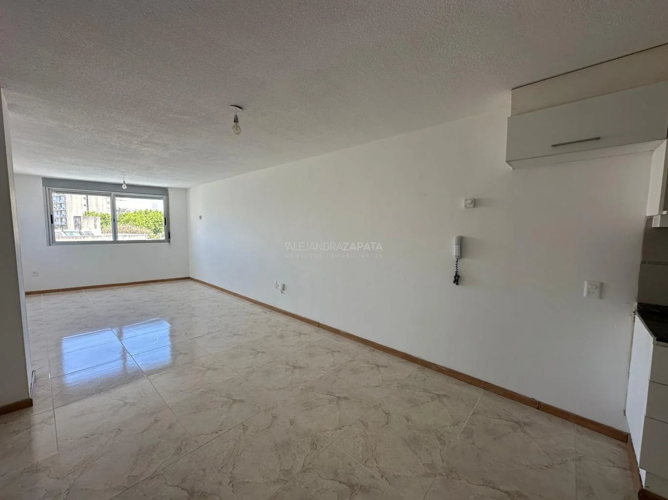 Amplio espacio que permite armar dos ambientes, living y dormitorio. Ventana con vista despejada.