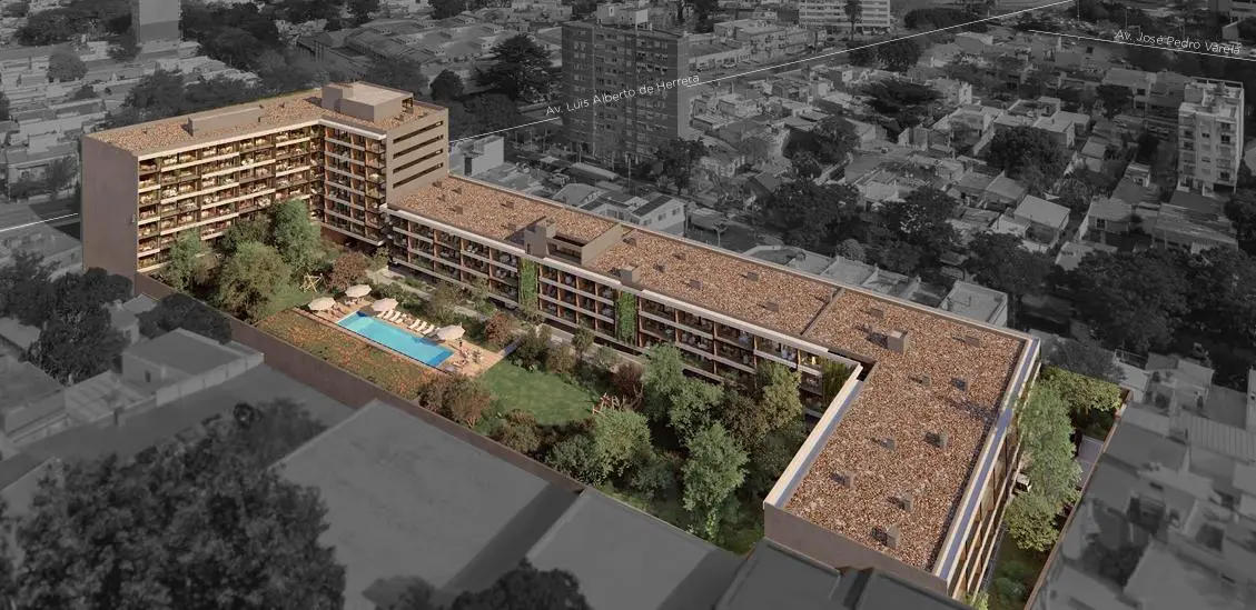 Este proyecto se desarrolla en torno a un gran jardín central de 3.000 m², un verdadero pulmón verde en medio de la ciudad. Ofrece apartamentos monoambientes, de 1, 2 y 3 dormitorios.