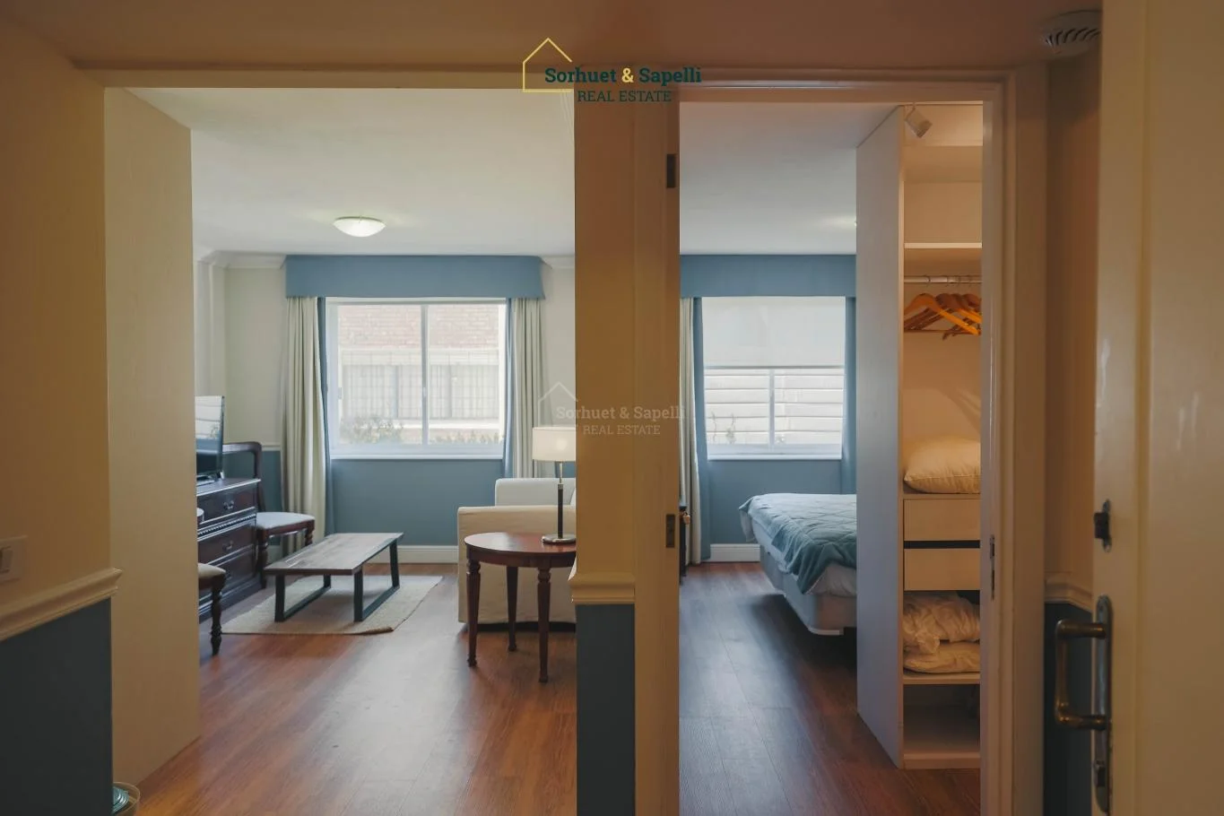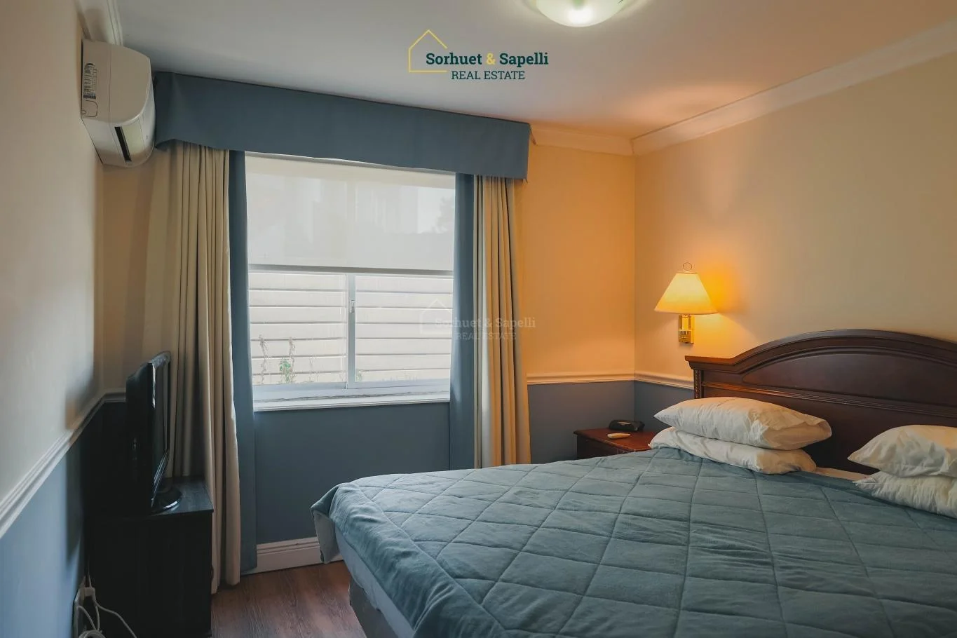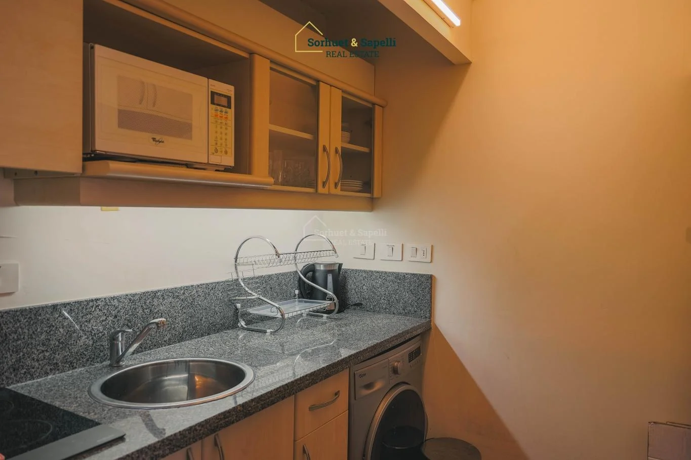 Sup. Edif: 44 m2 Living comedor. Cocina semi integrada equipada. Baño completo. Dormitorio. Vestidor. Se destaca la luz del apartamento. Agua caliente Central. Aire acondicionado. El edificio cuenta con: Portería con totem. Piscina. Jacuzzi. 2 Livings. Barbacoa. Cámaras de seguridad. Gastos comunes aprox: $8500 EN VENTA CON RENTA Comisión inmobiliaria: 3% + IVA