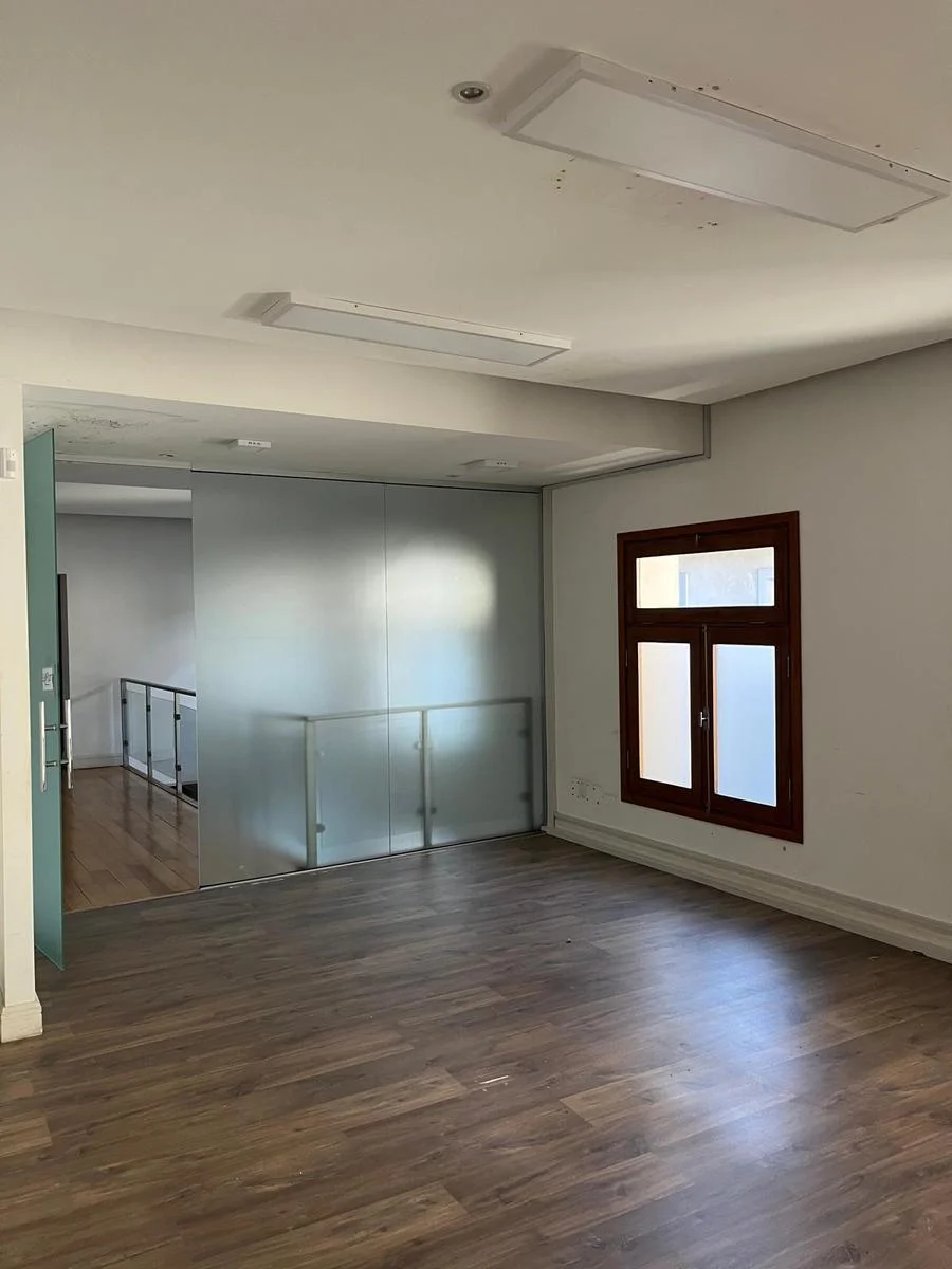 Oficina en primer piso por escalera, cuenta con dos plantas (nivel 1 y planta alta) + terraza con parrillero en la azotea de uso de la unidad. Tiene tres oficinas, dos en suite mas otro baño social. Gran ambiente al frente con salida a balcones con vista a la peatonal, cocina grande.
