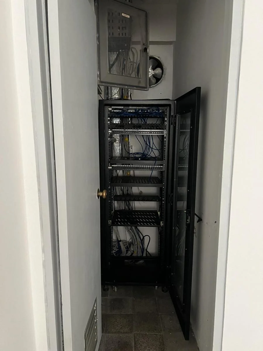 Dispone de pisos de parquet en excelente estado y conexiones previstas para servidores e internet de alta demanda.