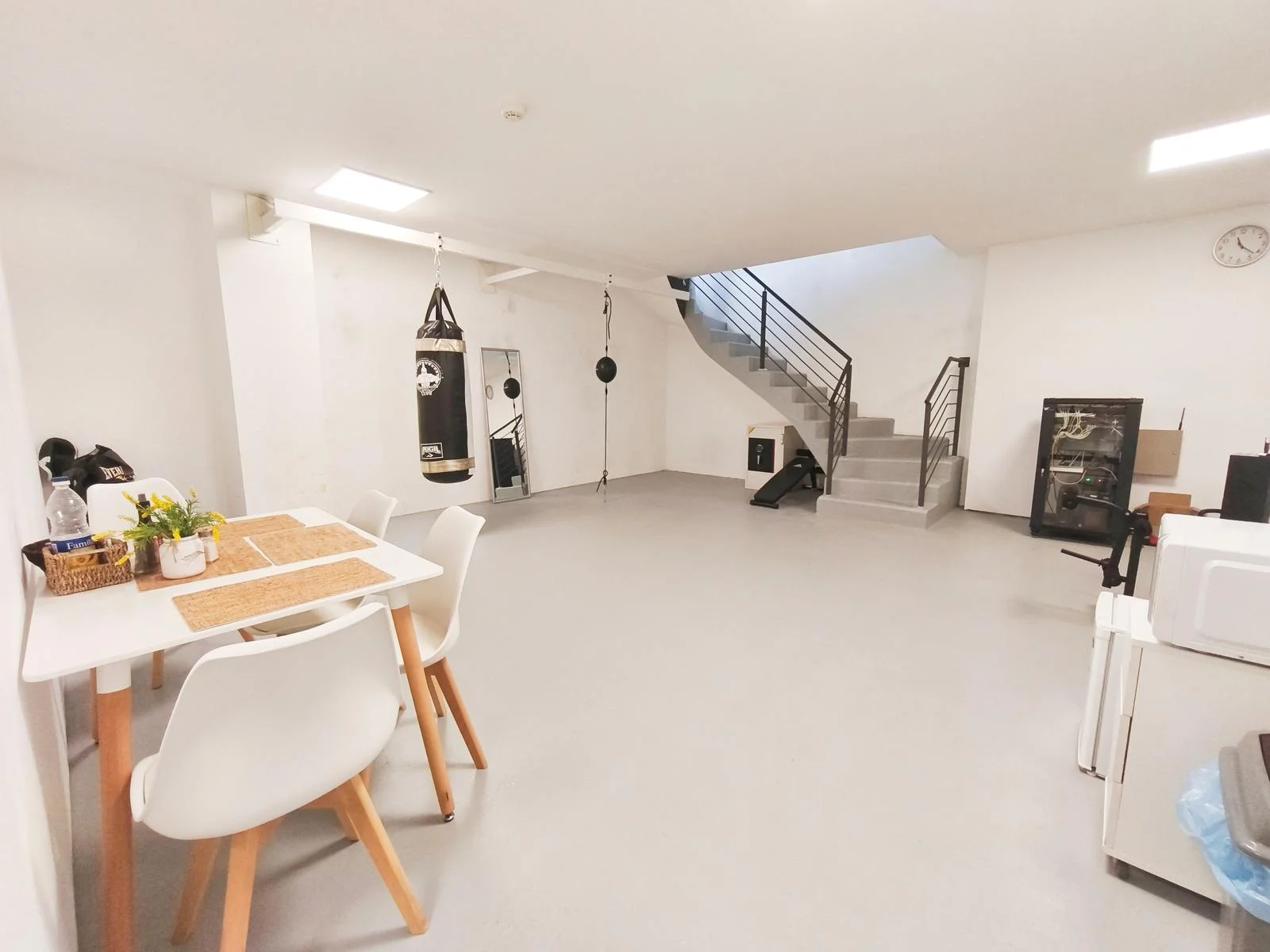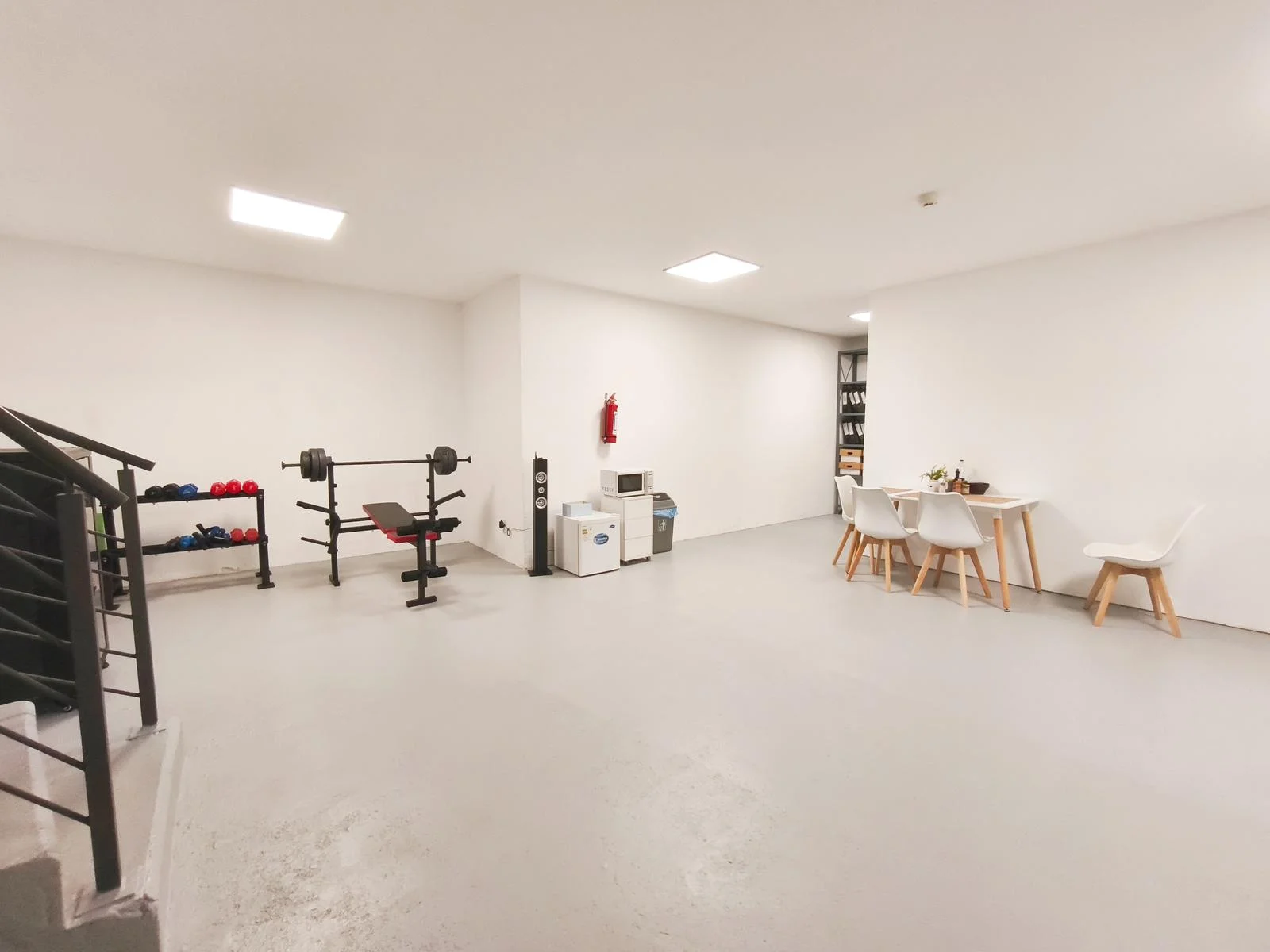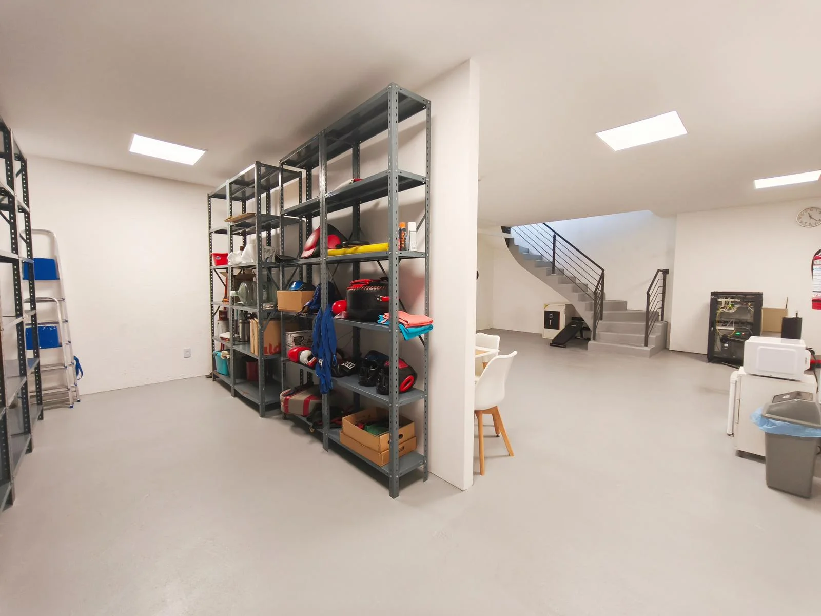 Gran área multiusos en subsuelo. Actualmente área de comedor, archivo y sala de gimnasio.