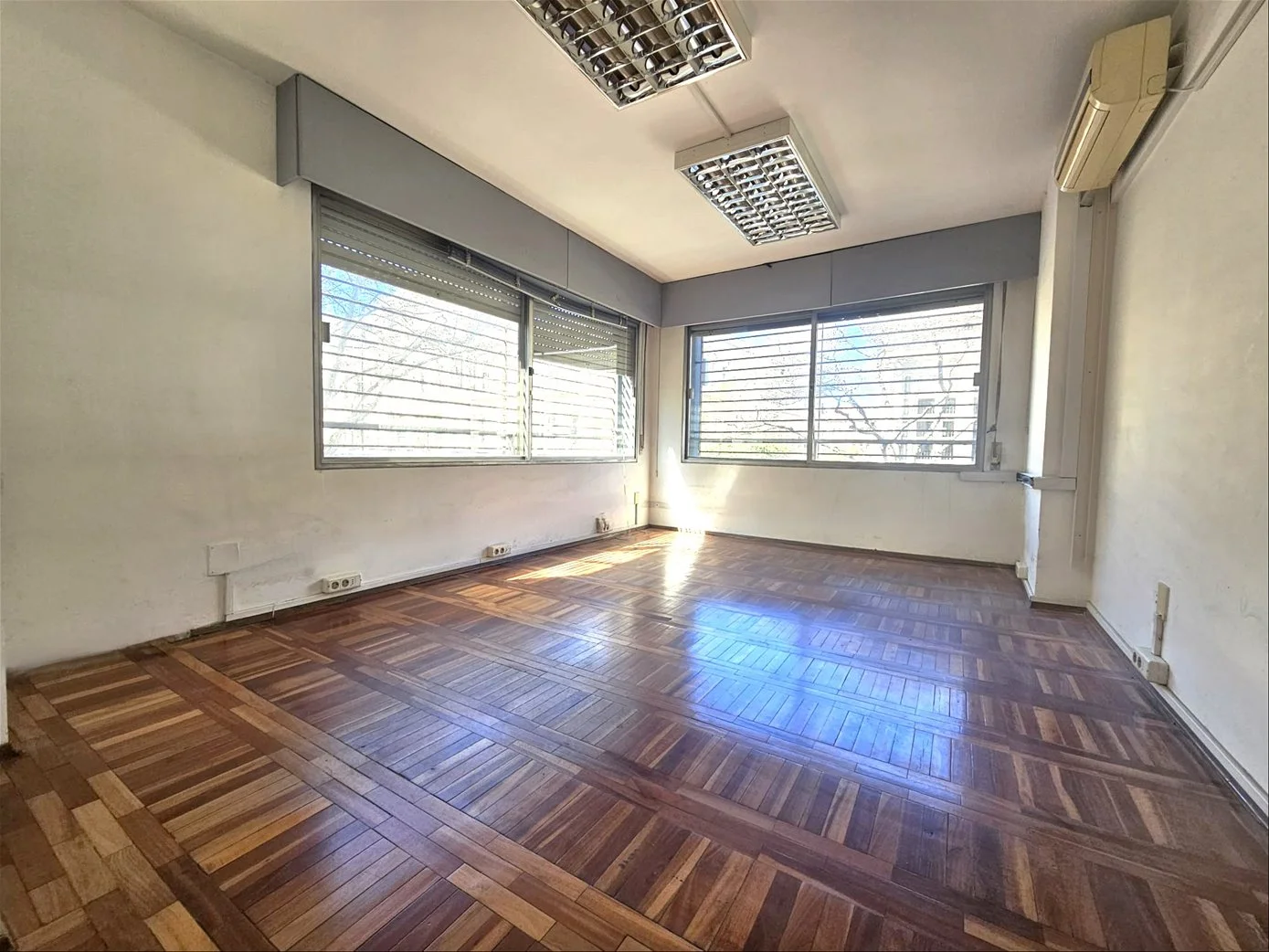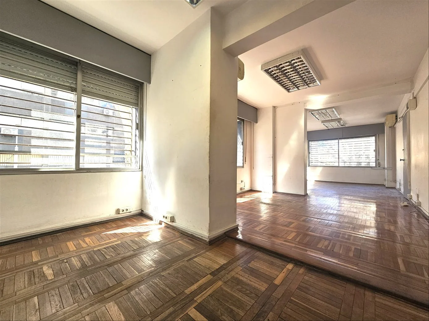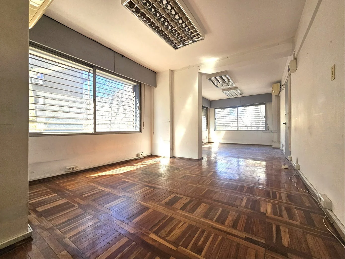 Oficina de 109 m2 en 18 de julio esquina Tristán Narvaja, frente a la sede de la Universidad de la República y la Biblioteca Nacional. Cuenta con recepción, 3 espacios de trabajo amplios donde puede haber varios puestos de trabajo (o sala de reuniones en alguno de ellos) y 1 privado. Es muy fácil compartimentar el espacio en despachos más pequeños. Cuenta con 2 baños, cocina y terraza lavadero. Muy luminoso.