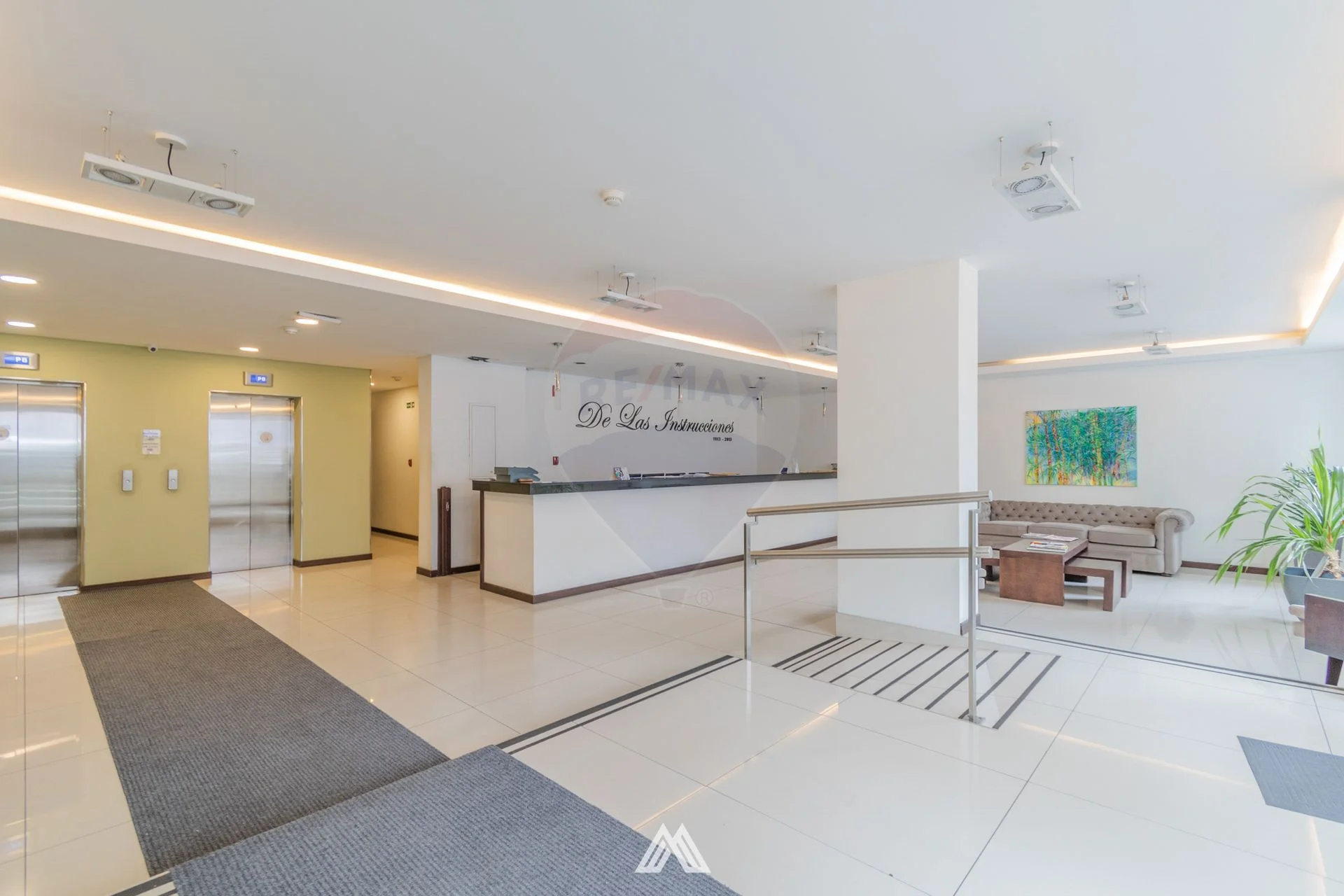 Muy lindo estudio al frente, con balcón, en Edificio de las Instrucciones, piso 7, en excelentes condiciones de mantenimiento. Tiene una terraza de 6 m2 con vista panorámica, orientación norte, con mucho sol. El apartamento cuenta con dos ambientes grandes, independientes, y area de firmas .Tiene muy buenos placares, baño completo en excelente estado y kitchenette. También cuenta con portería presencial diurna y un comodo lugar en el garage, sala de firmas y barbacoa.