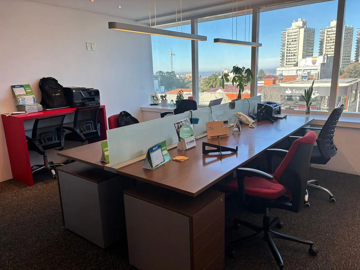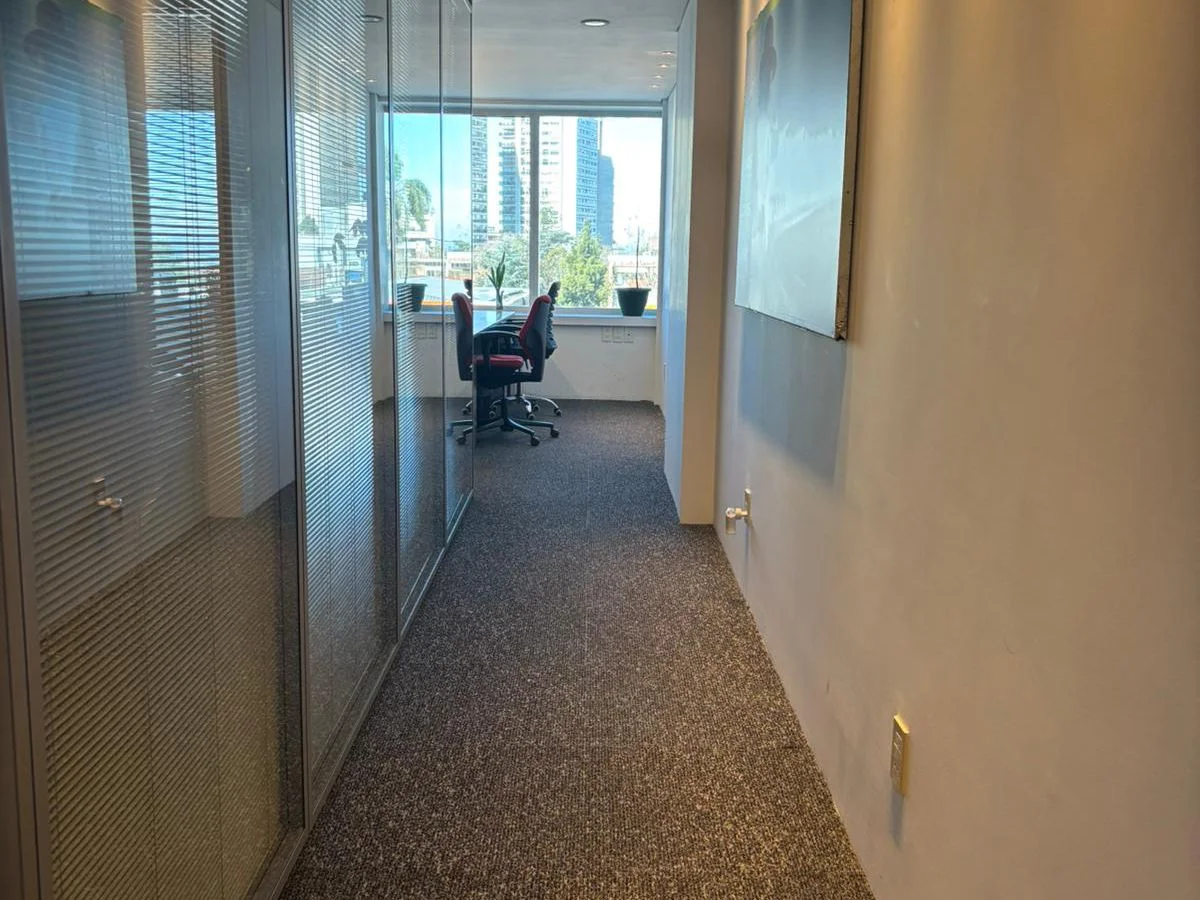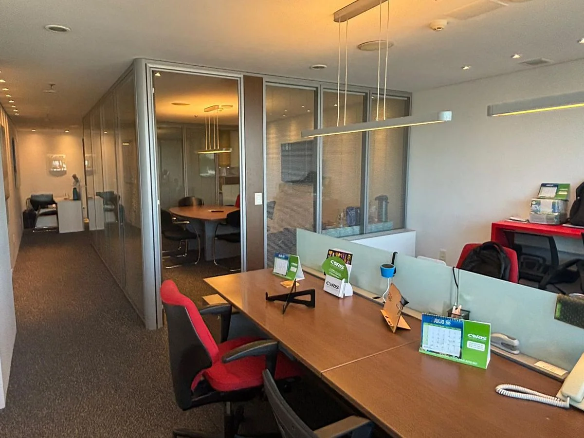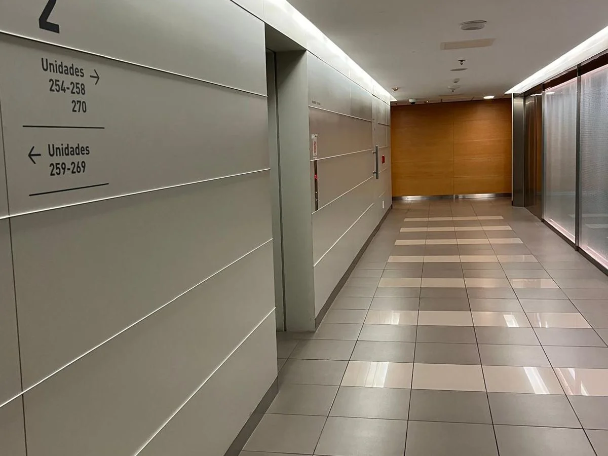 Desarrollada en piso técnico, incluye 4 espacios de trabajo, sala de reuniones, kitchenette, baño, garaje para 1 auto (cochera nº2667 552) y unidades split.