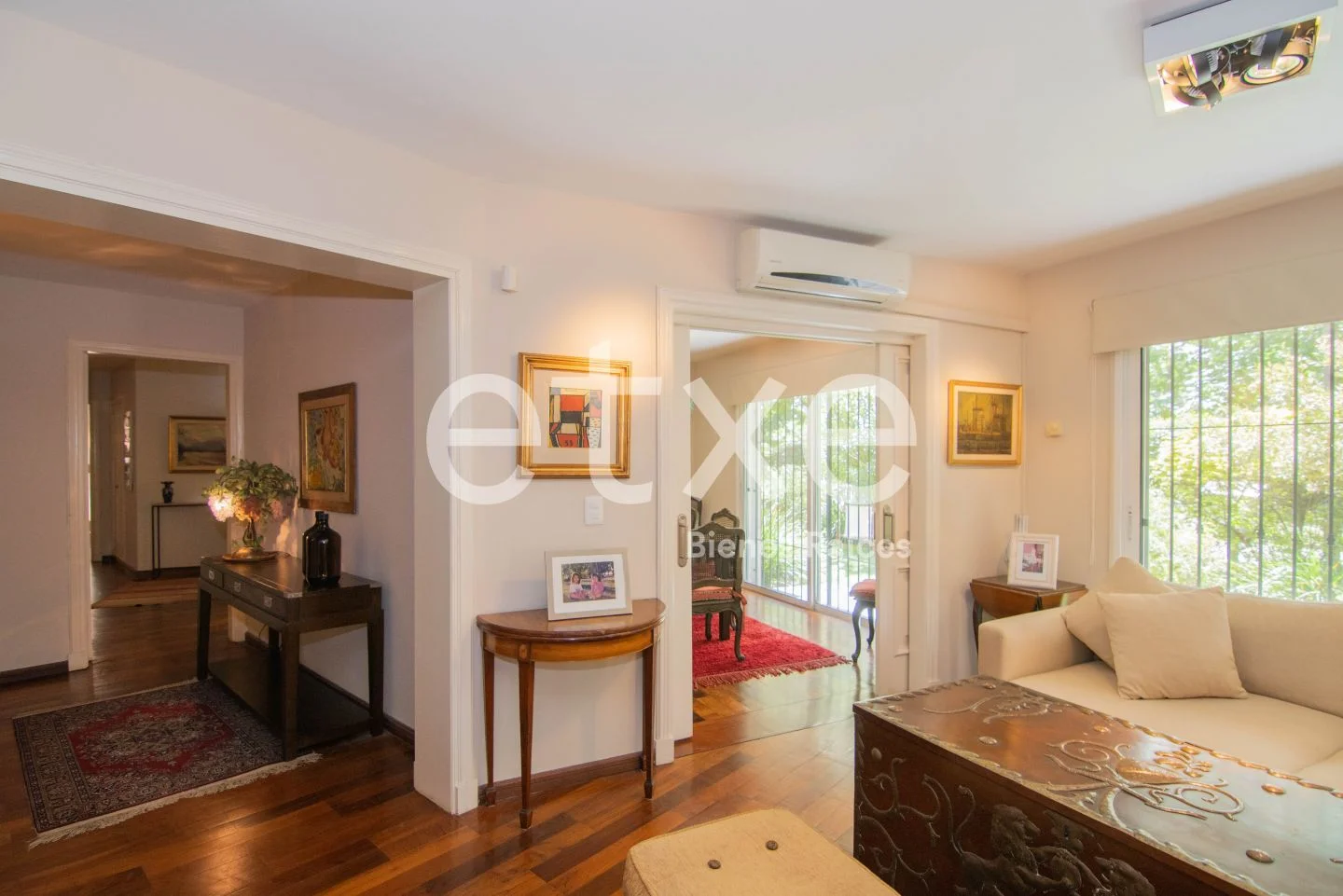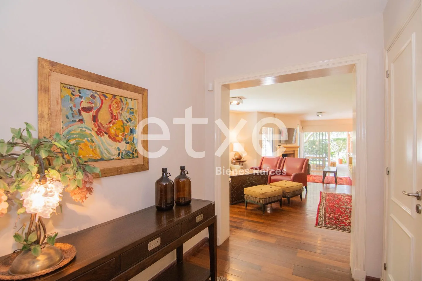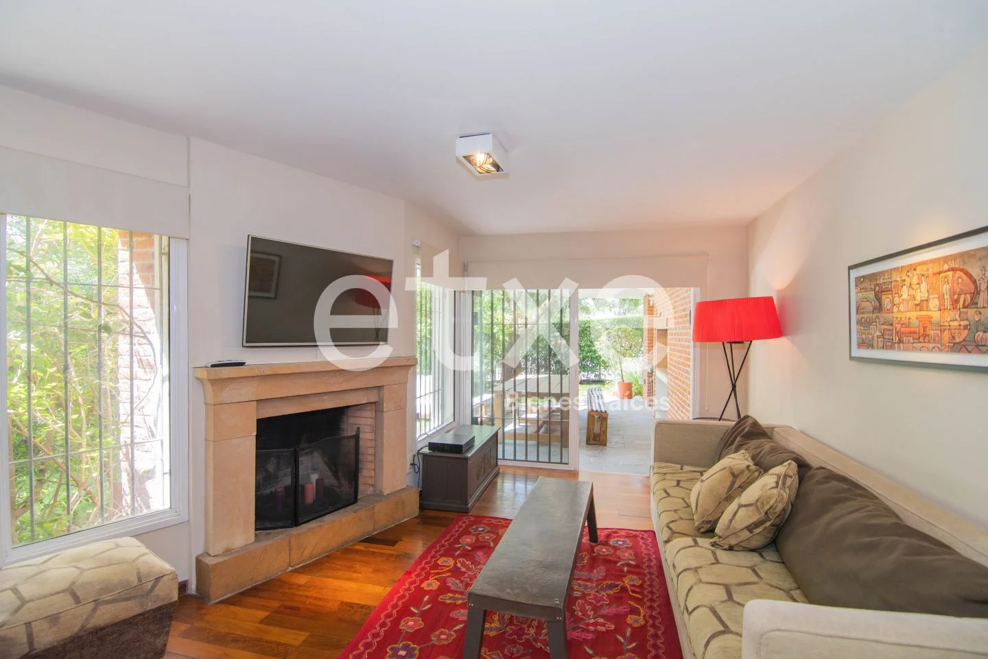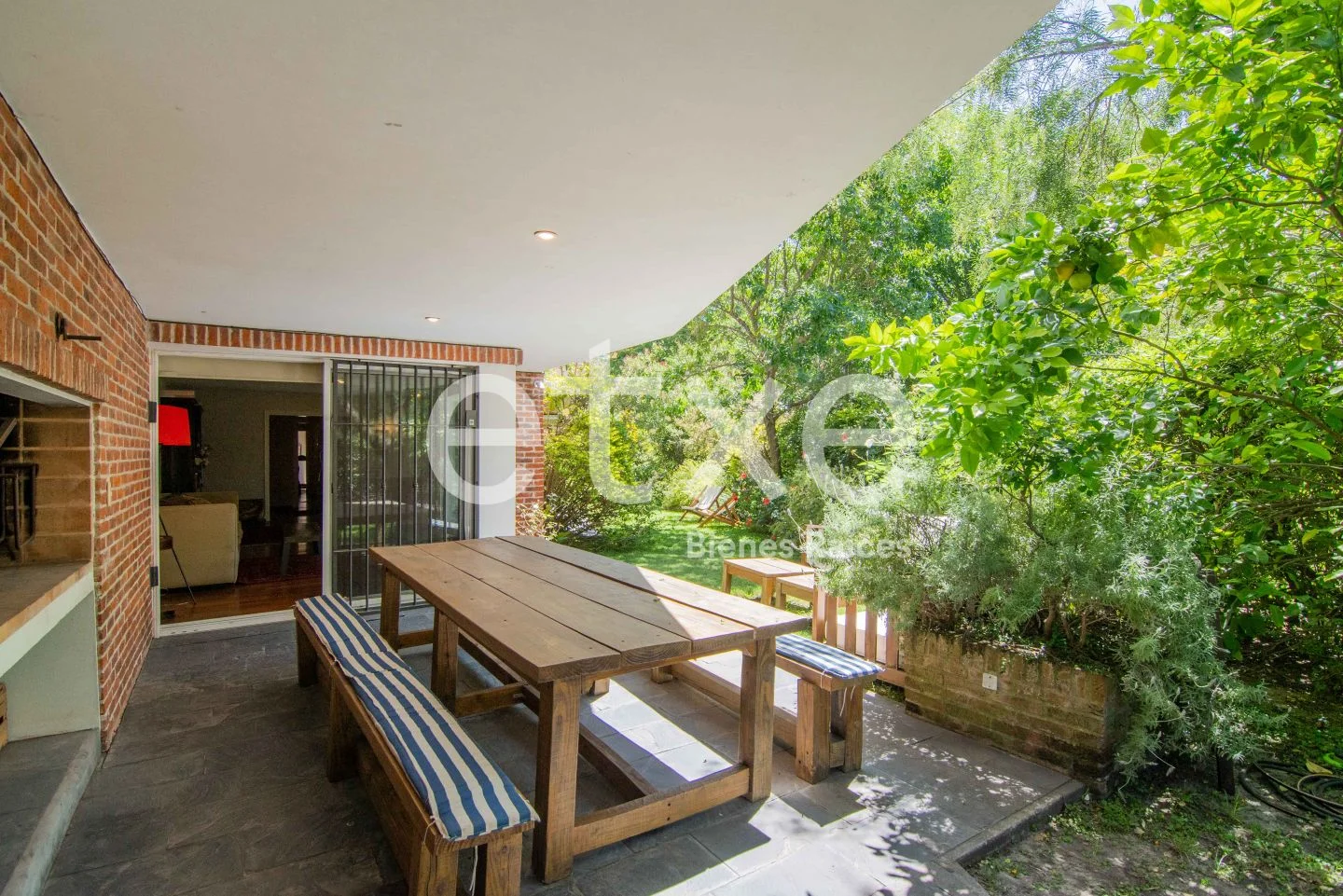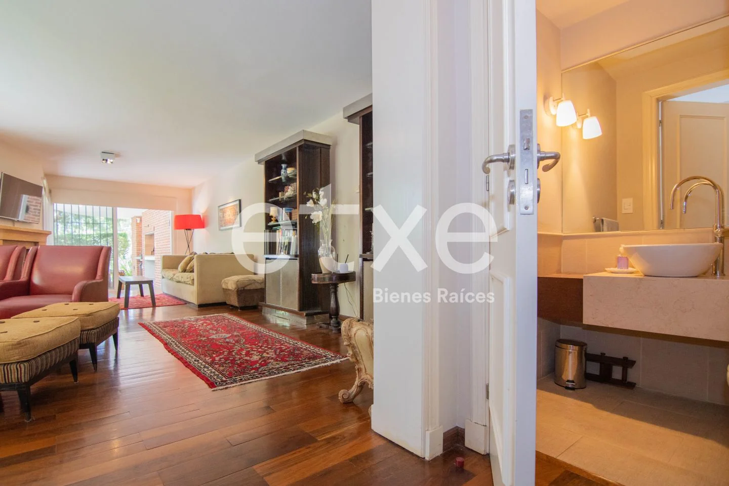 Ingresamos al apartamento por un amplio hall de recepción con baño social que nos lleva a un living y estar con estufa a leña. Salimos a un enorme jardín que incluye terraza, parrillero y un patio al fondo. Todo el apartamento y jardín tiene orientación norte e ingreso independiente, ideal para cuando hay invitados.