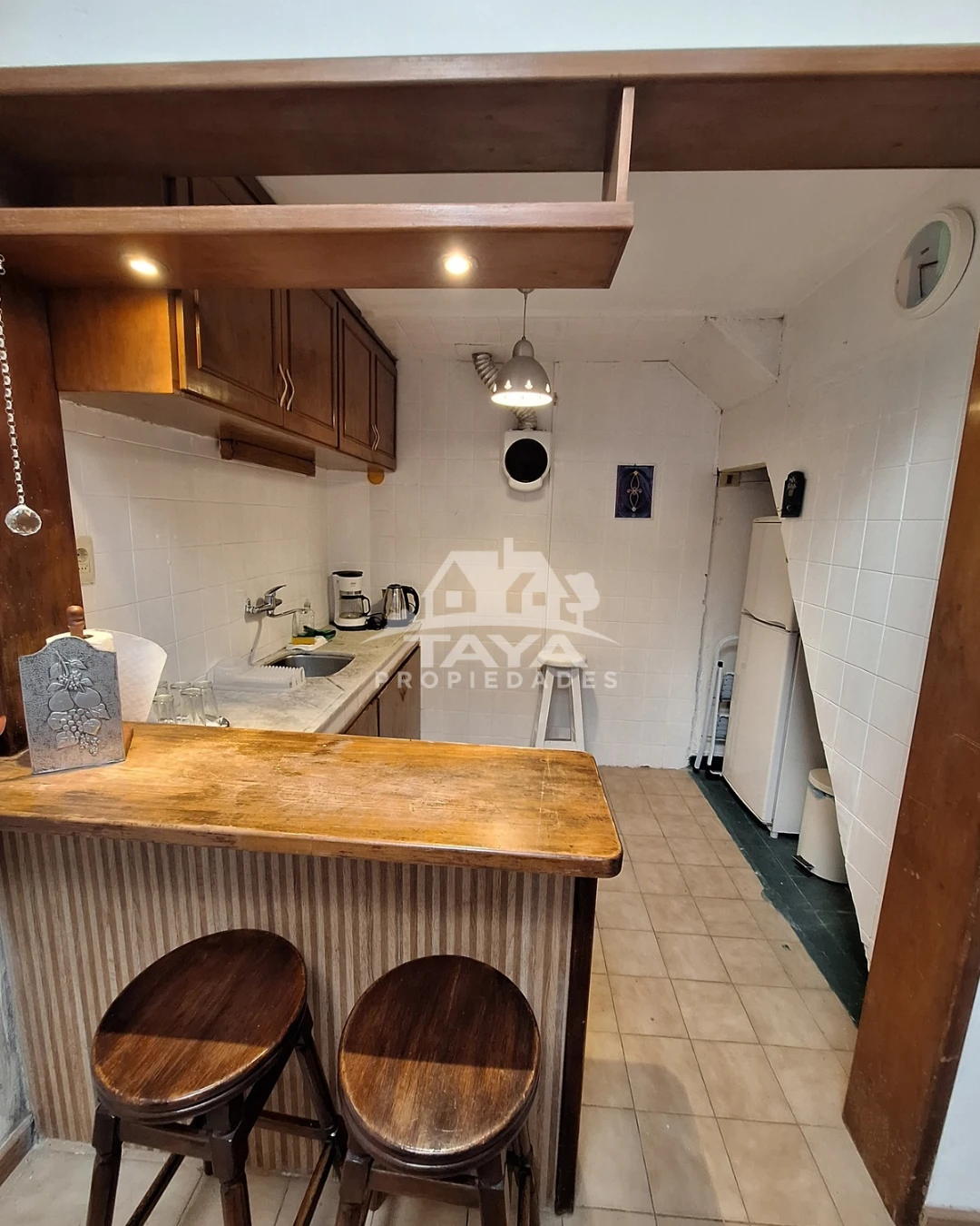 - COCINA SEMI-INTEGRADA, LA CUAL SE SEPARA POR UNA BARRA EN MADERA, TIENE MESADA DE MÁRMOL, MUEBLE AÉREO, BAJO MESADA