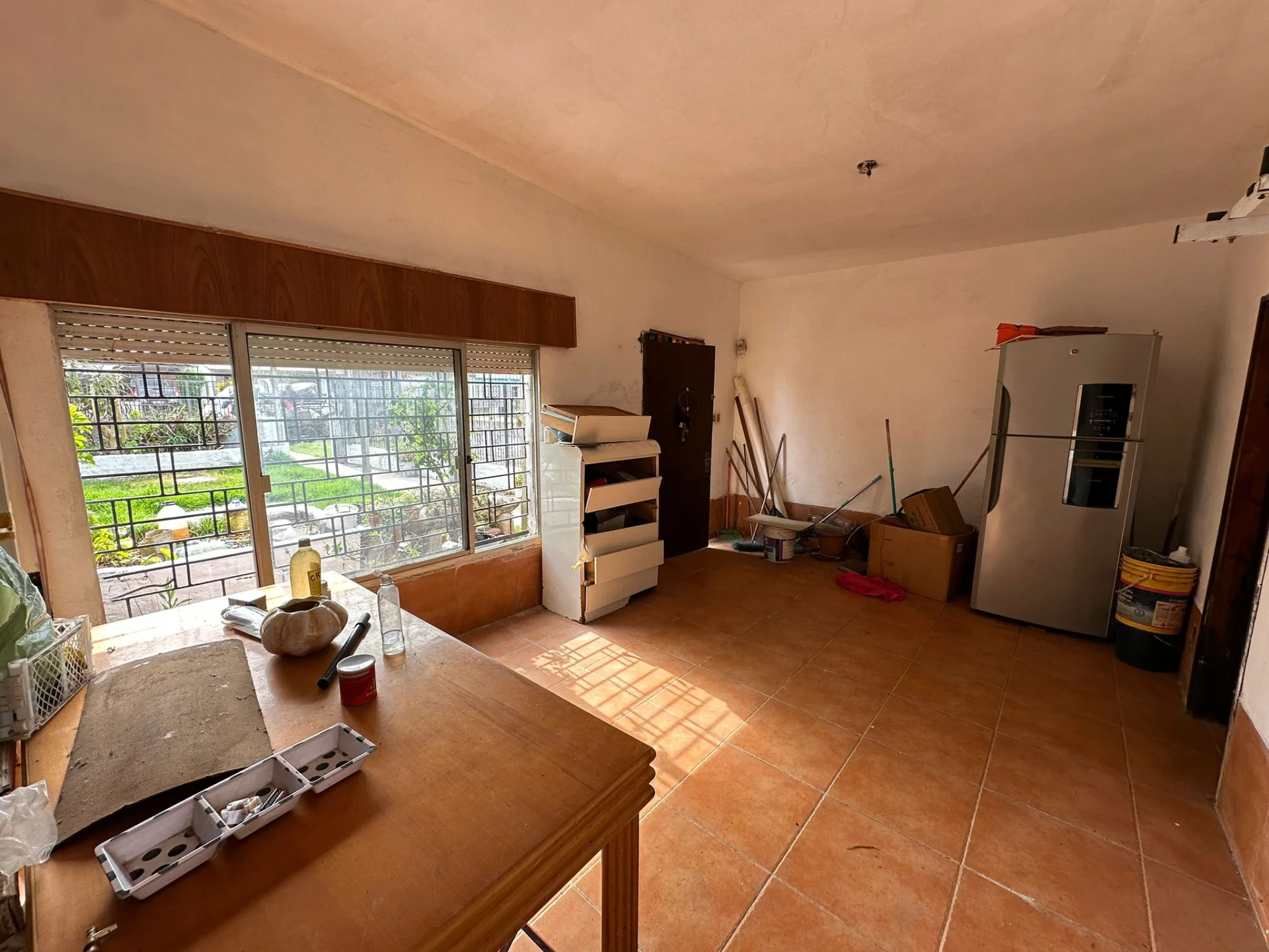 La casa principal cuenta con dos dormitorios, jardín cercado al frente, living comedor de buen tamaño con ventanales al jardín y estufa a leña. La cocina es definida, equipada con mesada y placares, dispone de salida lateral y buena ventilación. El baño está revestido en cerámica, tiene mampara y se encuentra en buen estado general. Los dormitorios tienen pisos de cerámica tipo madera, paredes pintadas recientemente y ventilación natural.