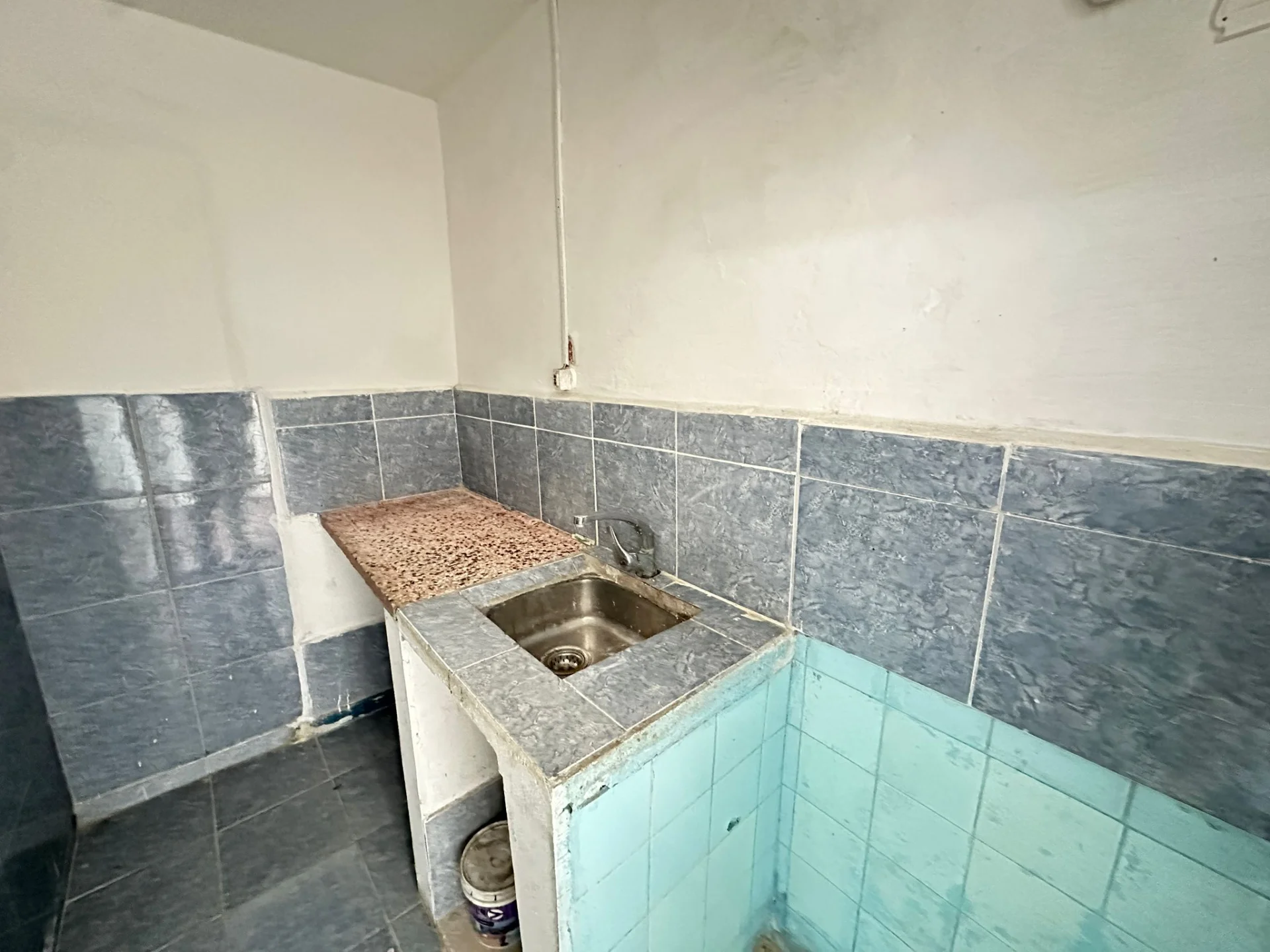 El apartamento independiente al fondo tiene ingreso propio desde el lateral. Incluye living comedor, cocina definida revestida en cerámica, dormitorio con ventana, baño completo con zona de ducha separada y ventana alta, así como jardín propio al fondo.