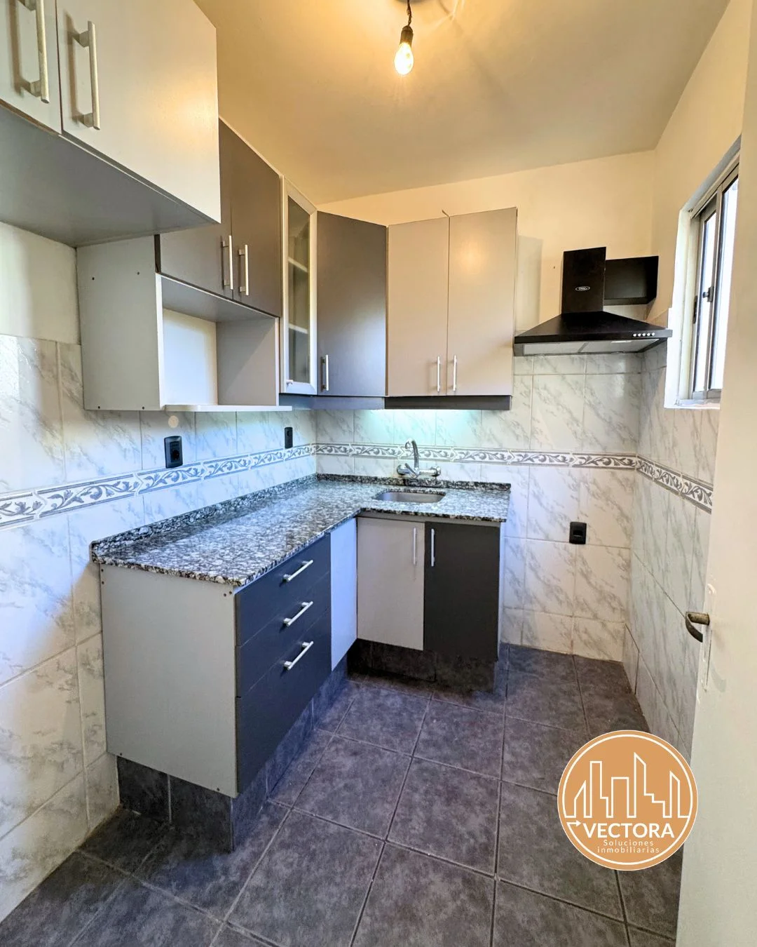 ✔️ Cocina definida y moderna con mesada en "L" de granito, grifería en monocomando y varios muebles aéreos y bajo mesada con campana extractora nueva