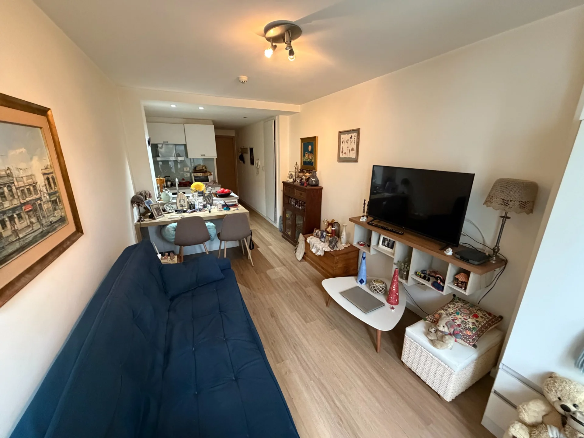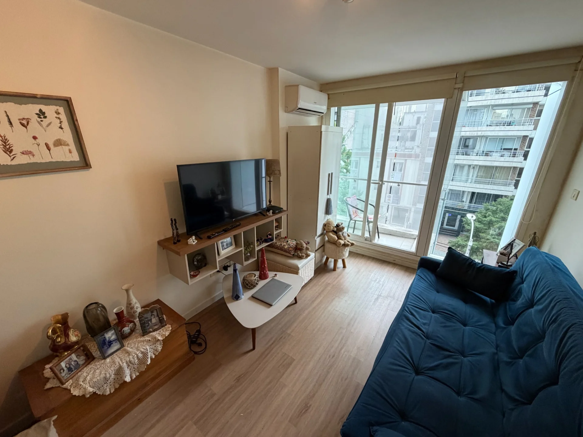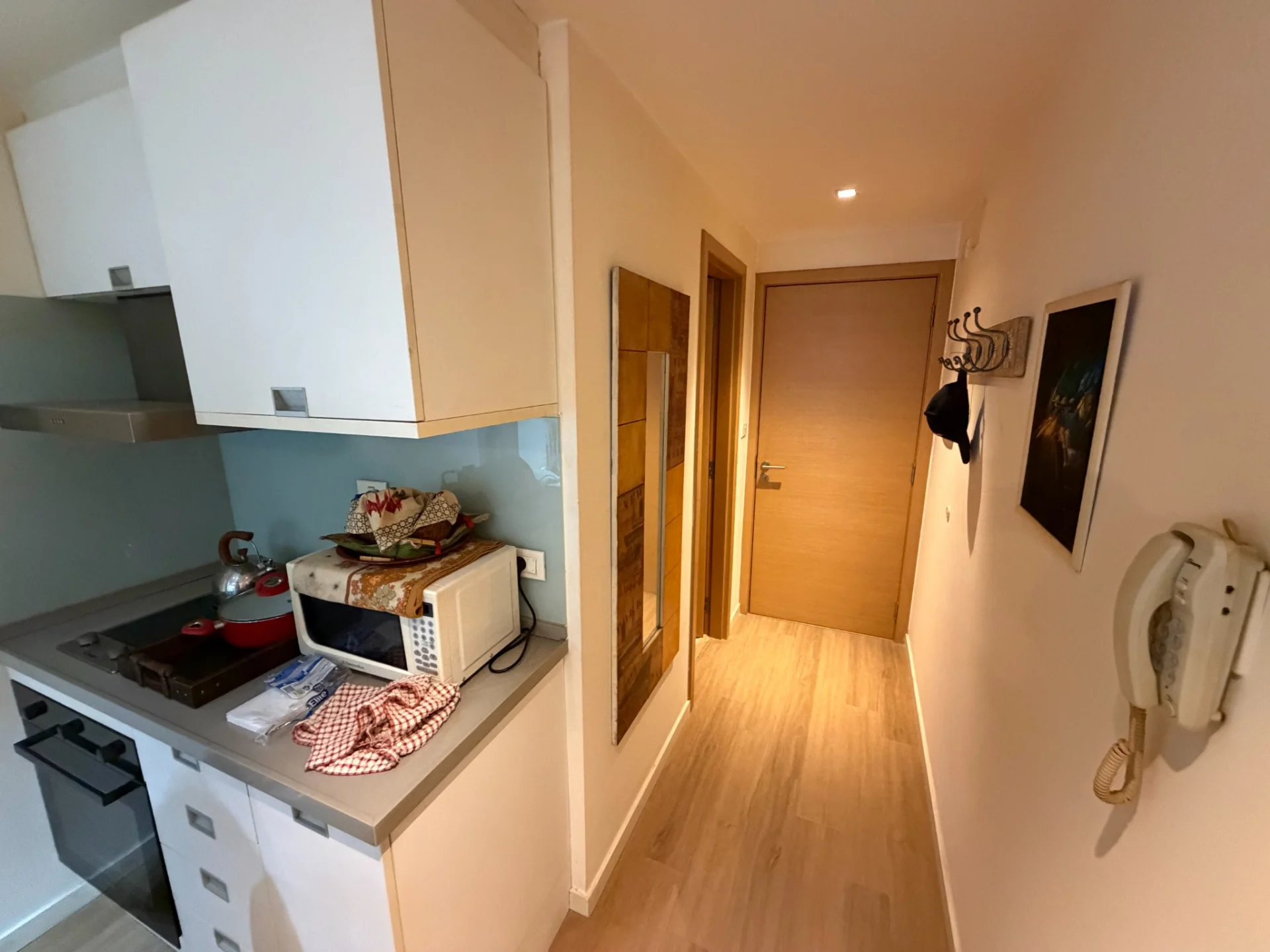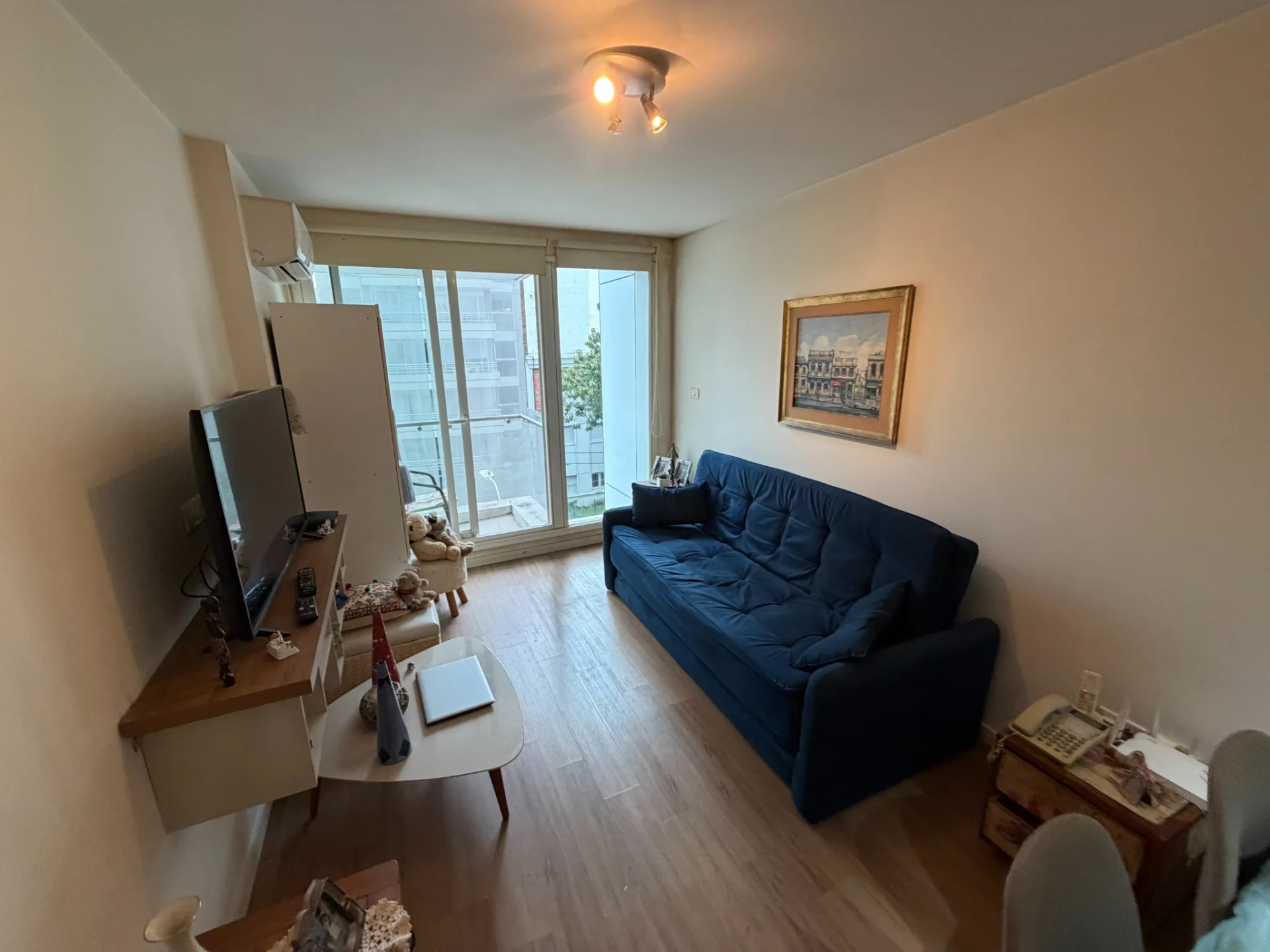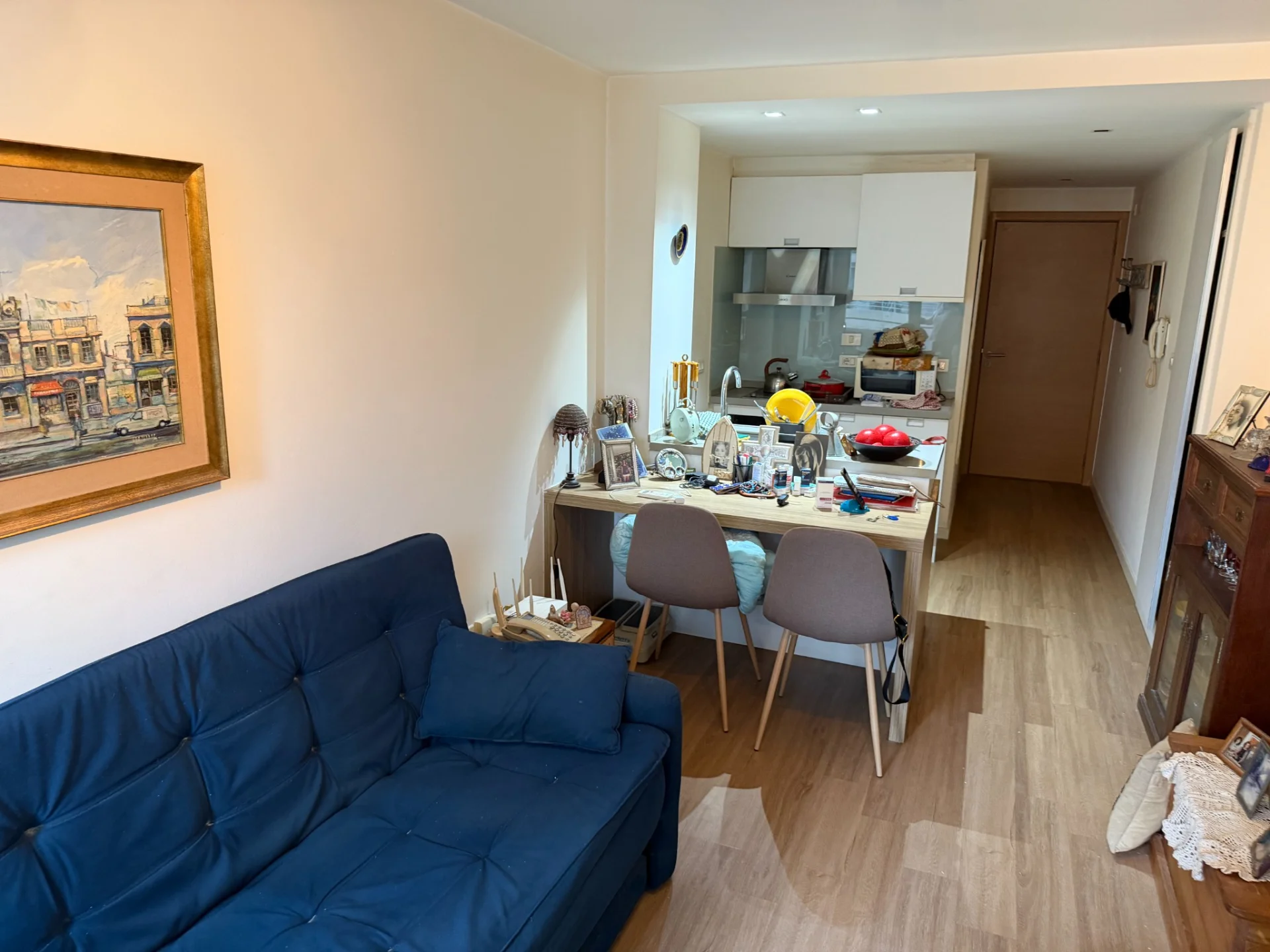 Al entrar a la unidad nos encontramos con un pasillo el cual nos lleva al baño y al amplio ambiente. El edificio cuenta con 12 años aprox por ende se encuentra todo nuevo. La cocina esta impecable. Se entrega con anafe, horno de empotrar, extractor. Ademas se entra con aire acondicionado.
