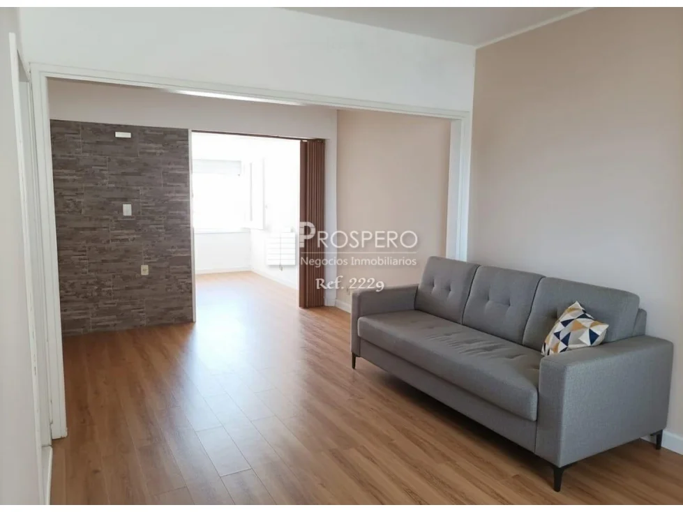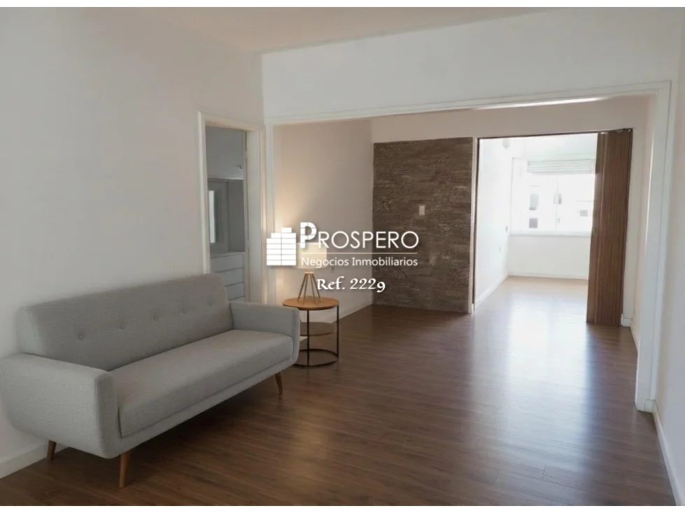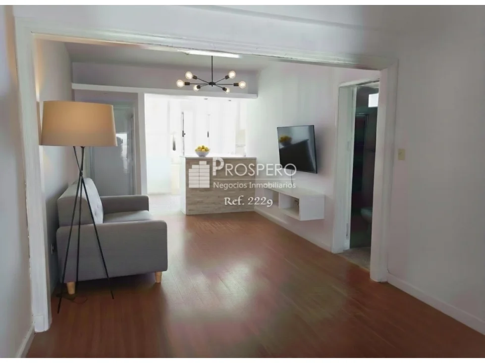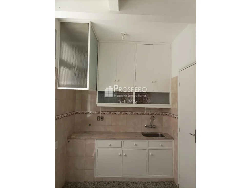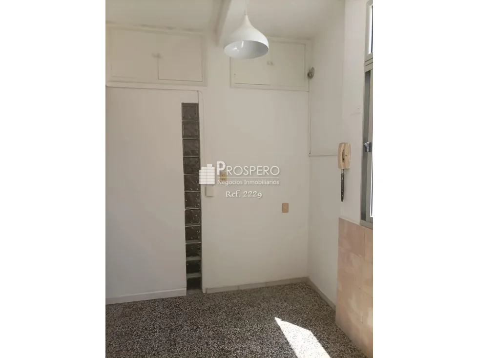 Amplio living-comedor con buena luz natural, cocina definida con muebles aereos y bajo mesada.