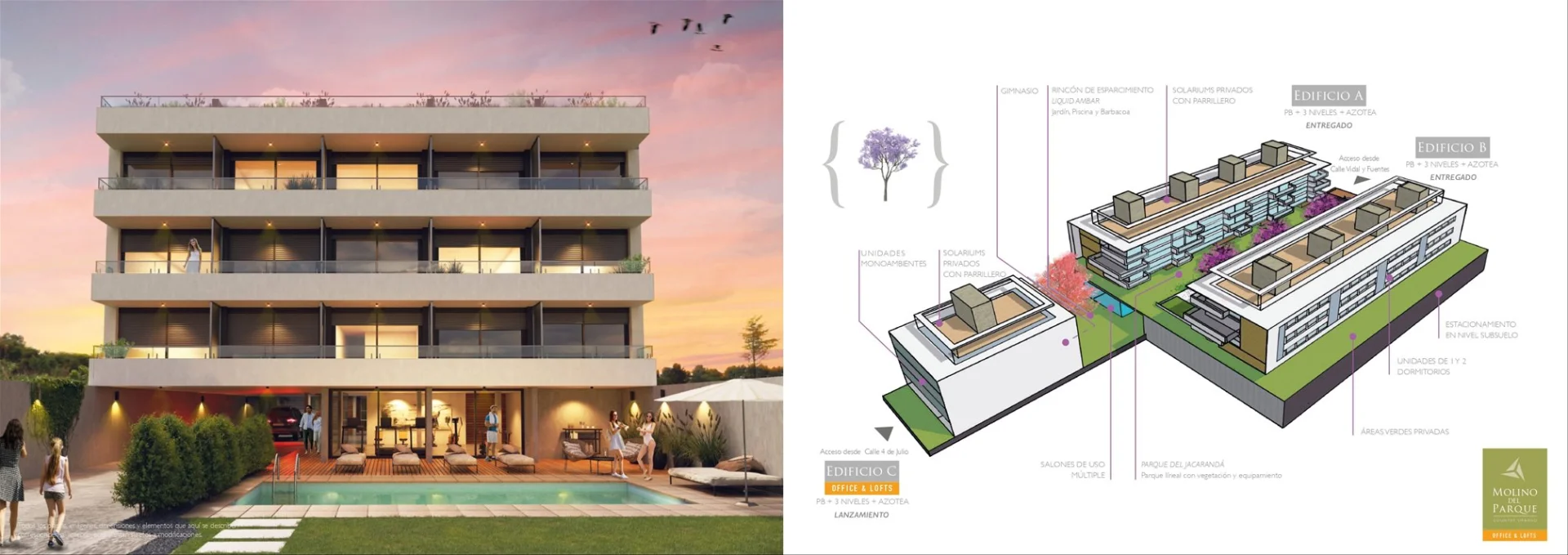 PARQUE BATLLE / Country Urbano MOLINO DEL PARQUE, muy buena ubicación con doble entrada, sobre las calles 4 de Julio y Vidal y Fuentes, zona tranquila cerca de todos los servicios - Entrega de unidades de Edificio C: Setiembre / Octubre 2025-