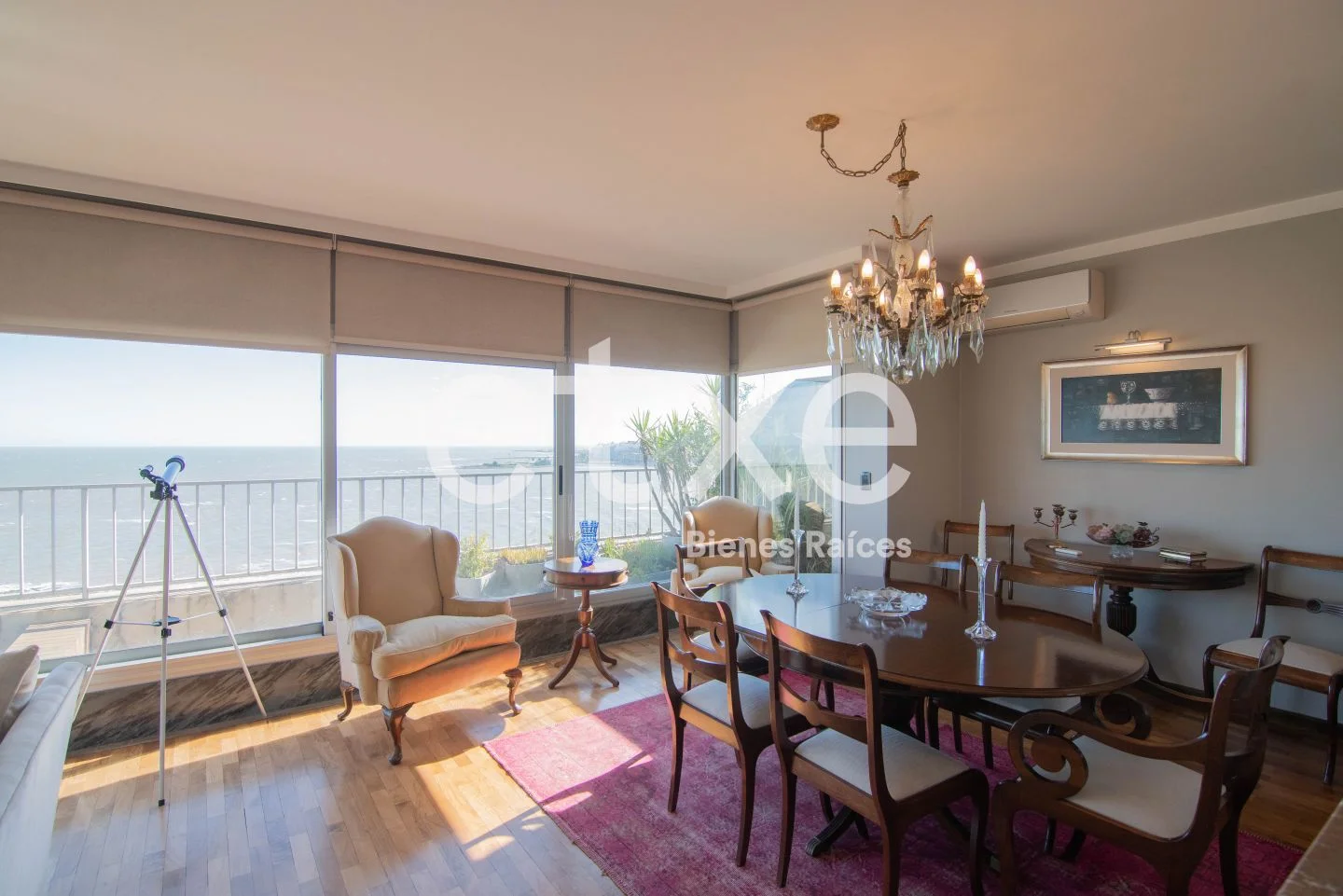 Este exclusivo apartamento cuenta con un amplio living-comedor con grandes ventanales que ofrecen una vista panorámica al mar. Baño social. Amplia cocina con barra. Además, cuenta con lavadero, dormitorio y baño de servicio. El área de estar-comedor se destaca por su luminosidad y una acogedora estufa a leña. 3 dormitorios con orientación norte, siendo el principal en suite con varios placares, mientras que los otros dos dormitorios comparten un baño completo.