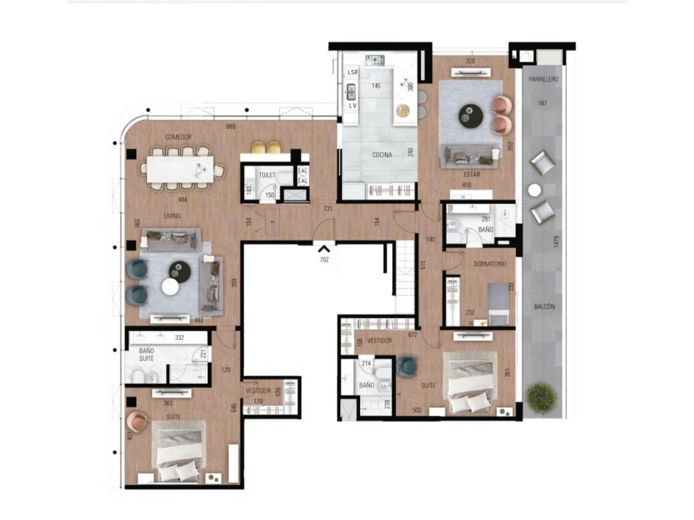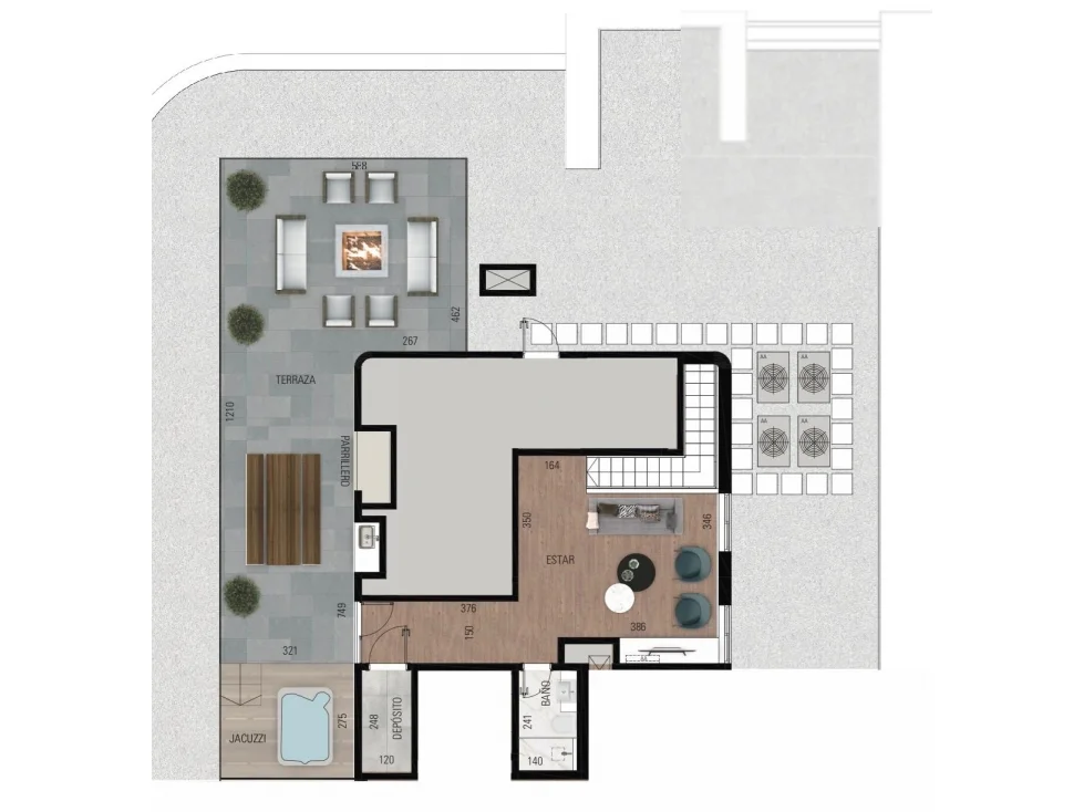 Superficie propia del Penthouse (uso exclusivo): 313,63 m²