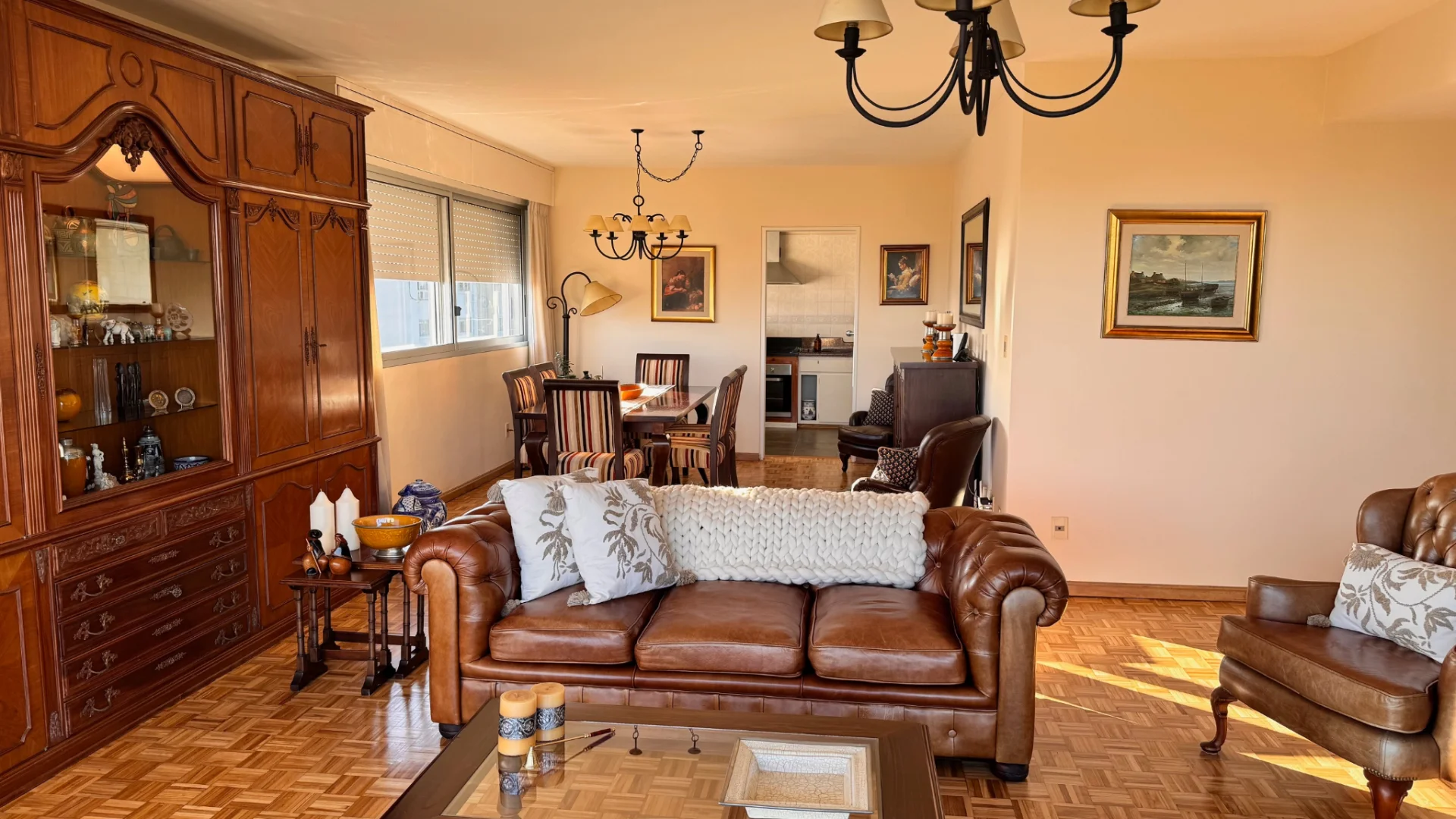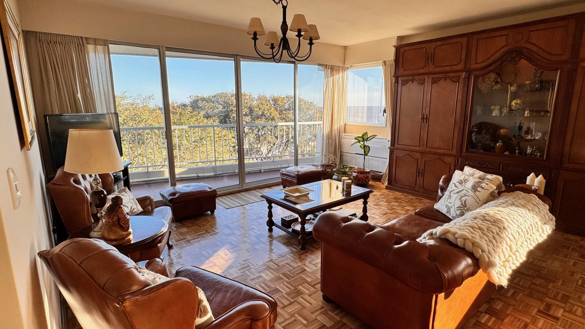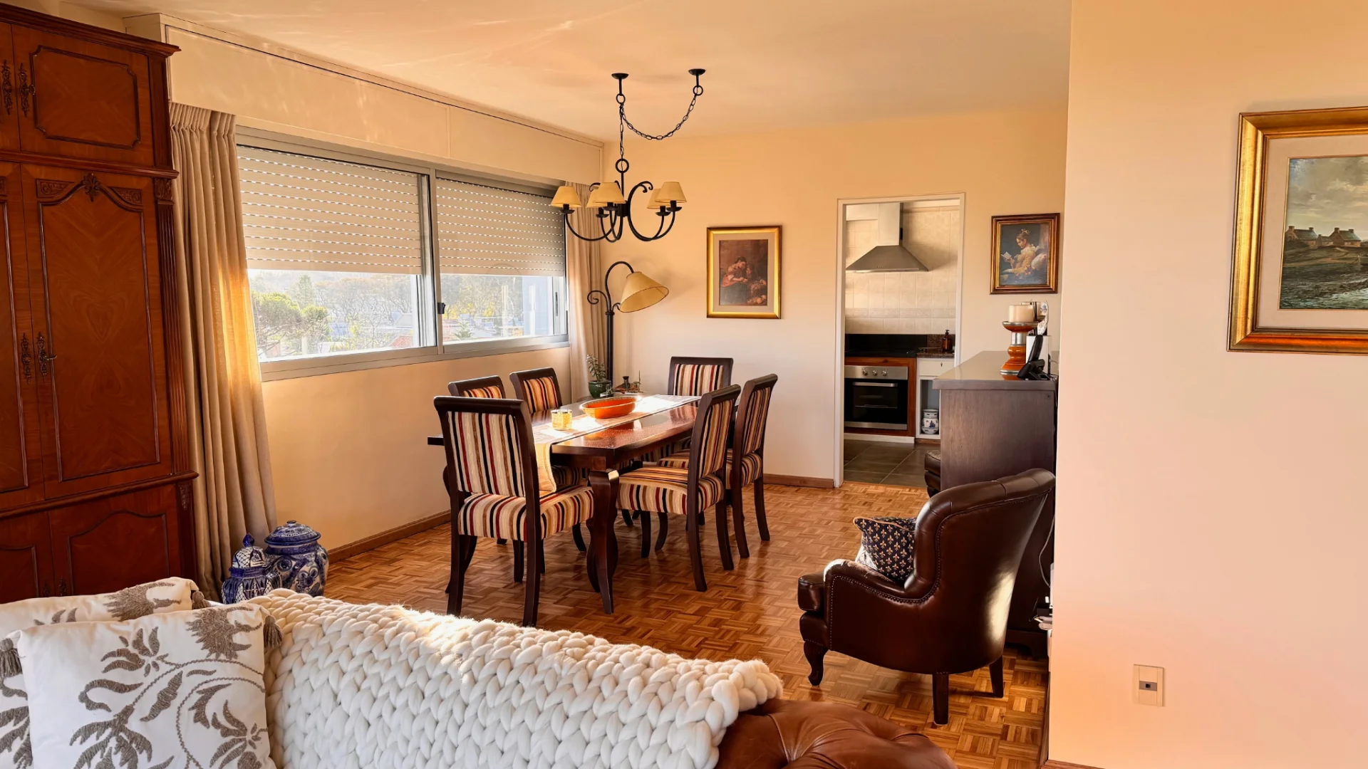 La unidad cuenta con un amplio garage para un vehículo, doble ventana de aluminio en todas las aberturas, pisos de madera y dos aparatos de aire acondicionado. La calefacción central a gas asegura confort durante todo el año. La portería es partida y cuenta con vivienda. Este apartamento es excepcionalmente luminoso y soleado, con ventanas orientadas al Norte, Oeste y Sur, garantizando una excelente iluminación natural.