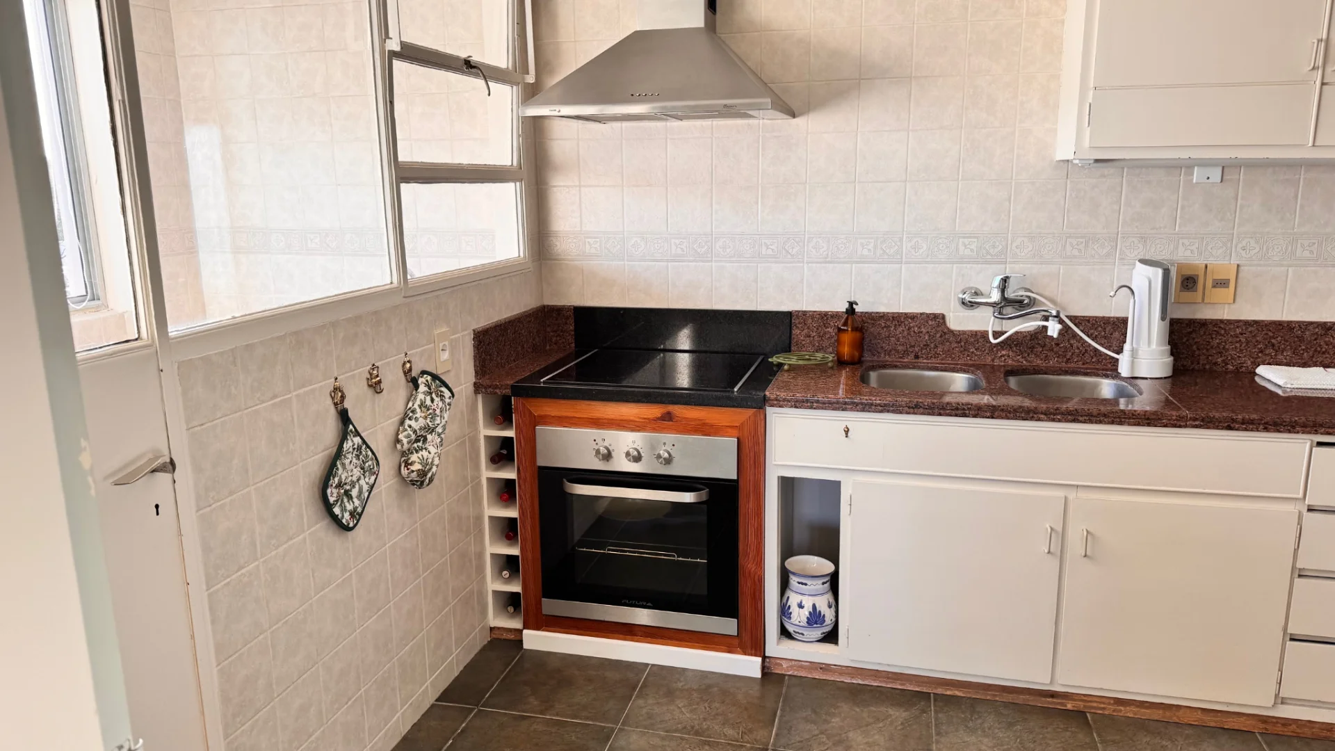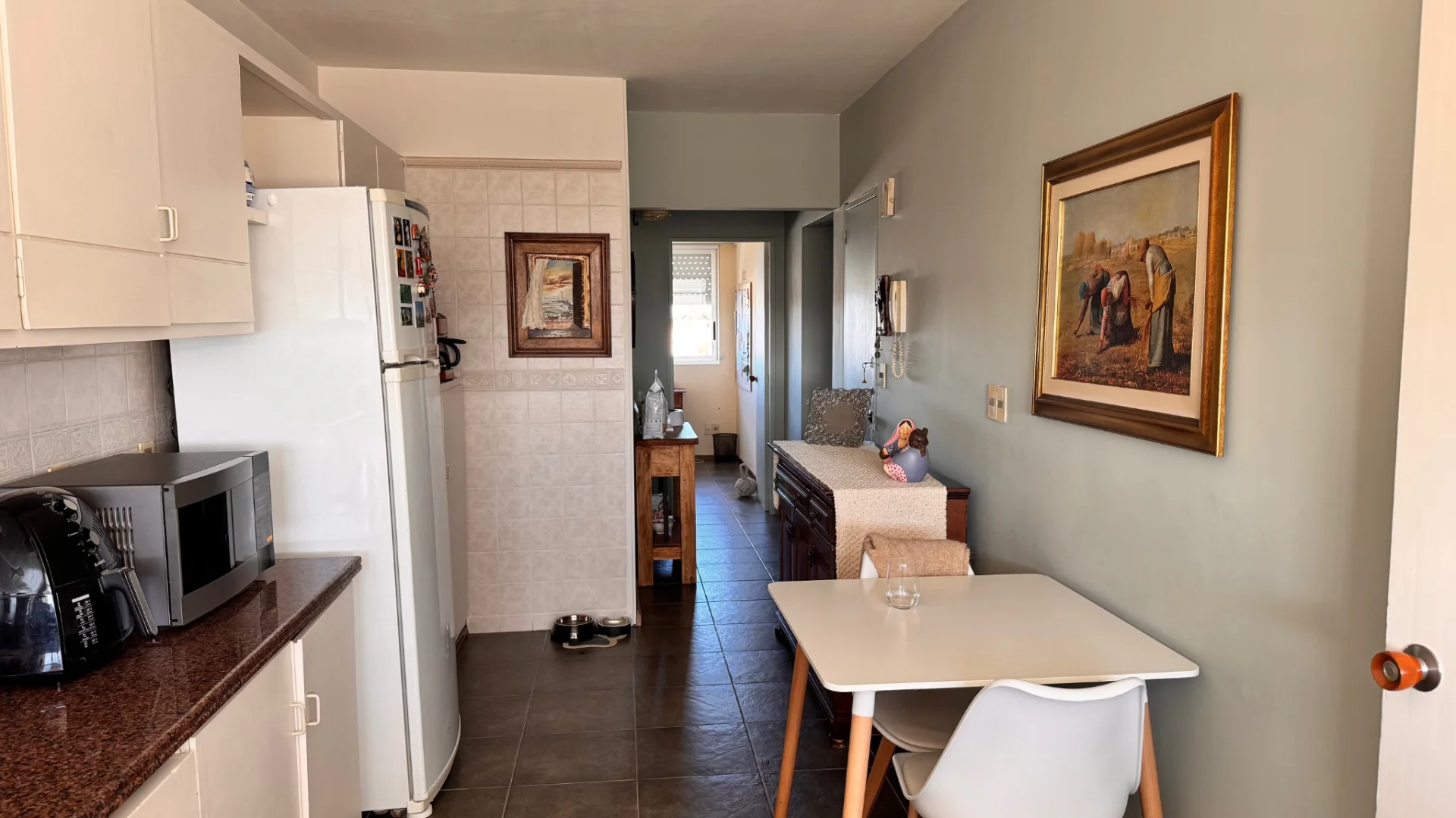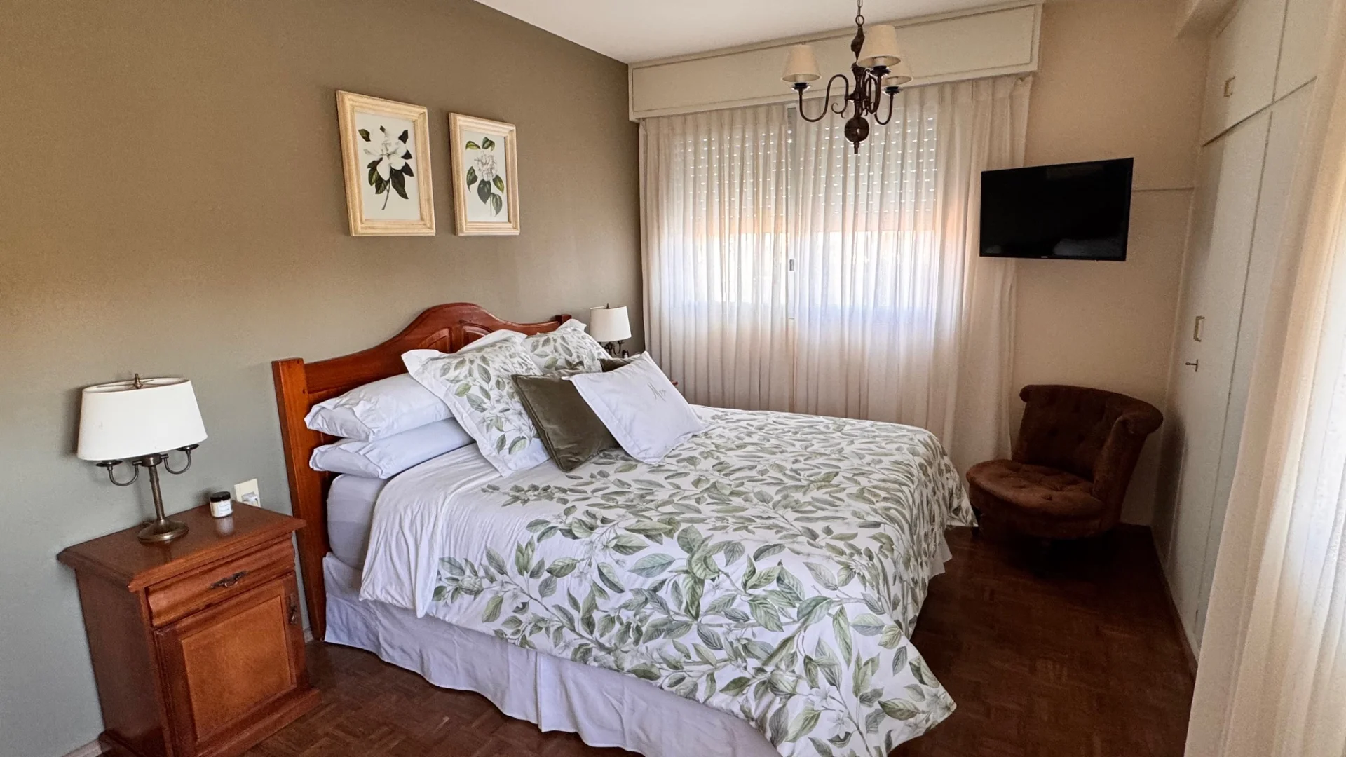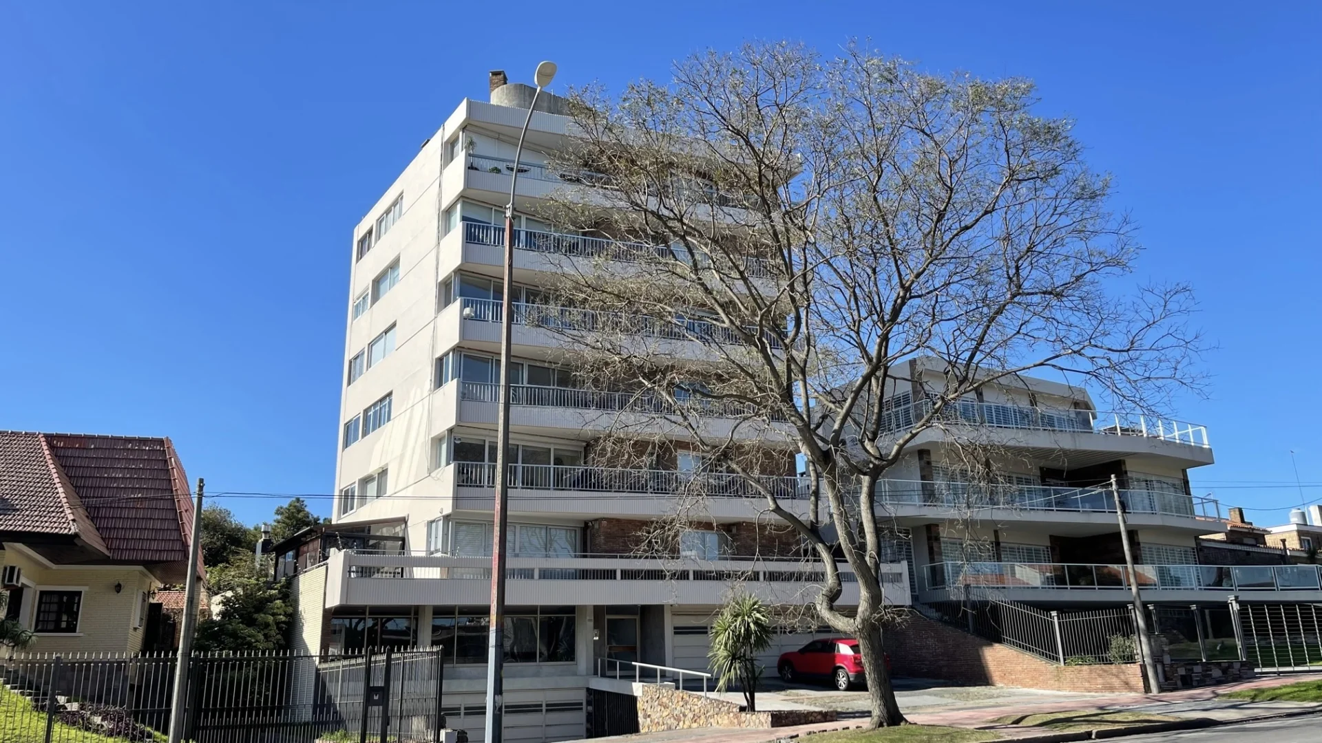 La unidad cuenta con un amplio garage para un vehículo, doble ventana de aluminio en todas las aberturas, pisos de madera y dos aparatos de aire acondicionado. La calefacción central a gas asegura confort durante todo el año. La portería es partida y cuenta con vivienda. Este apartamento es excepcionalmente luminoso y soleado, con ventanas orientadas al Norte, Oeste y Sur, garantizando una excelente iluminación natural.