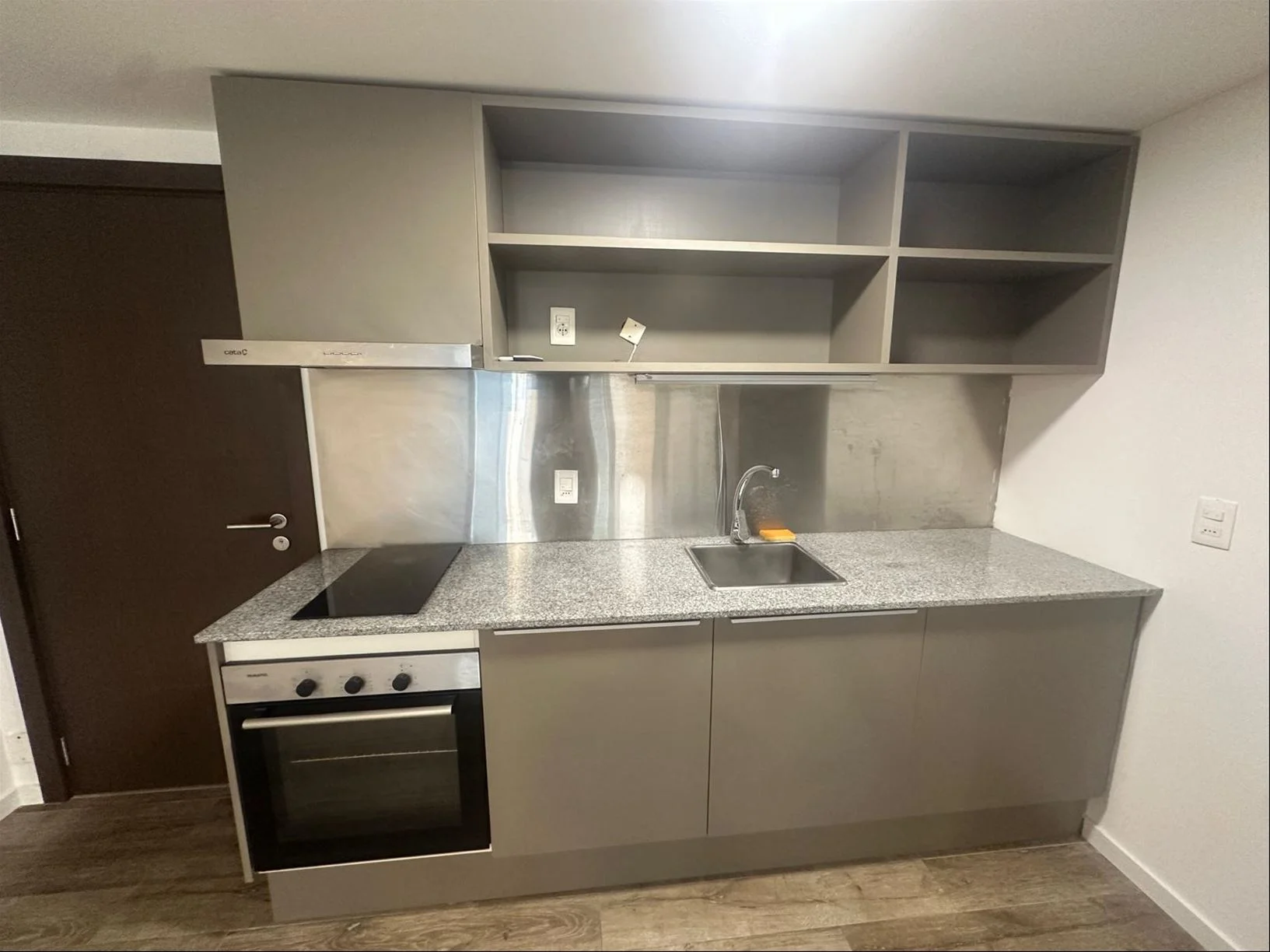 Cocina integrada con buena capacidad de muebles aéreos y bajo mesada, se entrega con horno empotrado, anafe, campana de extracción y calefón-