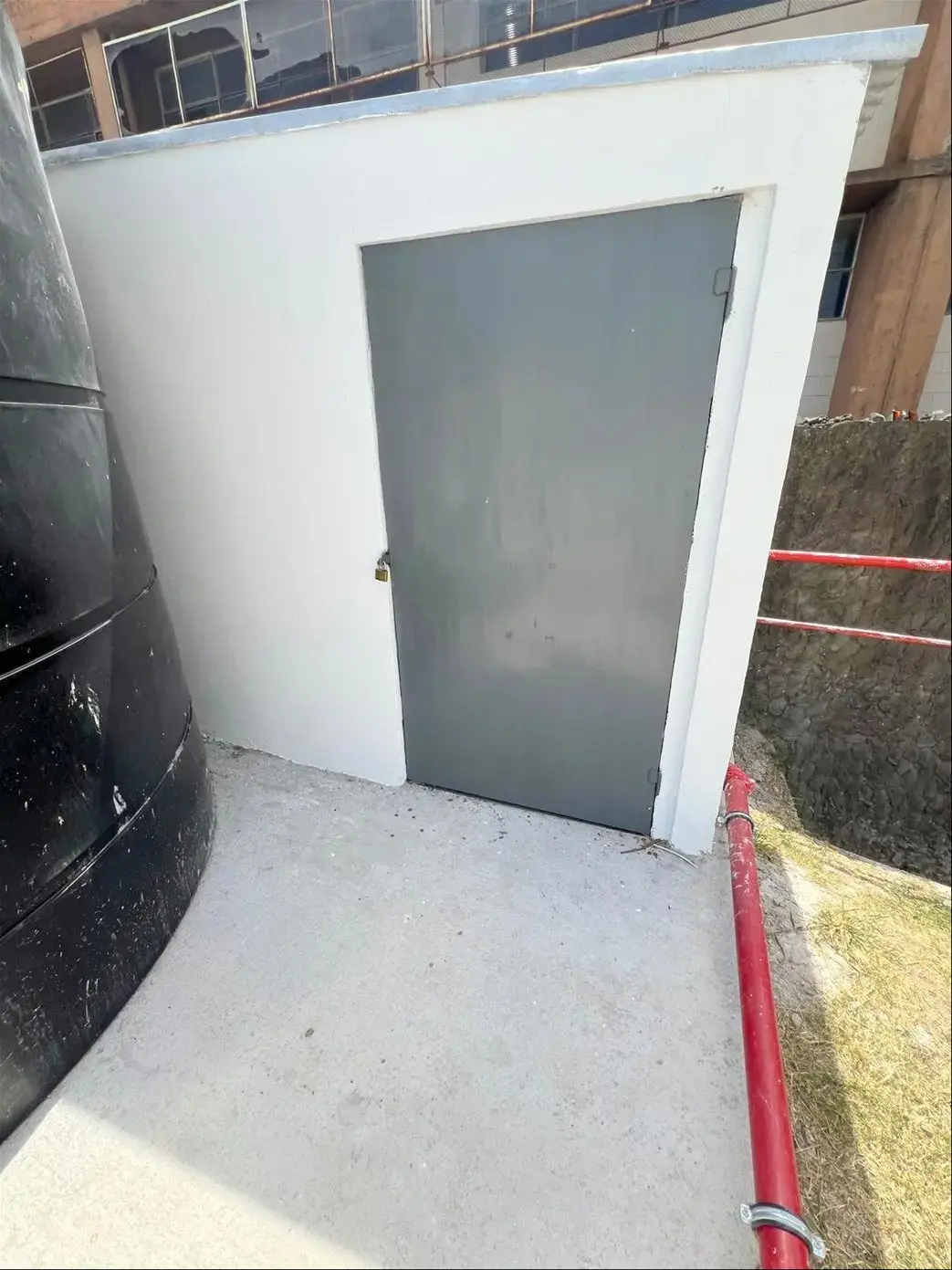 Portón principal de gran dimensión: 29 m de ancho x 8 m de alto