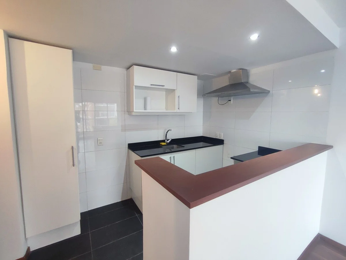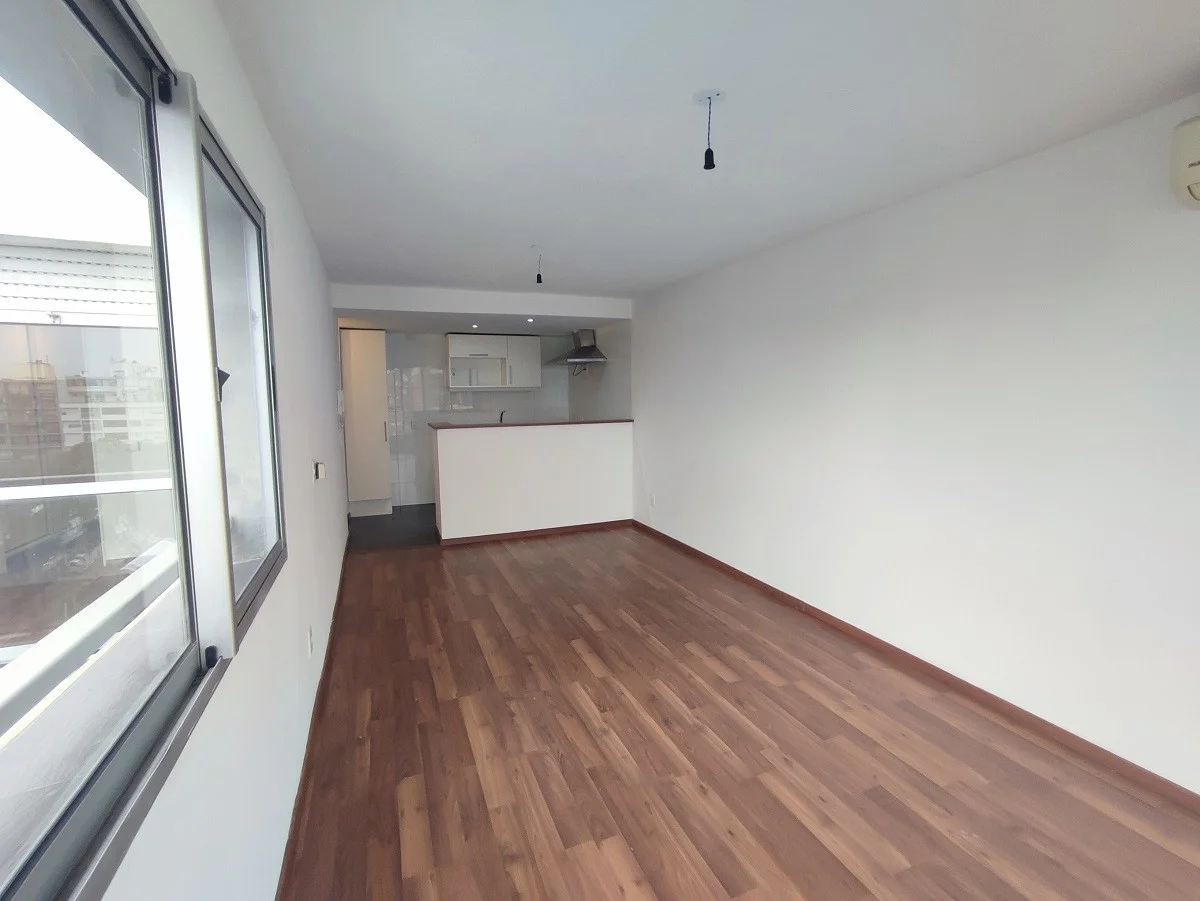 Su confortable planta se abre a una terraza principal, ideal para momentos de esparcimiento, mientras que la cocina, con su moderna barra divisoria, se integra armoniosamente al espacio. El dormitorio principal, con su amplio closet y orientación al frente, garantiza luminosidad y confort. La calefacción por losa eléctrica asegura un ambiente cálido y acogedor durante todo el año, complementado por la conexión de gas para mayor practicidad. Cuenta con calefón instalado, campana de extracción, aire acondicionado y servicio de lavandería en el edificio.