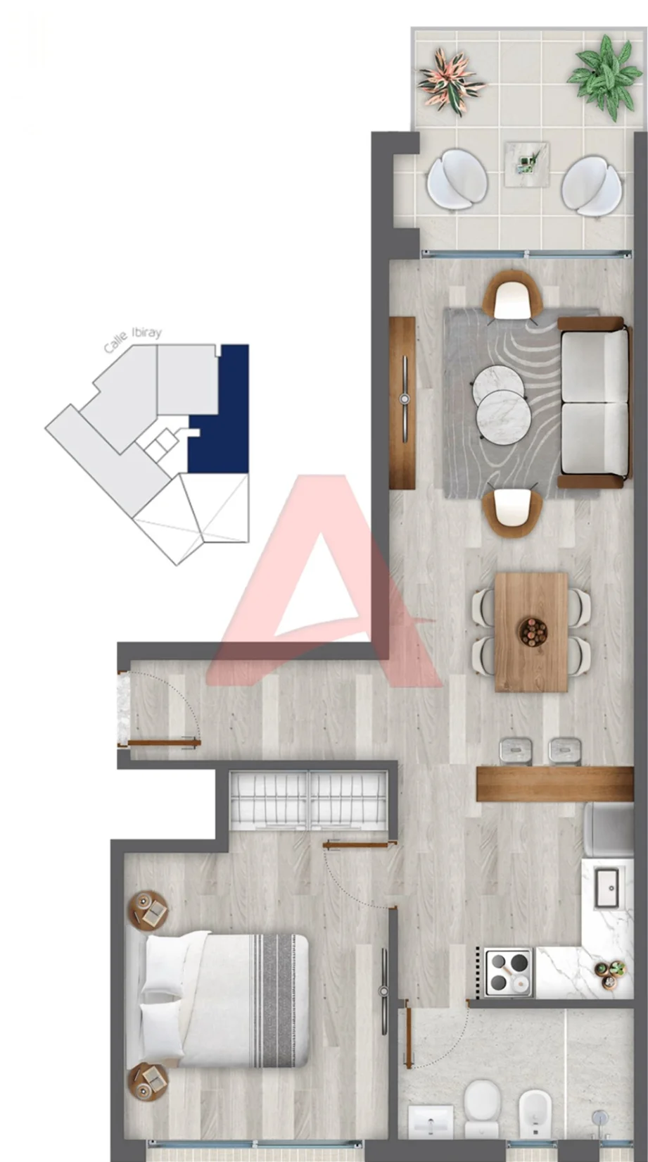 Metraje: 50 m2 + 6,2 m2 de terrazas.