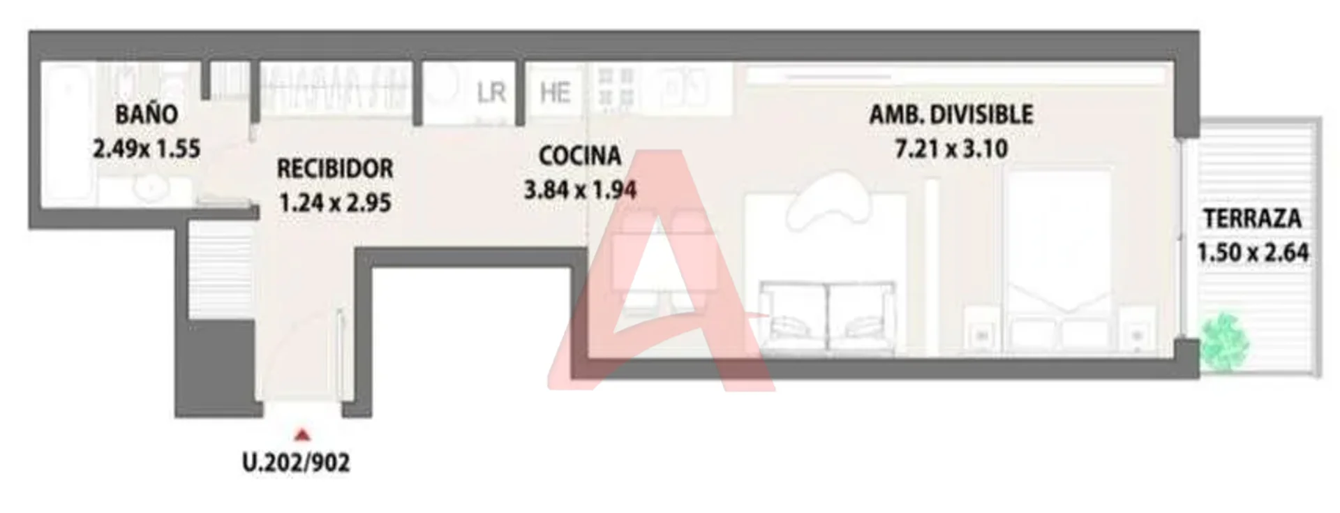 Metraje: 43 m2 edificados + 4m2 de terraza